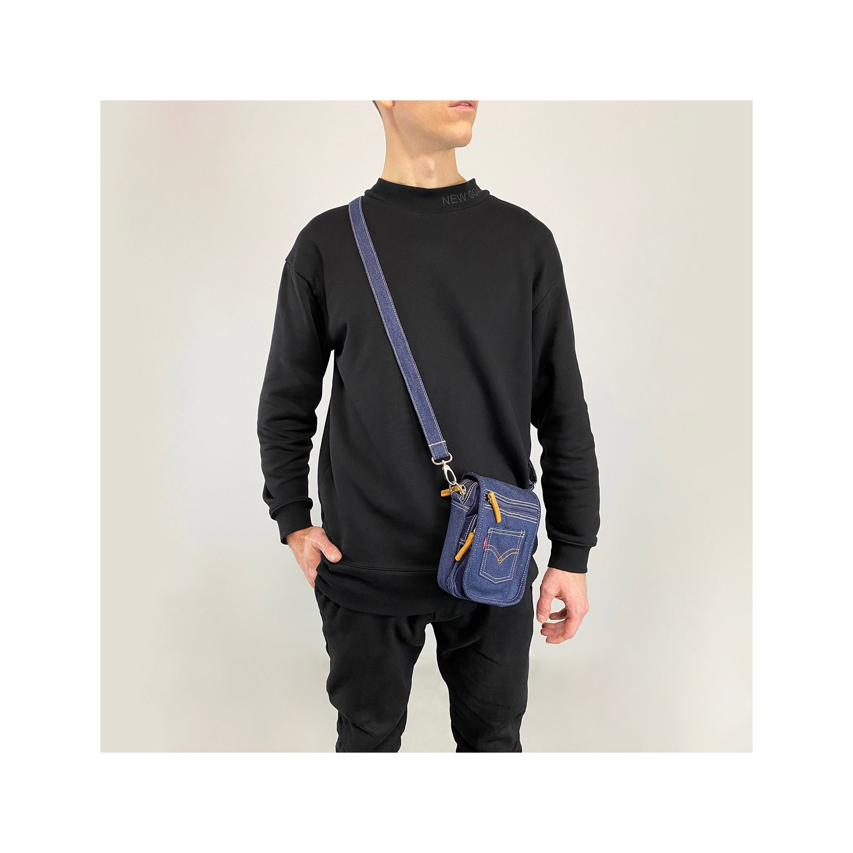 Мужская сумка-барсетка через плечо из джинса отлично впишется в образ современного мужчины
