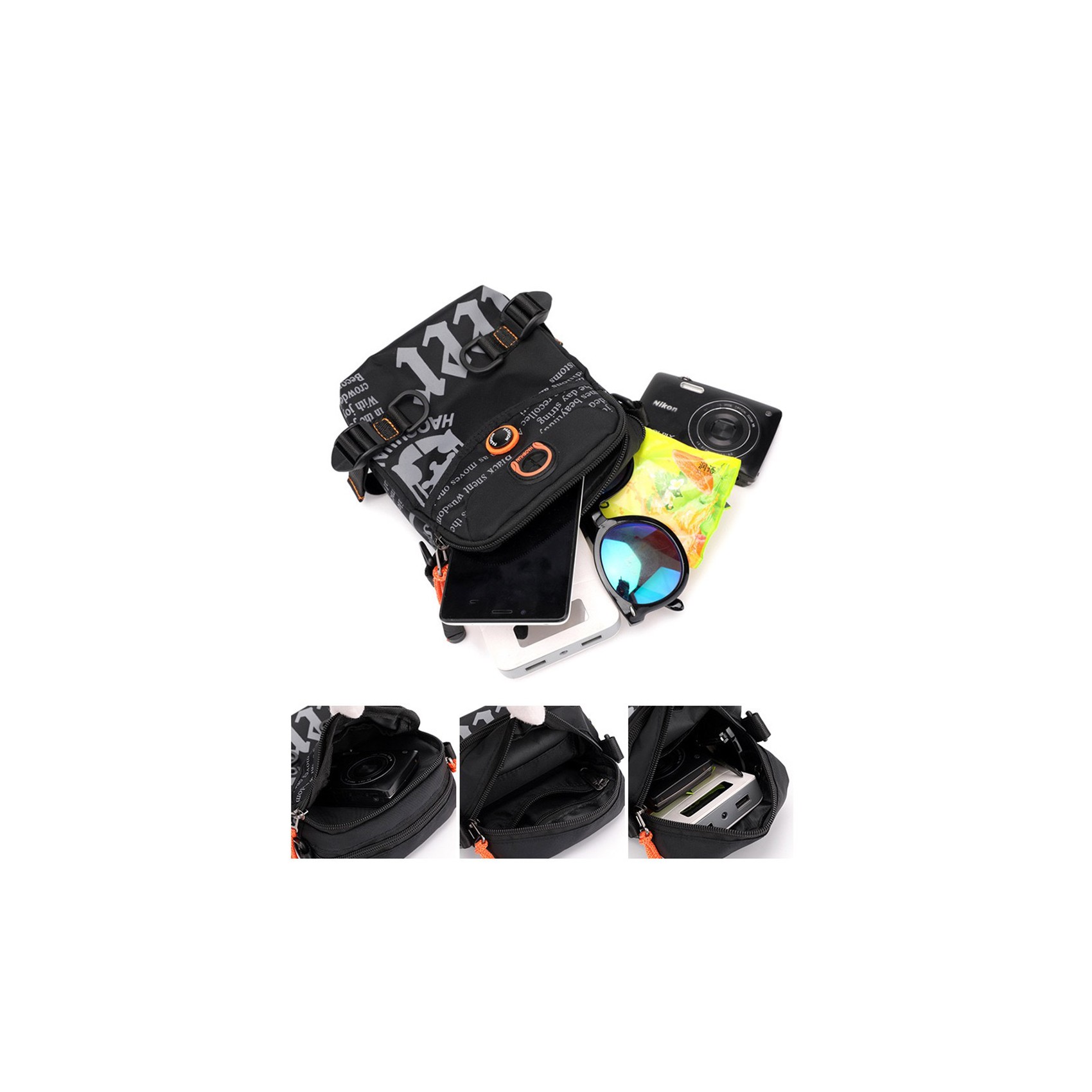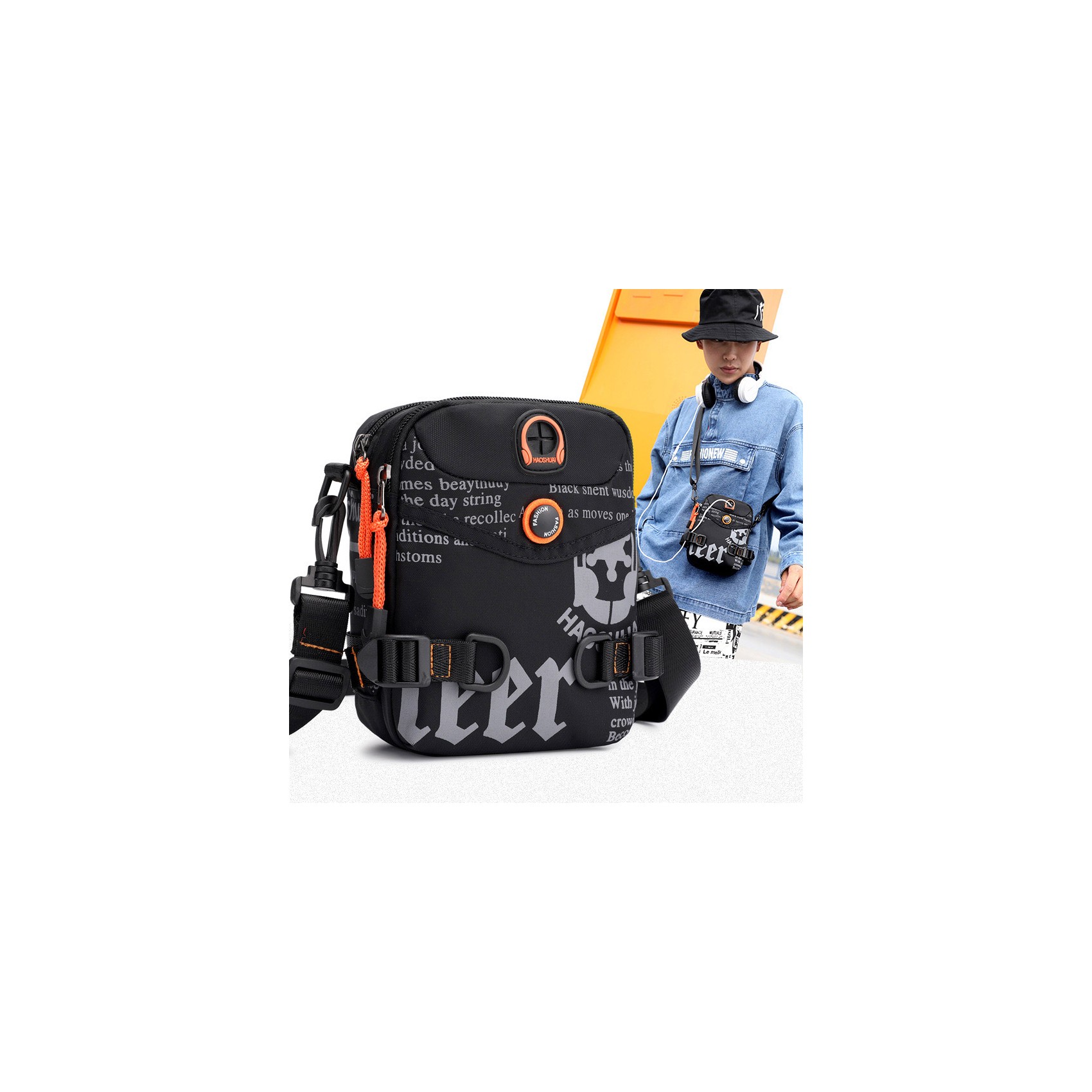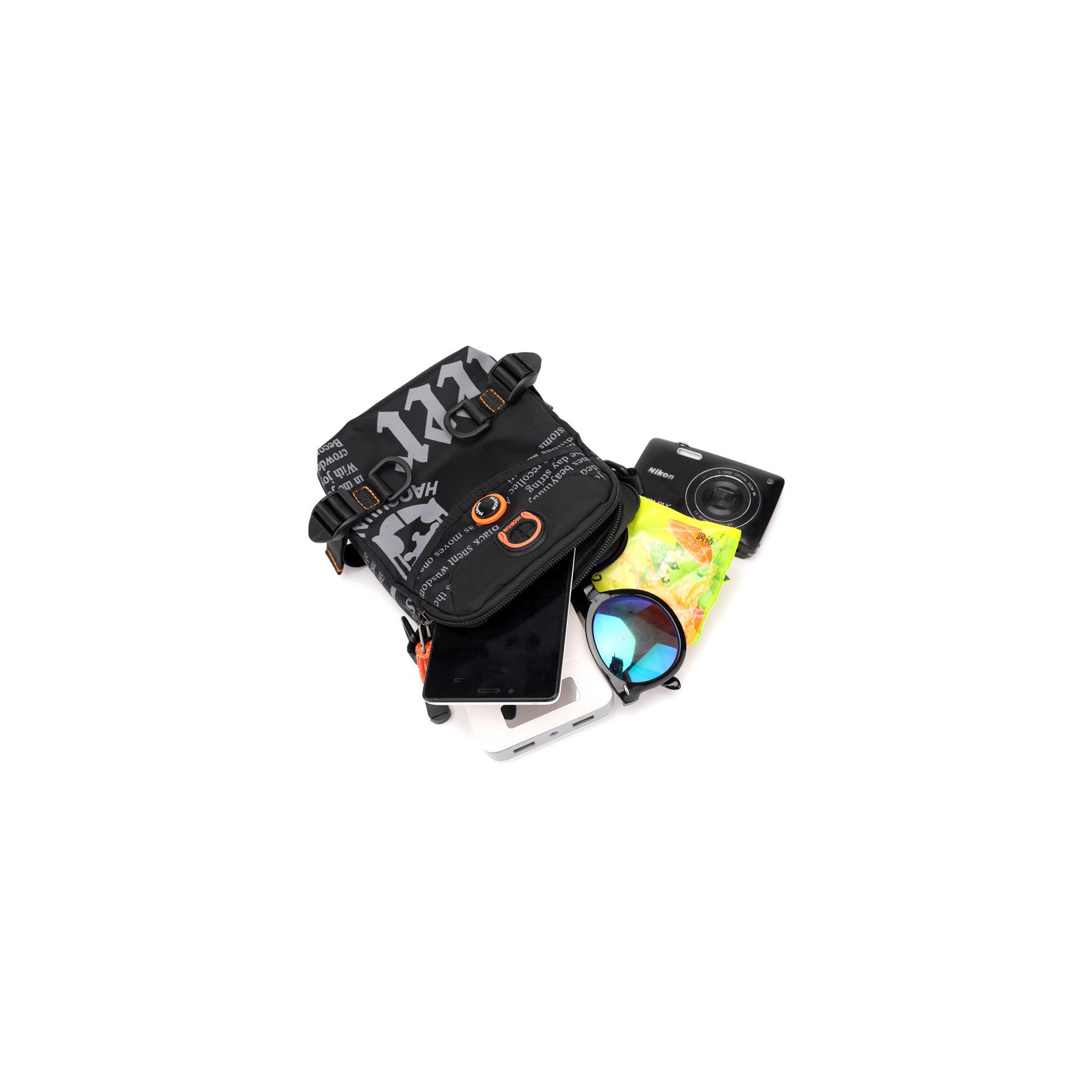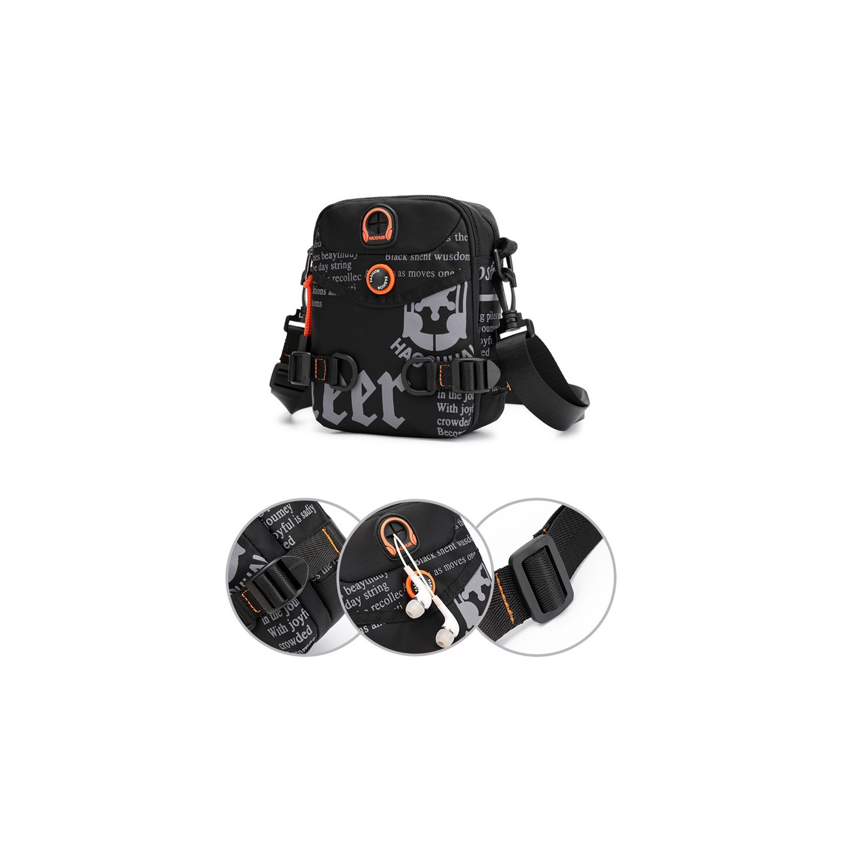 Универсальность сумки подчеркивает съёмный ремень: его можно не только носить через плечо, но и перестегнуть на пояс — идеальное решение для тех, кто предпочитает свободу движений. На корпусе предусмотрено отверстие для наушников, чтобы любимая музыка всегда была под рукой. А боковые ремешки позволяют регулировать объём сумки в зависимости от потребностей.