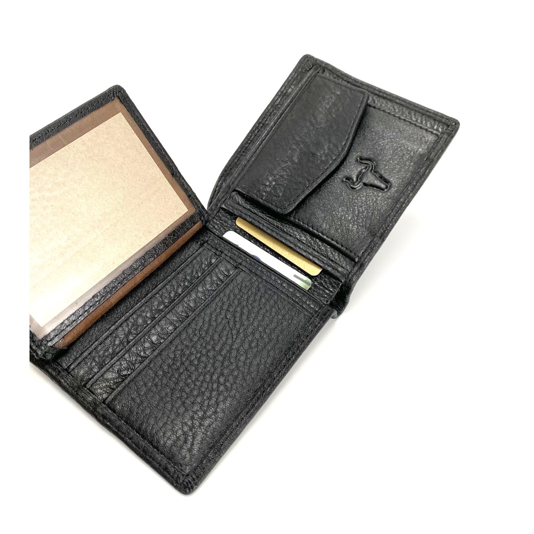 Мужской кожаный кошелек Clan в черном цвете - отличный выбор для тех, кто ценит качественные материалы и стильный дизайн.