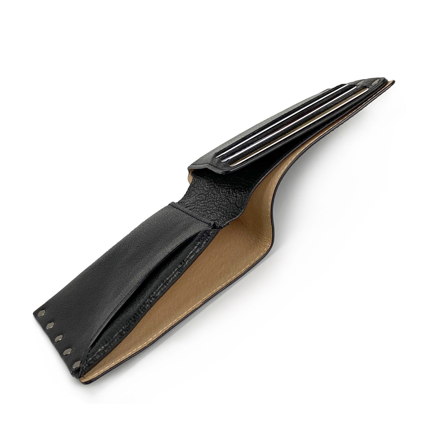 Он имеет основной отдел для купюр и 4 отдела для карточек, а также карман для мелочи.