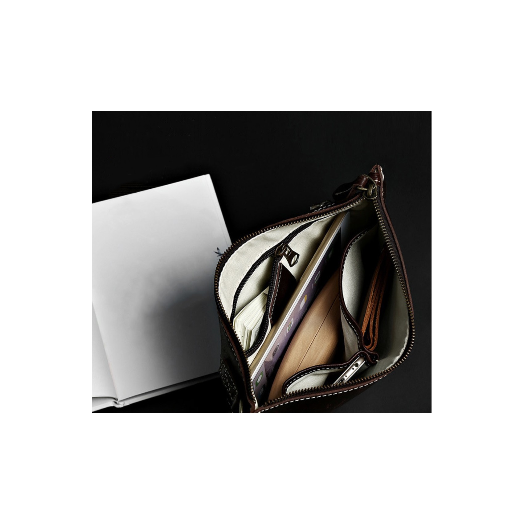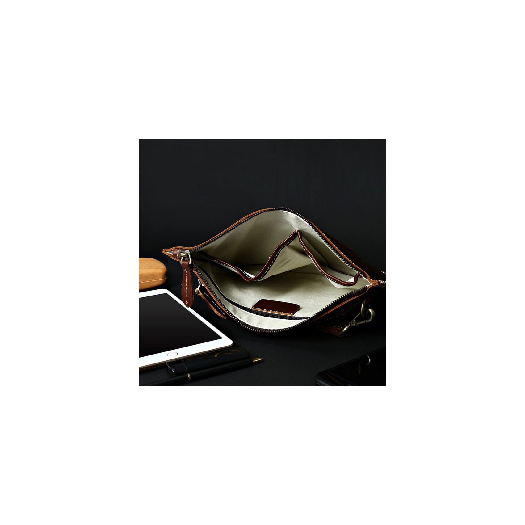 Кожаный чехол-сумка для закрывающегося на молнию планшета предлагает удобство и стиль. Внутри вы найдете большой карман на молнии и два небольших кармана для организации ваших вещей. На обратной стороне расположен дополнительный карман на молнии для быстрого доступа к необходимым мелочам. Съемная ручка придает универсальности, позволяя носить чехол как сумку или использовать отдельно