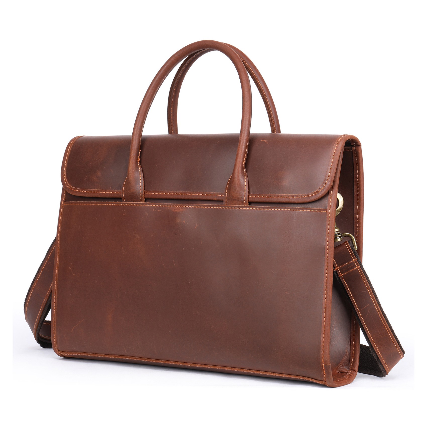 Эта сумка сочетает стиль и функциональность, идеально подходит для ноутбука 14 дюймов и документов. Откидной верх на кнопках-магнитах обеспечивает легкий доступ к основному отделу, который закрывается на молнию. Внутреннее пространство организовано удобно: есть отделение для ноутбука, карман на молнии и два дополнительных кармана для мелочей. Наружные большие карманы на кнопках-магнитах добавляют дополнительное место для хранения. Съемный плечевой ремень позволяет носить сумку с комфортом. Изготовленная из плотной винтажной кожи и оснащенная надежной металлической фурнитурой YKK из Японии, эта сумка станет вашим надежным спутником в повседневной жизни.