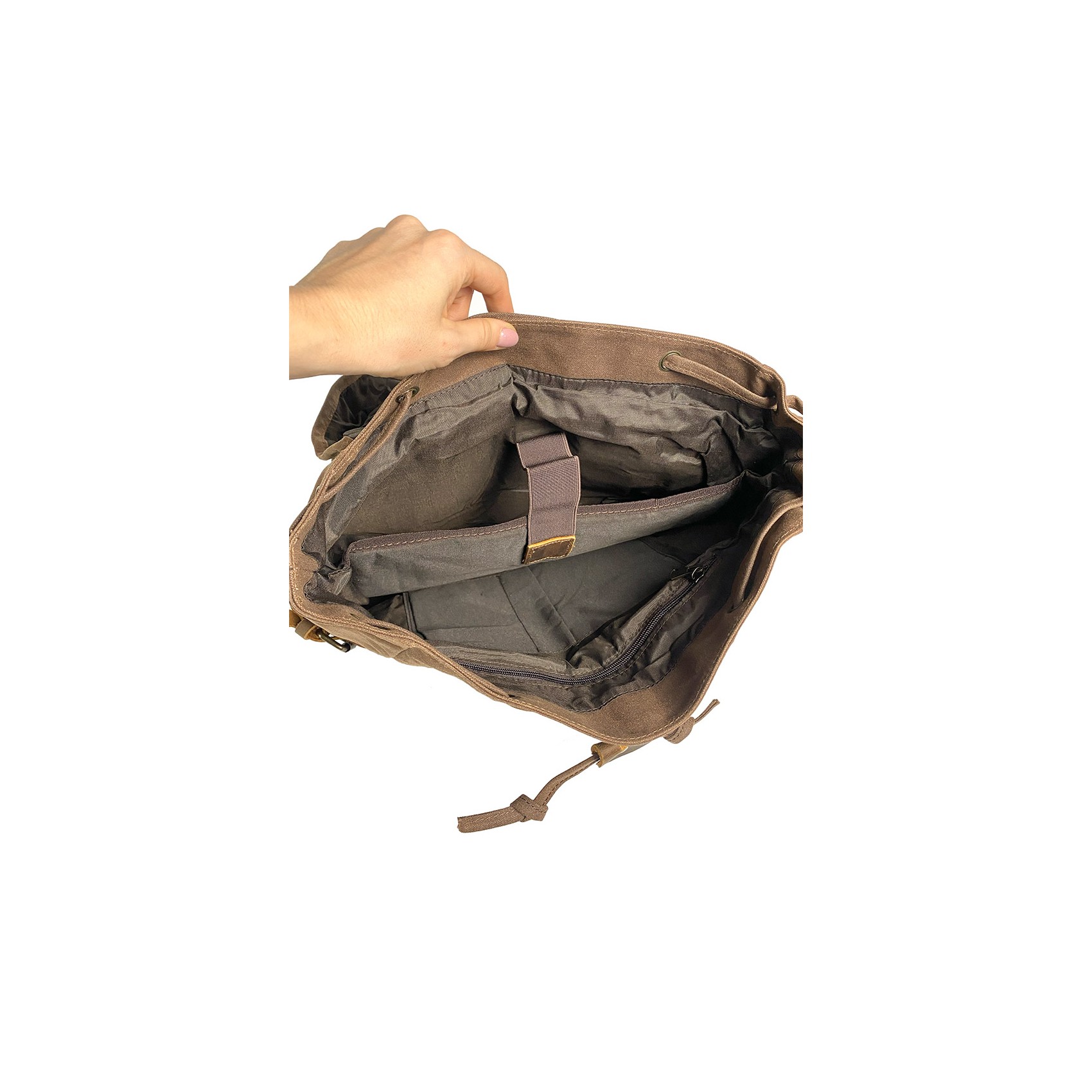Этот мужской городской рюкзак сочетает в себе винтажный стиль и современную функциональность. Большой передний карман обеспечивает быстрый доступ к необходимым вещам, а основной отдел, затягивающийся веревками и закрывающийся откидным верхом, гарантирует надежное хранение. Дополнительные лямки придают безопасности. Внутреннее пространство организовано для удобства: есть отделение для ноутбука или планшета, карман на молнии и два кармана для мелочей. Боковые ремешки позволяют регулировать объем рюкзака. Выполненный из крепкого канваса со вставками из натуральной винтажной кожи, этот рюкзак станет надежным спутником в городских приключениях.