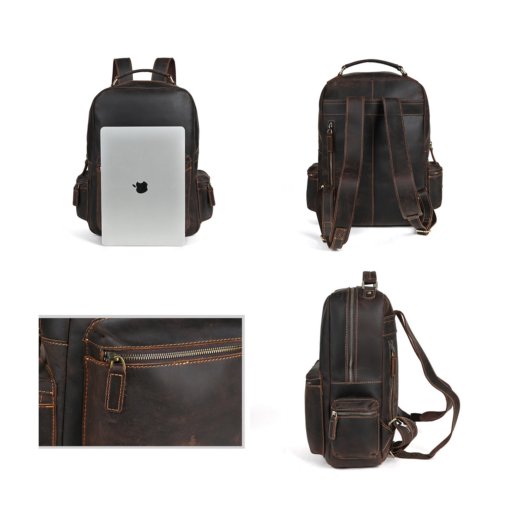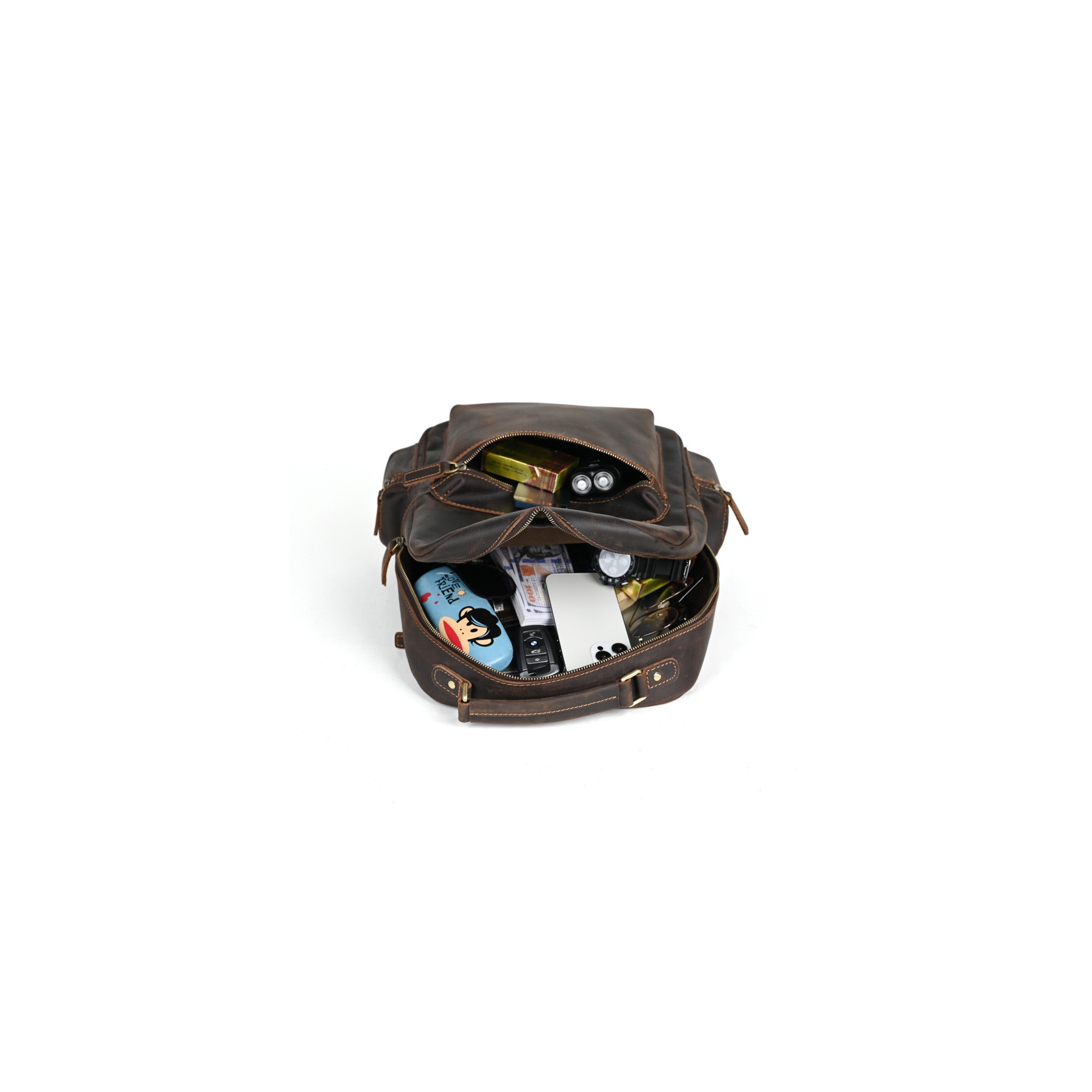 Этот рюкзак сочетает стильный винтажный дизайн и функциональность. Он имеет большой передний карман на молнии для быстрого доступа к необходимым вещам, а также основное отделение с двумя крупными внутренними отделами для организации ваших вещей. На обратной стороне расположен дополнительный карман на молнии, а с обеих сторон — два небольших кармана для мелочей. Верхняя ручка обеспечивает удобство переноски. Металлическая фурнитура YKK из Японии гарантирует надежность и долговечность. Рюкзак изготовлен из плотной винтажной кожи крейзи хорс, которая со временем приобретает уникальный вид благодаря царапинам и потертостям, придающим ему характер.