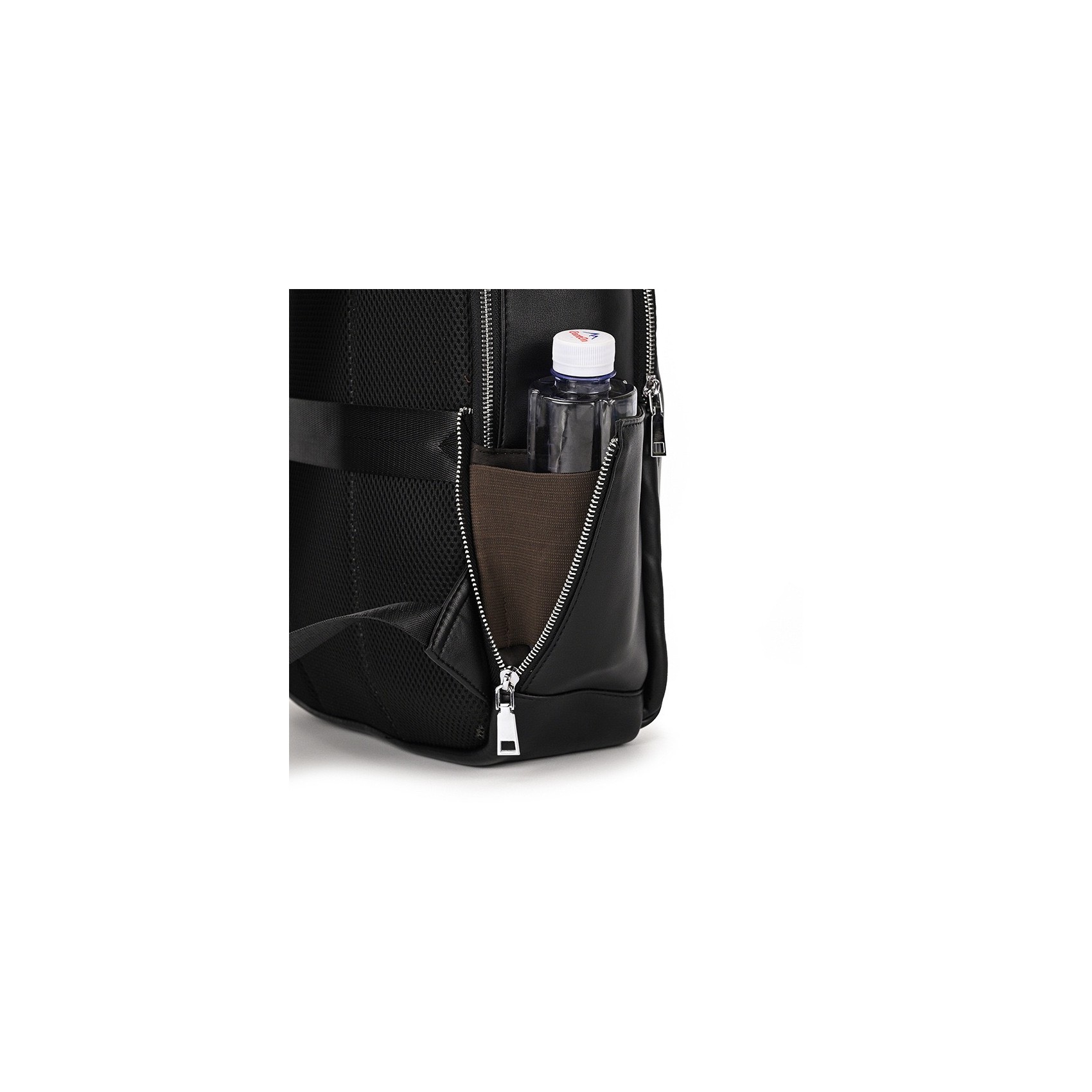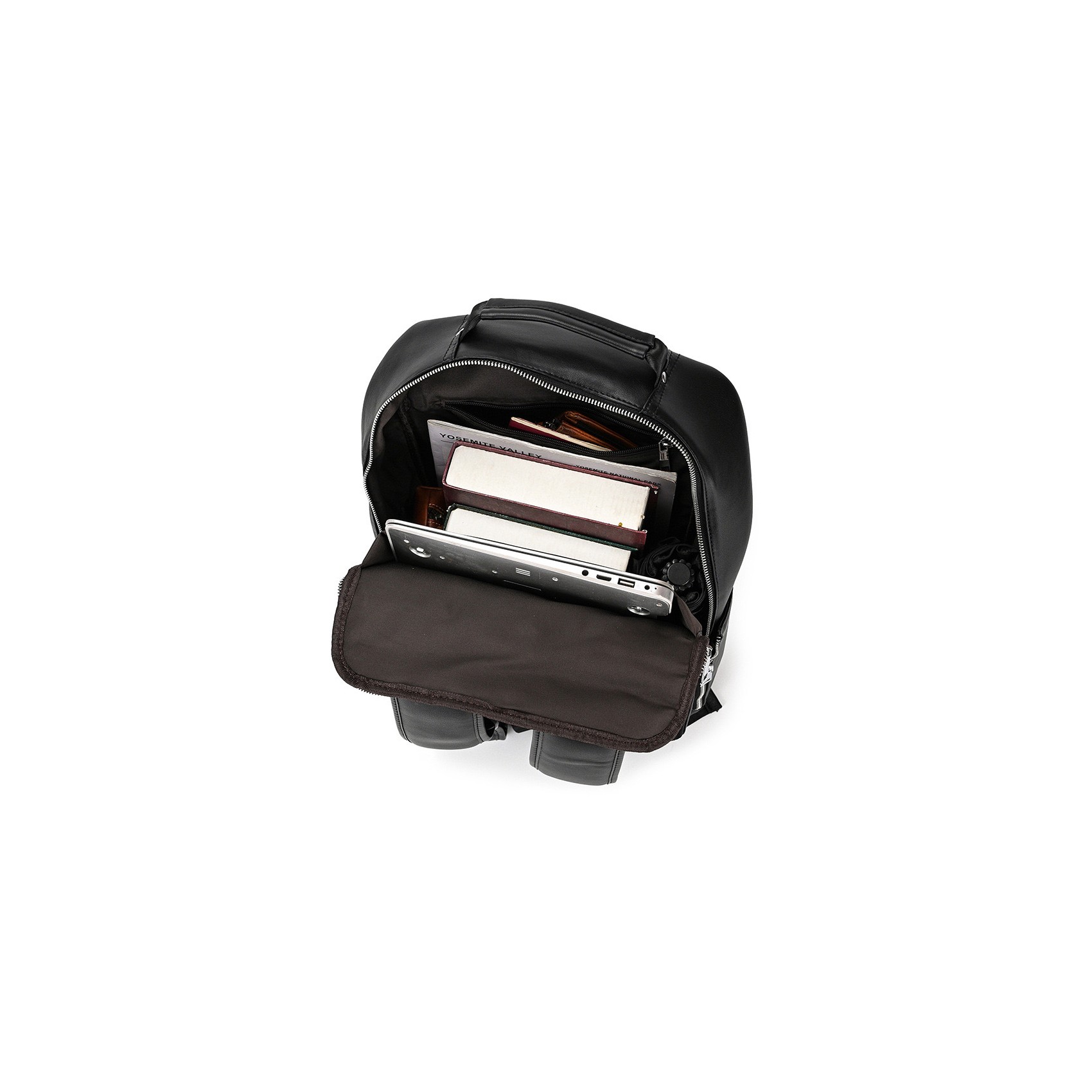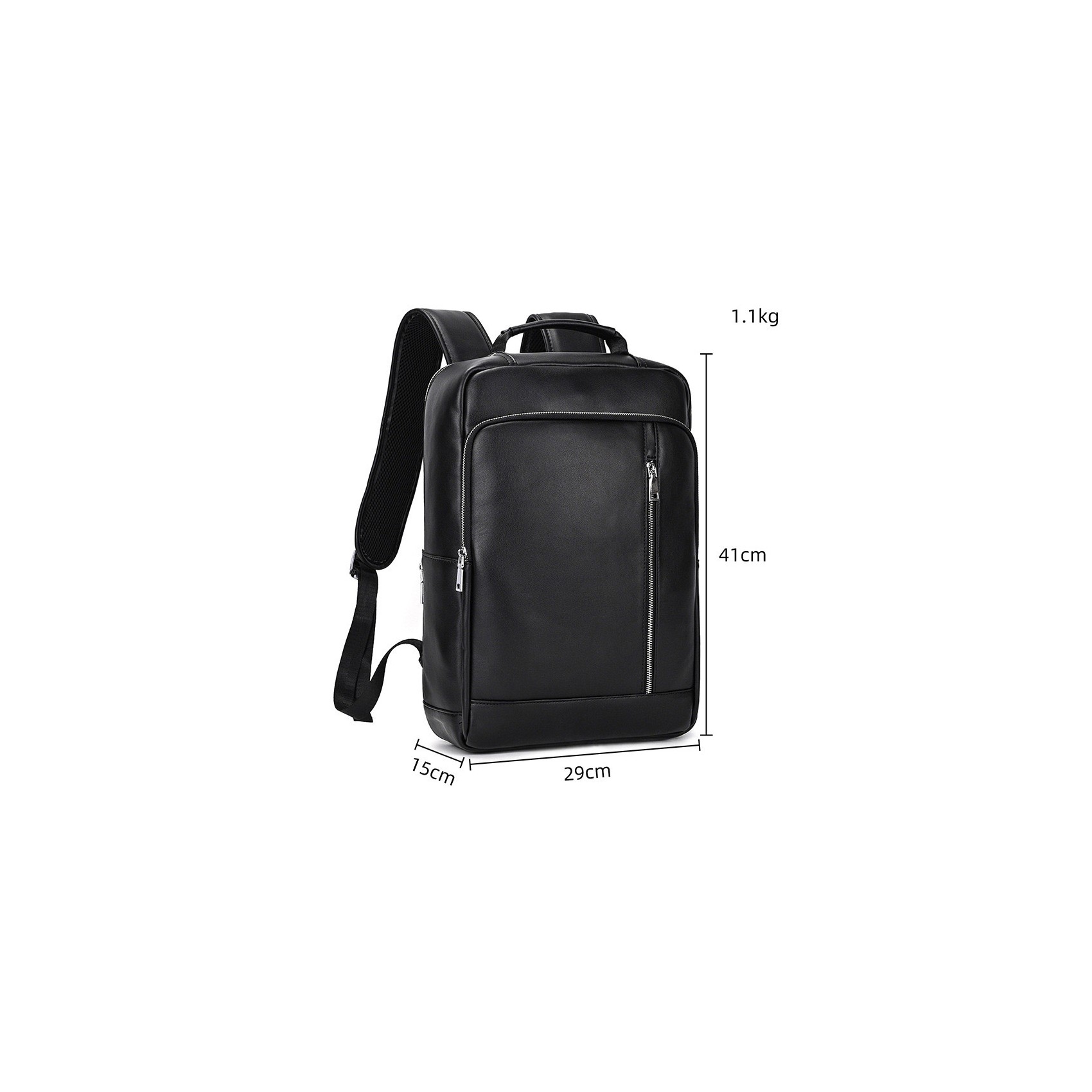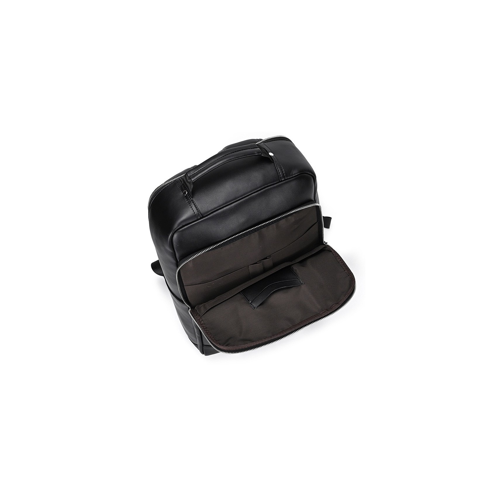 Элегантный и практичный рюкзак Zack – надежный спутник для активного дня. Выполненный из прочной кожи черного цвета, он сочетает стиль и удобство. Вместительное основное отделение рассчитано на ноутбук до 15,6 дюймов и дополнено карманом на молнии. Спереди – просторный отсек с карманом для планшета, отделениями для мелочей и ручек, а также отдельный карман на молнии.
