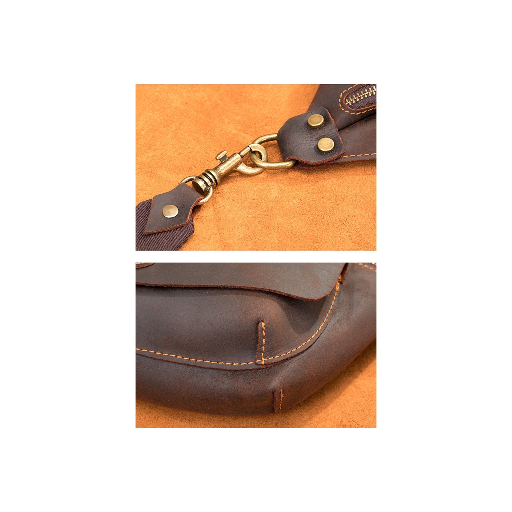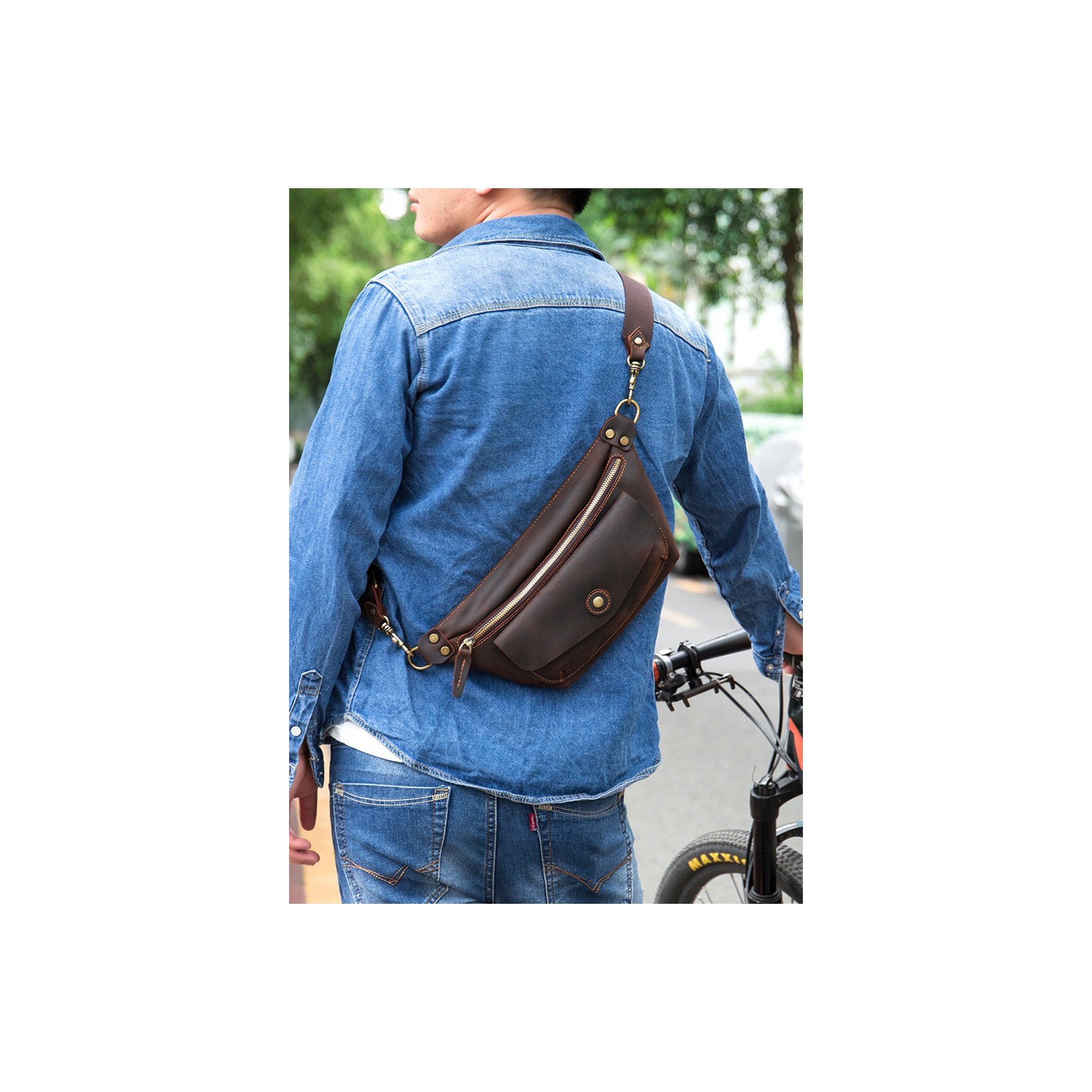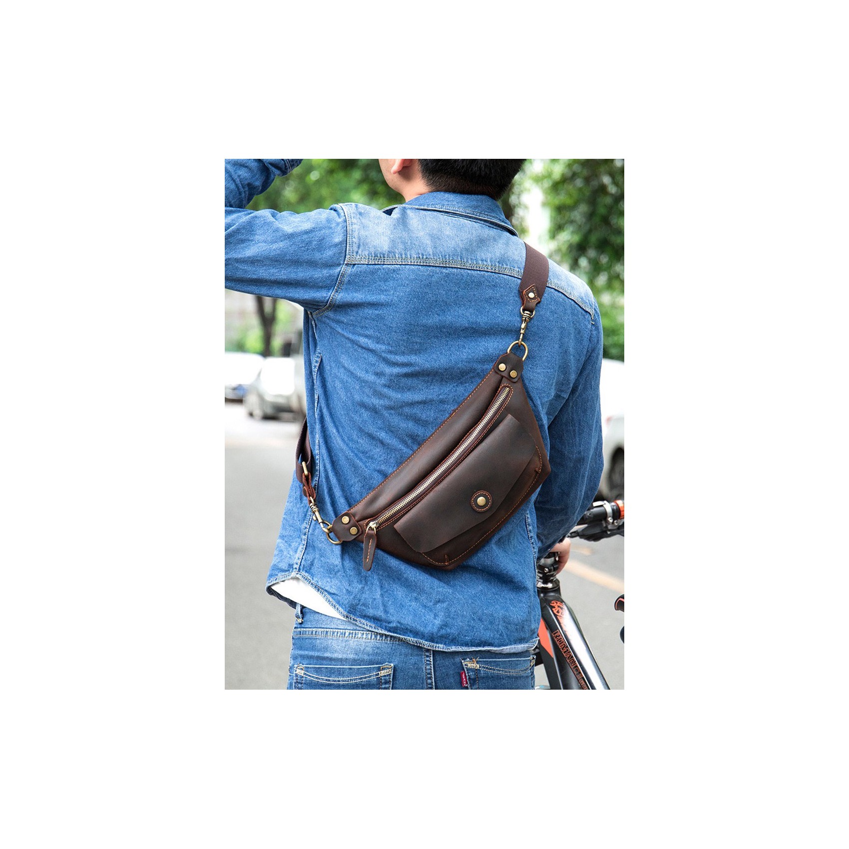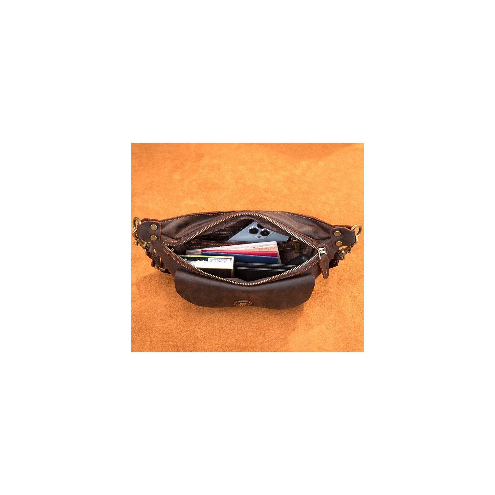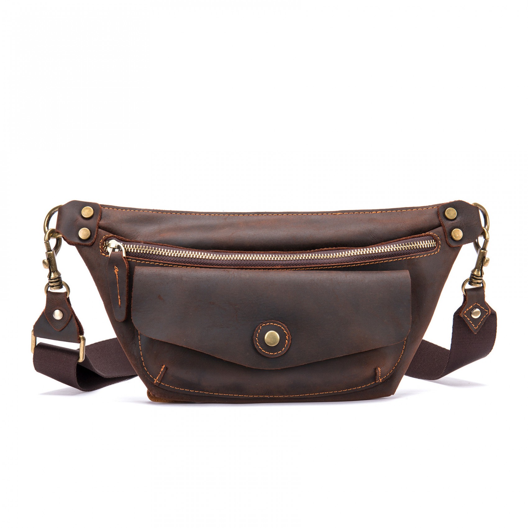 Темно-коричневая сумка бананка на поясе изготовлена из высококачественной натуральной кожи. Она имеет большой передний карман, закрывающийся на кнопке-магните, и основной отдел на молнии. Внутри расположен небольшой карман на молнии для мелочей. Все детали выполнены из качественной фурнитуры, что придает сумке стильный и оригинальный вид.