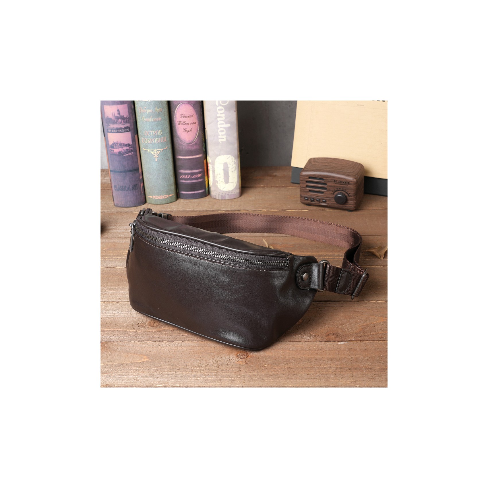 Лаконичная и элегантная, бананка Walter — это воплощение стиля и практичности. Выполненная из натуральной кожи темно-коричневого оттенка, она выглядит изысканно и достойно выдерживает испытание временем. Основной отдел на надежной молнии обеспечивает удобный доступ к вашим вещам, а внутренний карман на молнии помогает организовать мелочи.