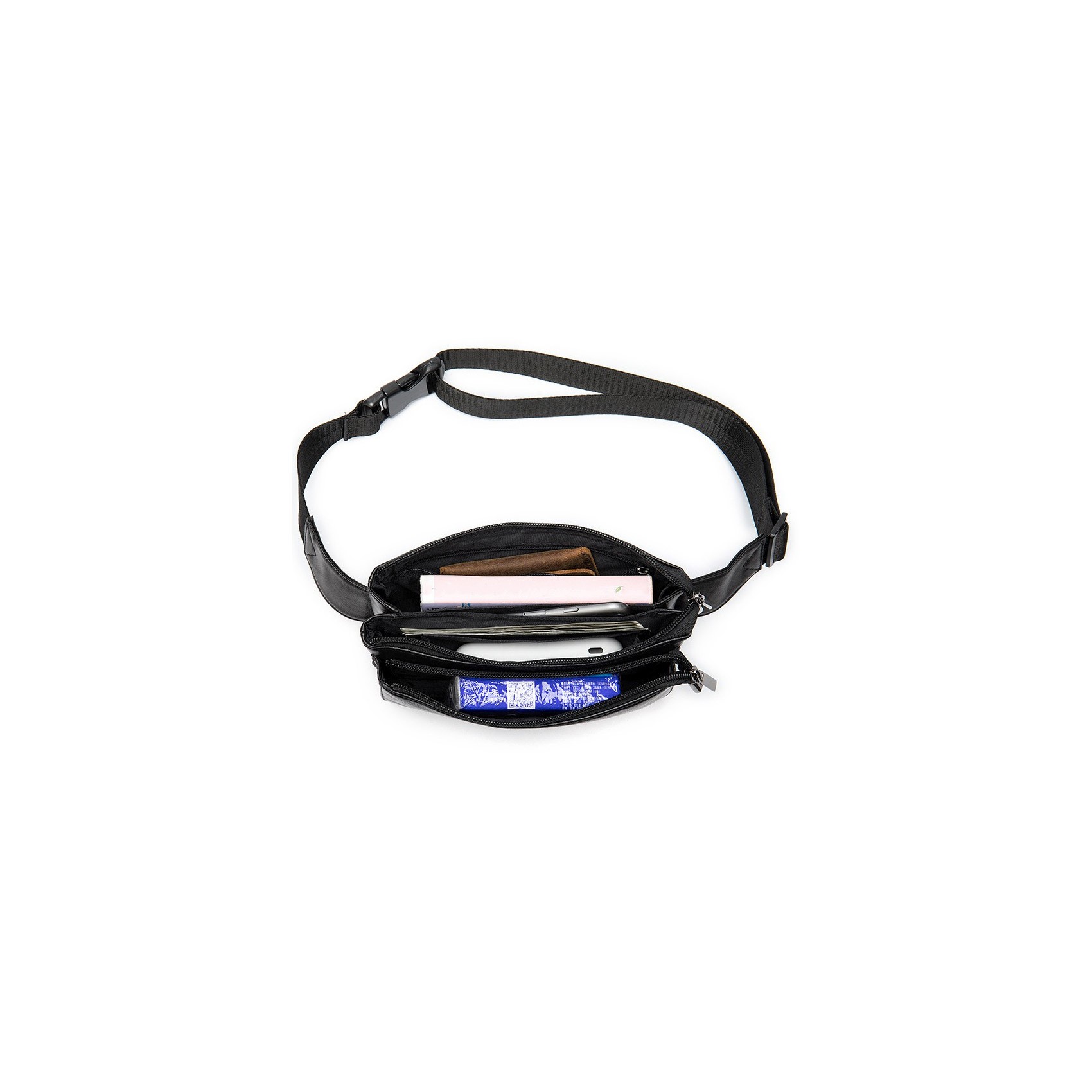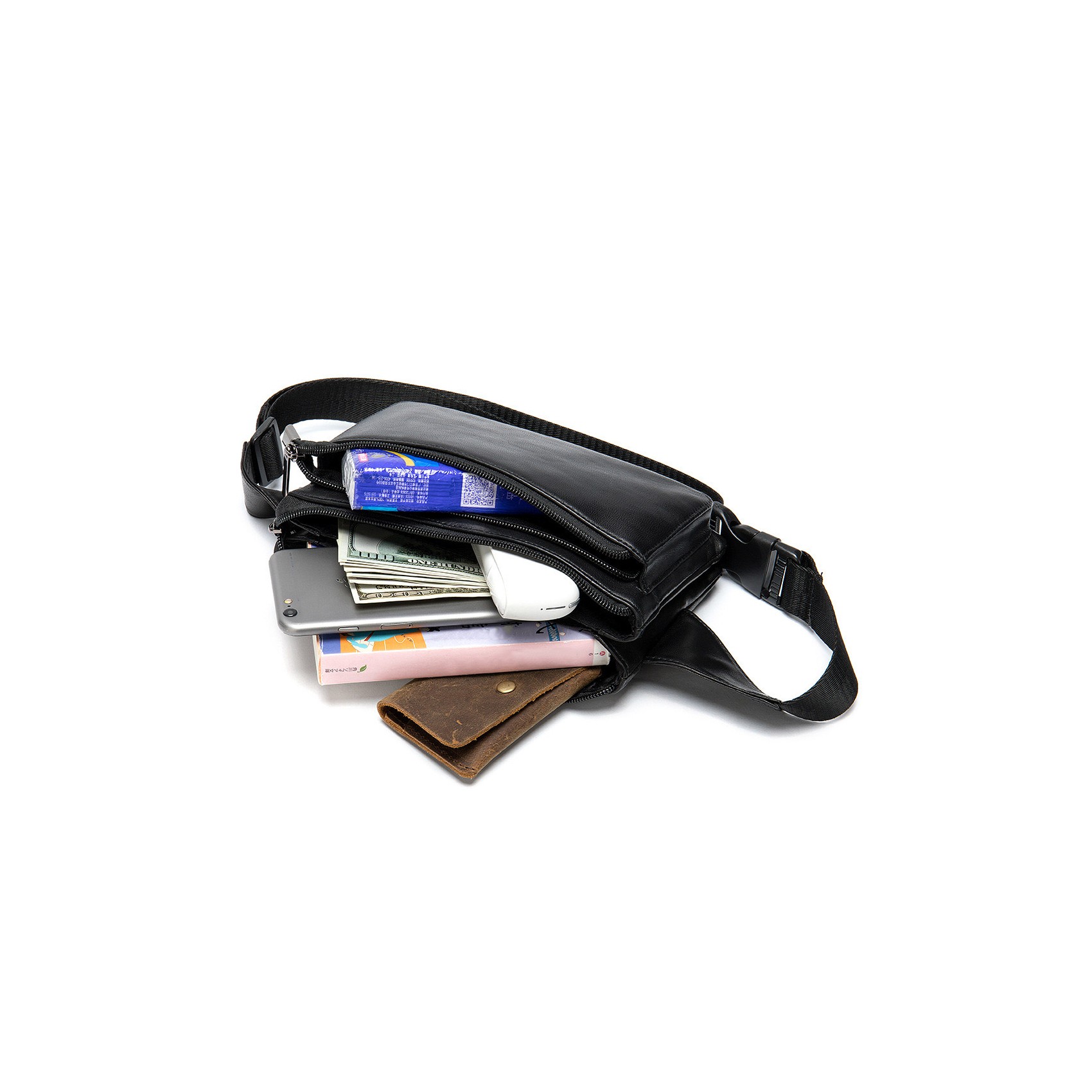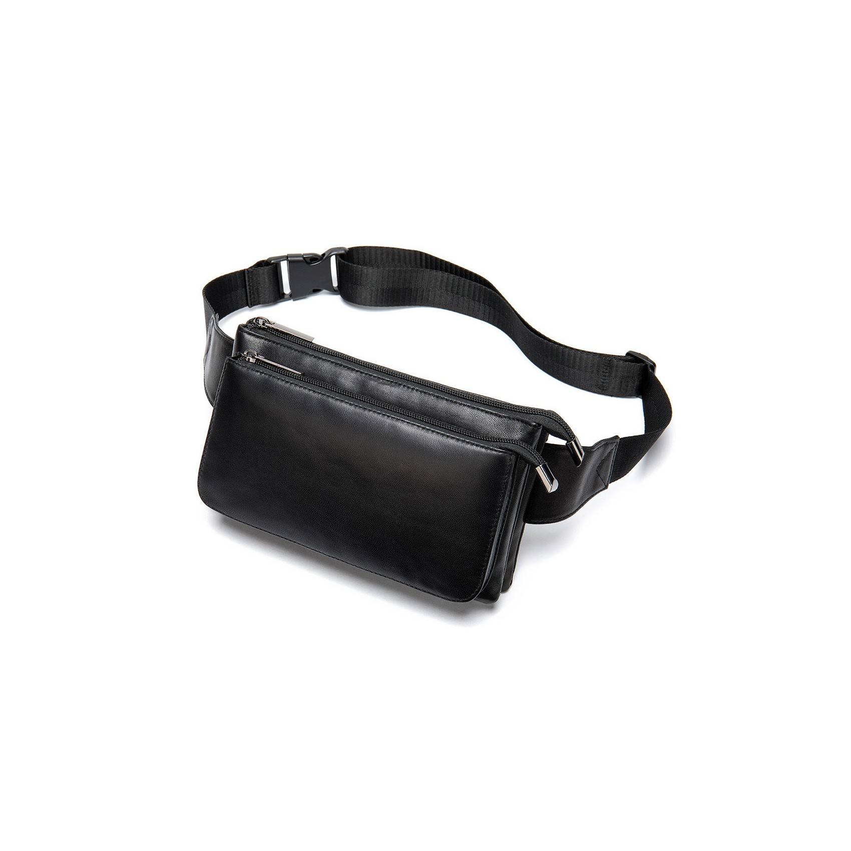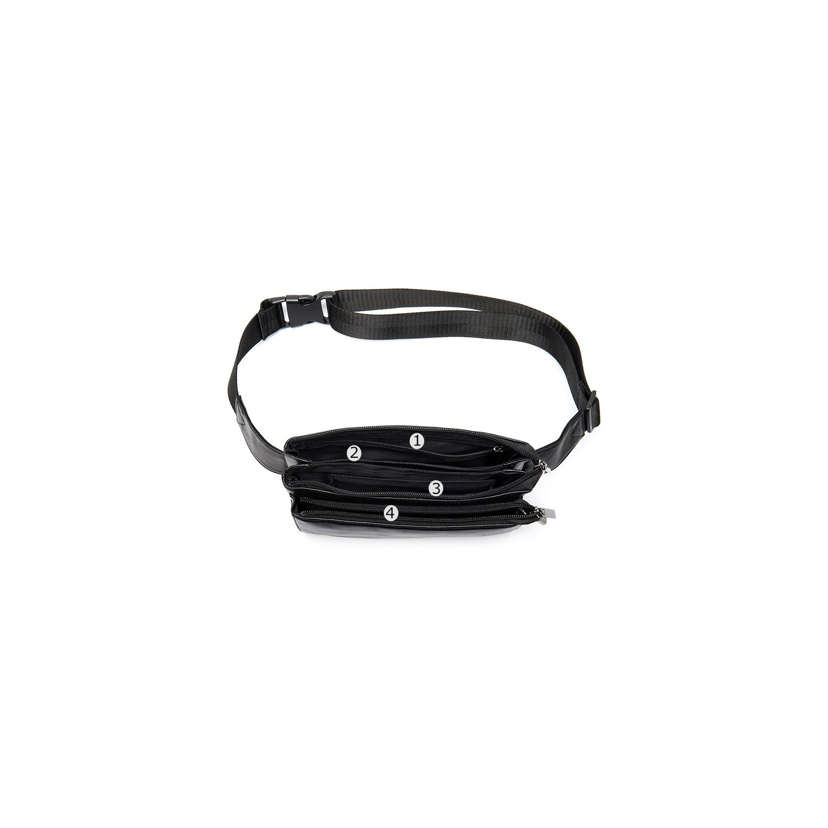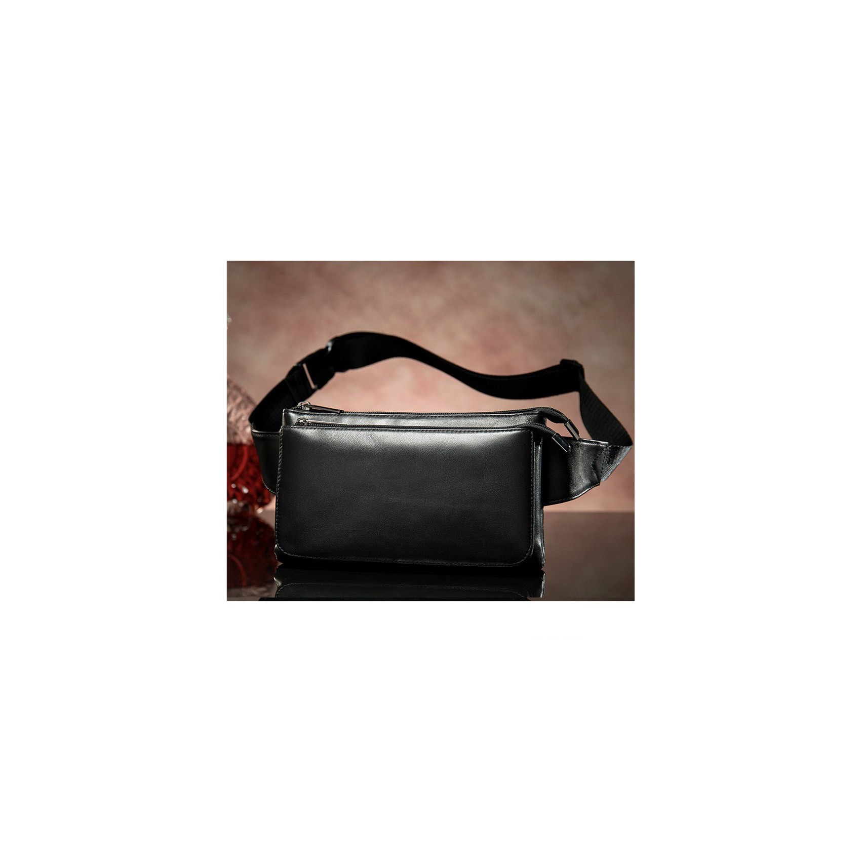 Эта стильная бананка на поясе выполнена в классическом черном цвете из натуральной кожи. Она имеет три основных отделения на молнии, что позволяет удобно организовать ваши вещи. Внутри есть дополнительные карманы для мелочей, а с обратной стороны расположен еще один карман на молнии для быстрого доступа к самому необходимому. Максимальная длина ремешка составляет 109 см, что позволяет настроить сумку под комфорт.