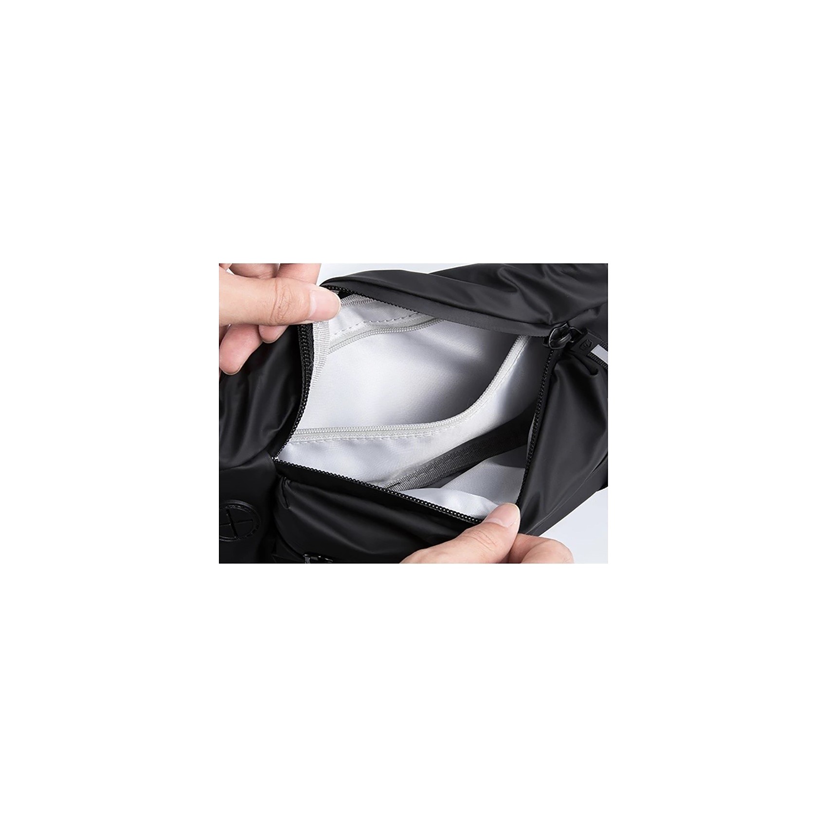 - Впереди: большой карман на молнии, внутри которого - карман на резинке
