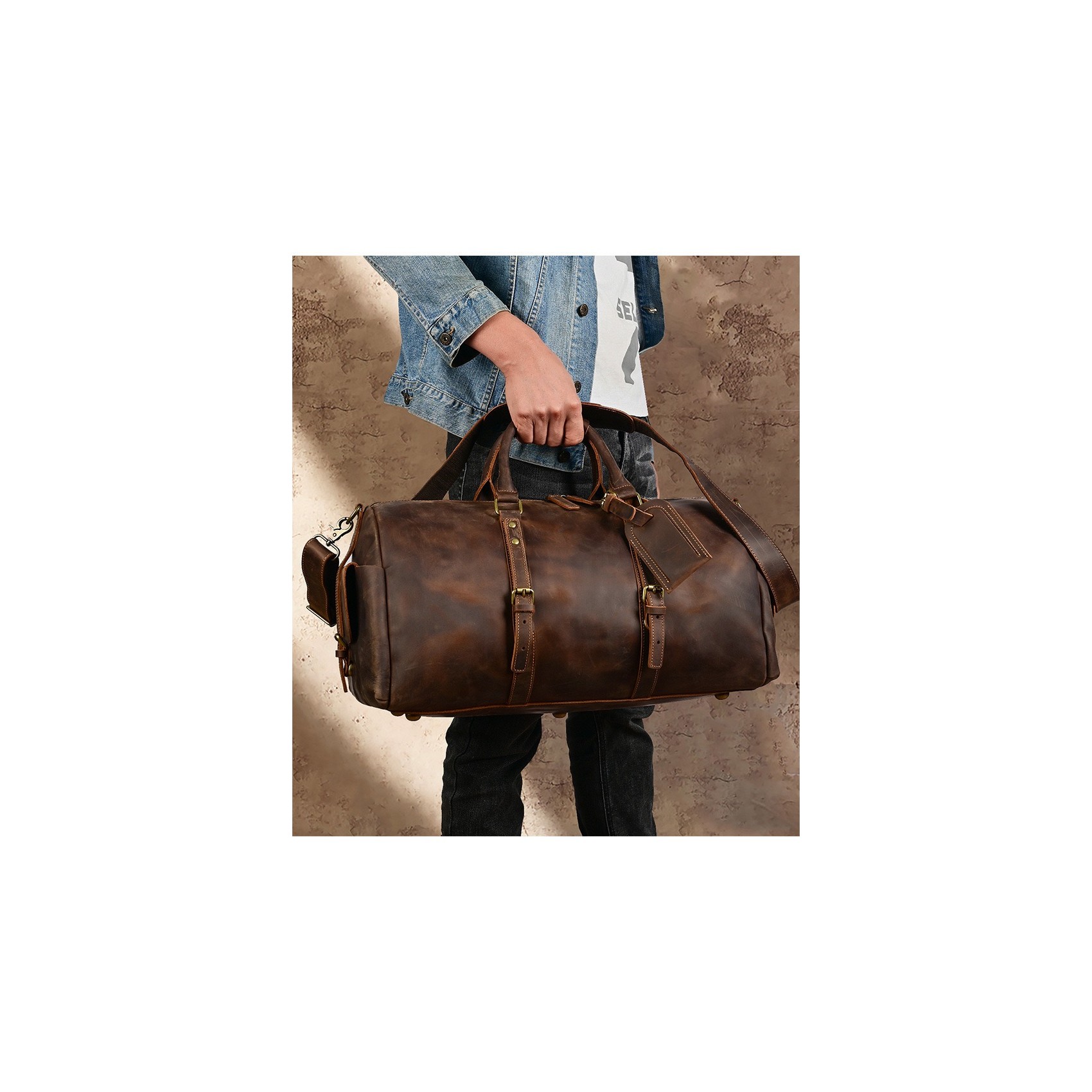 Элегантная и практичная, мужская кожаная дорожная сумка Lydford создана для стильных путешественников, которые ценят надежность и эстетику. Выполненная из плотной натуральной кожи винтажного типа, она впечатляет глубоким темно-коричневым цветом и благородной фактурой.