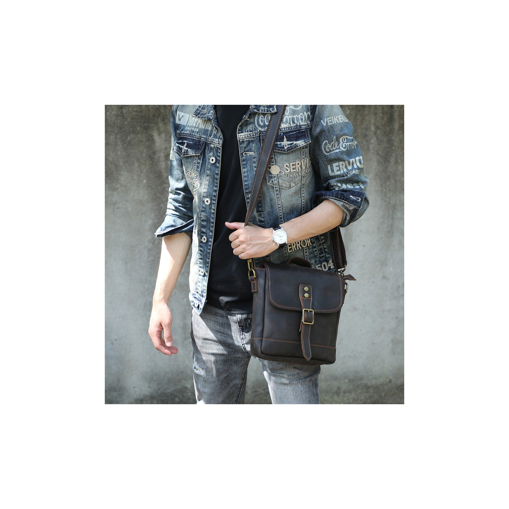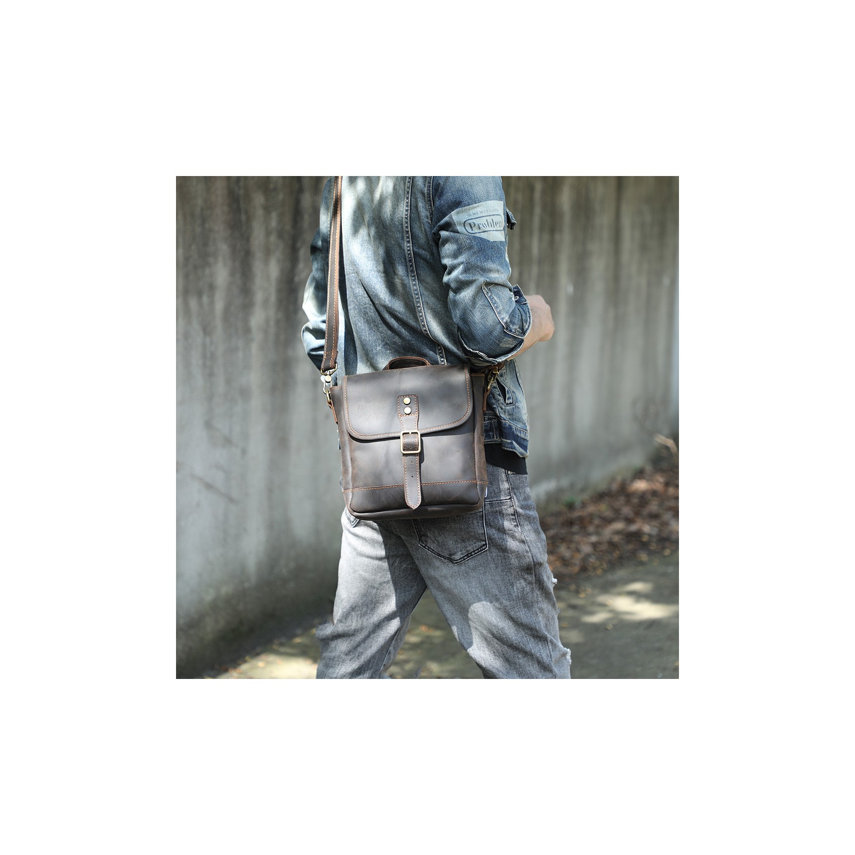 Мужская кожаная сумка-барсетка Alex через плечо темно-коричневая
