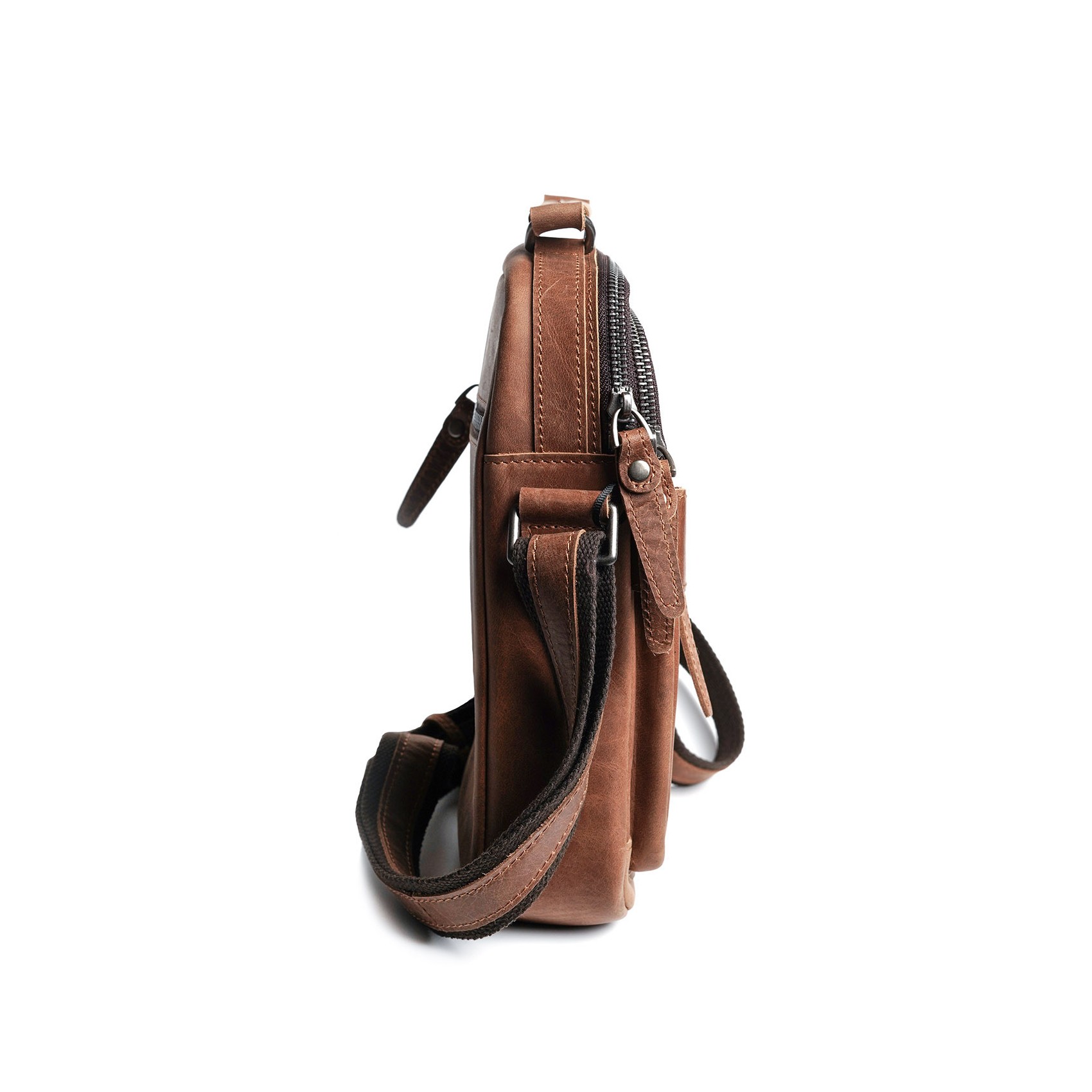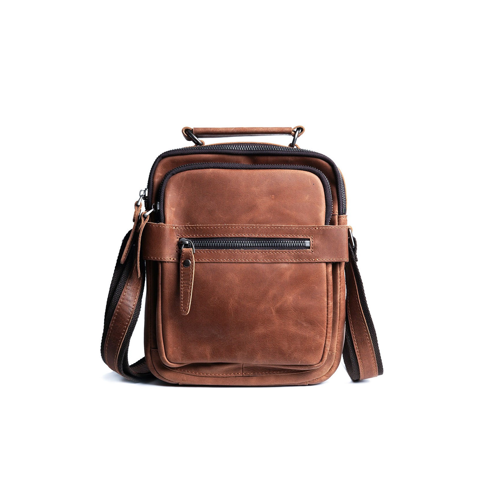 Мужская кожаная сумка Edmund через плечо светло-коричневая