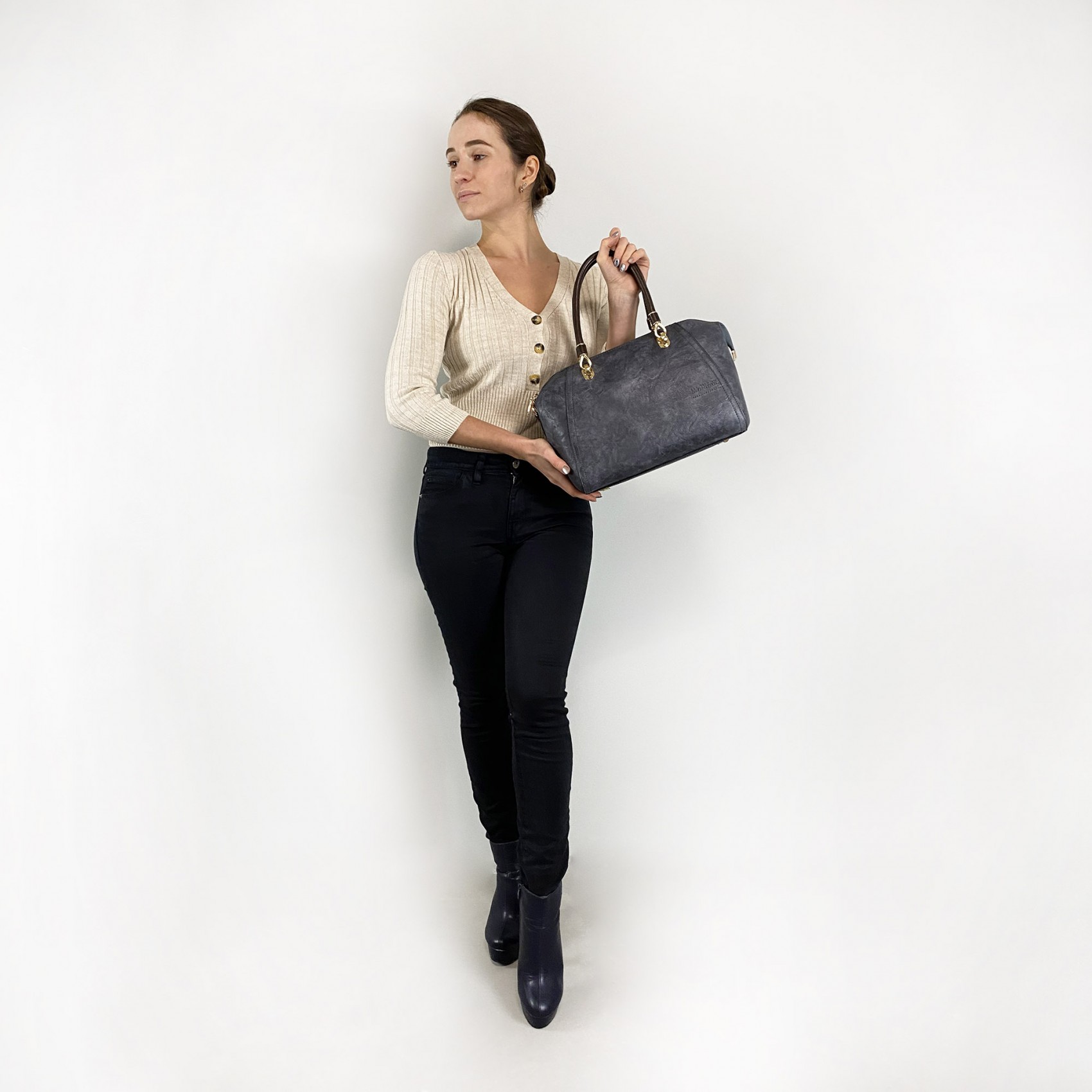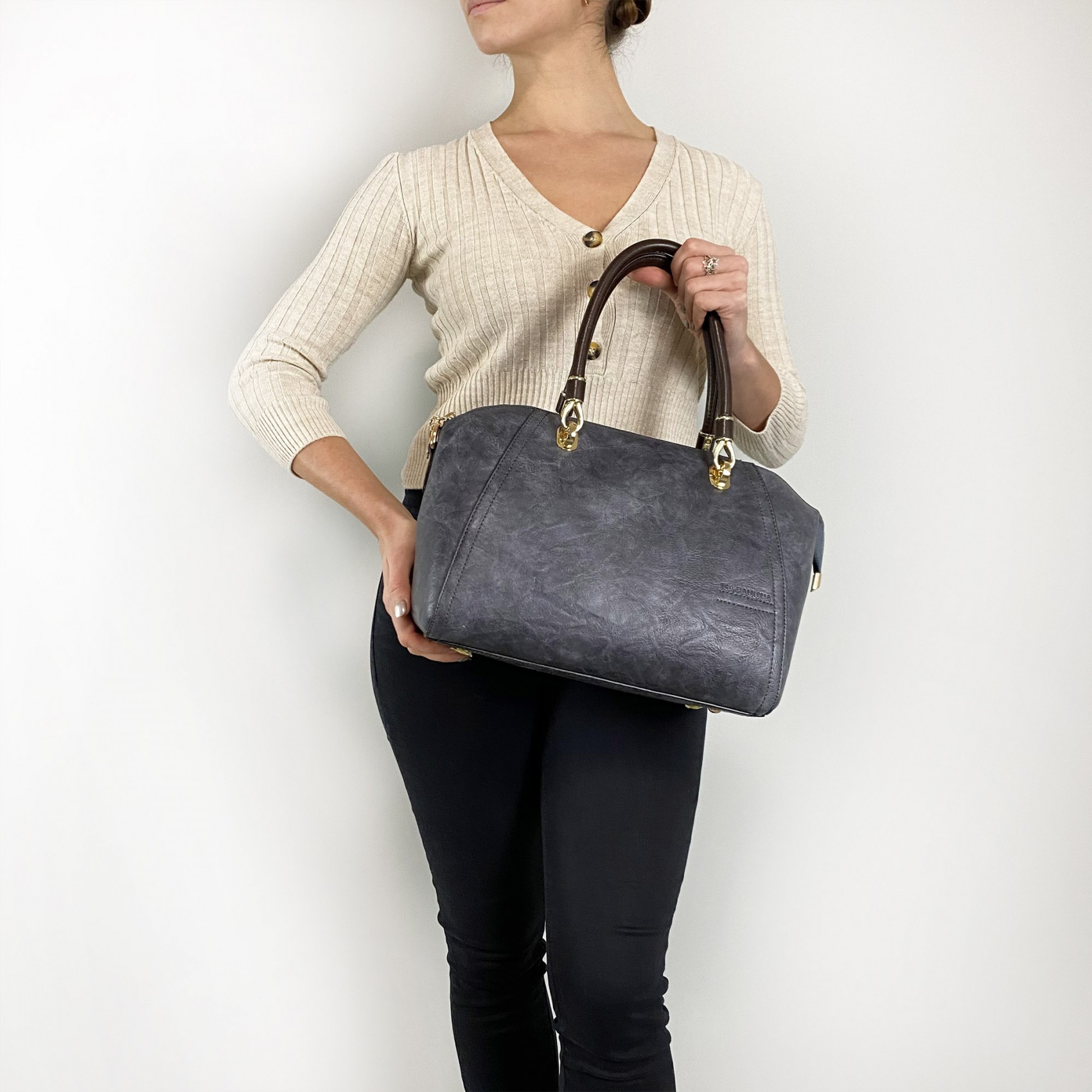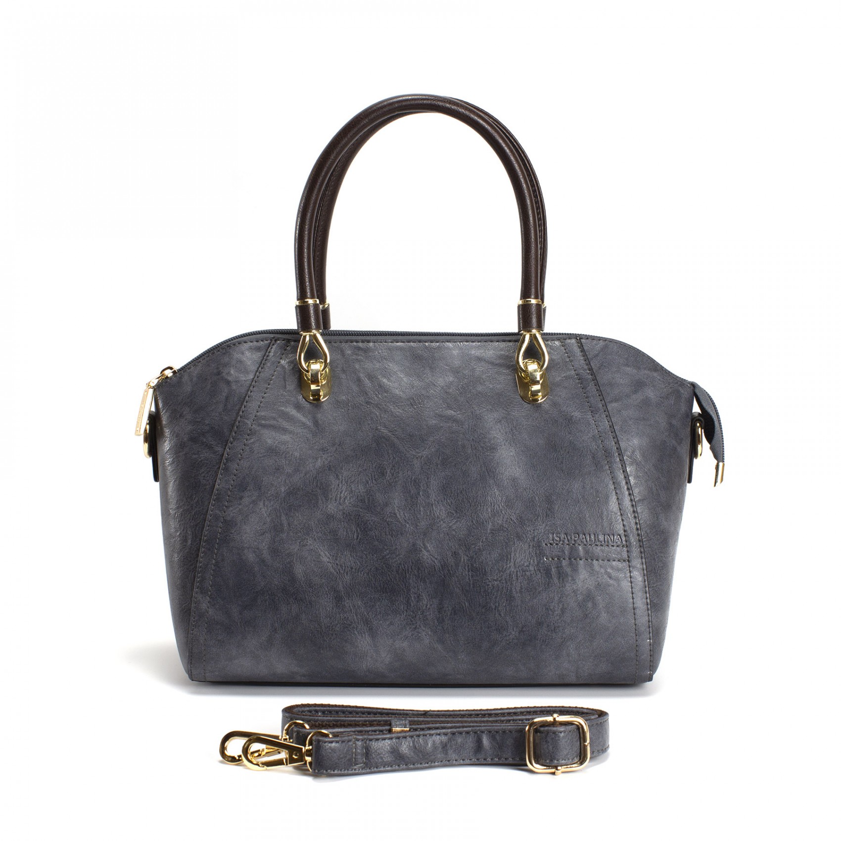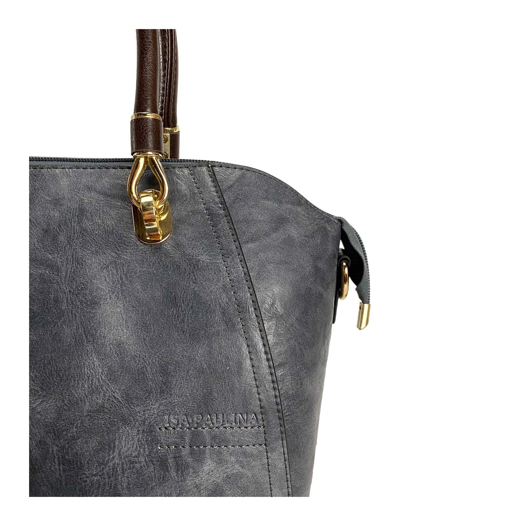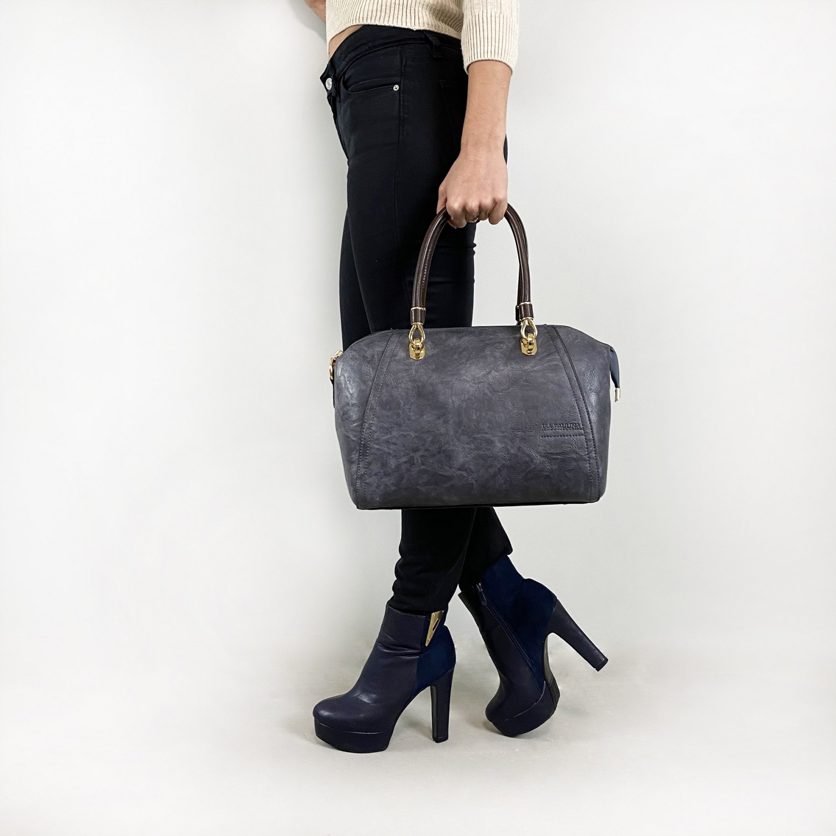 Сумка Isa Paulina DS в серо-синем цвете - идеальный выбор для создания стильного образа. Ее классический дизайн в виде саквояжа всегда остается актуальным и элегантным. Она обладает основным отделением, закрывающимся на молнии, и внутренней разделительной перегородкой, которая поможет вам организовать вещи внутри.
