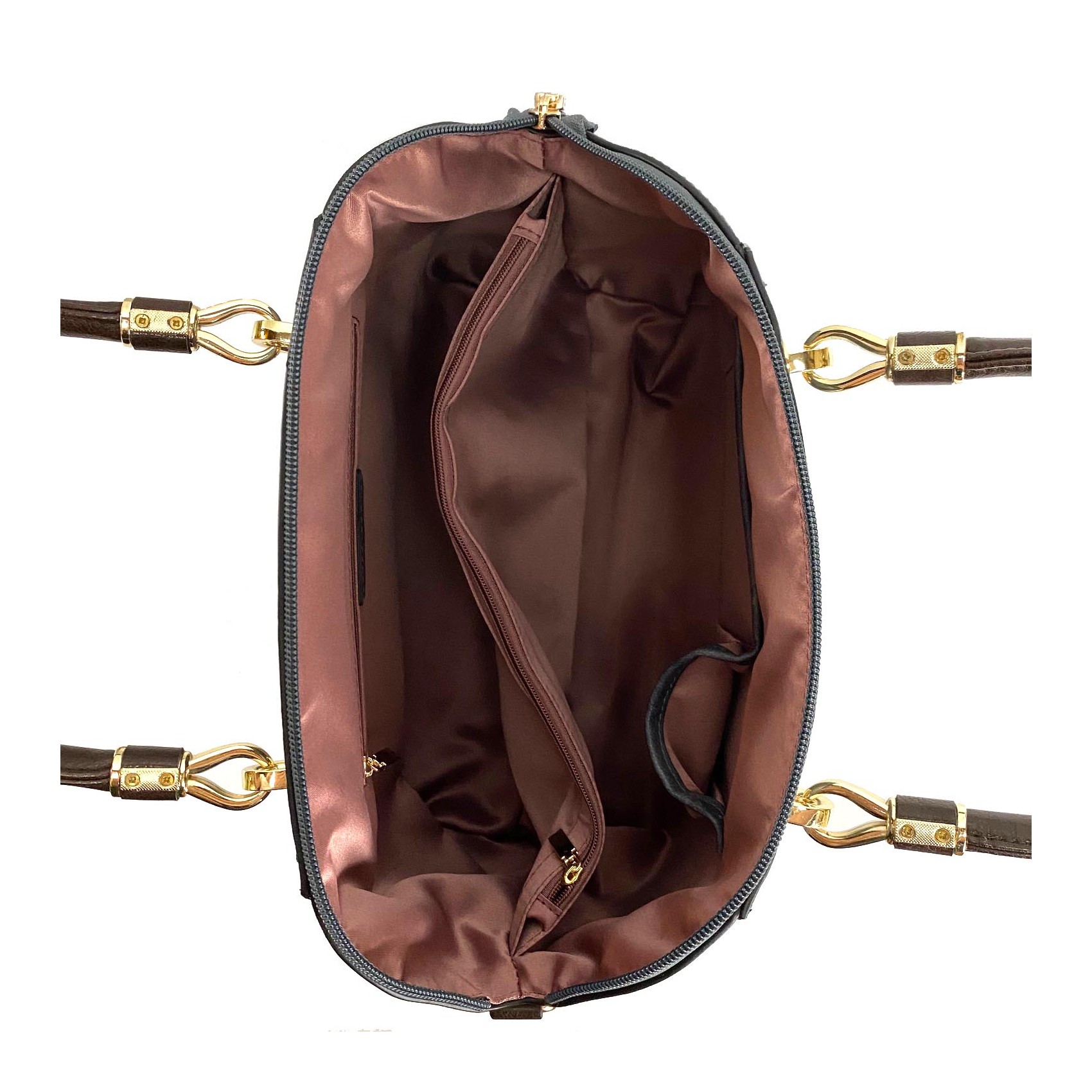 - Основное отделение на молнии, внутри разделено перегородкой(карманом) на молнии