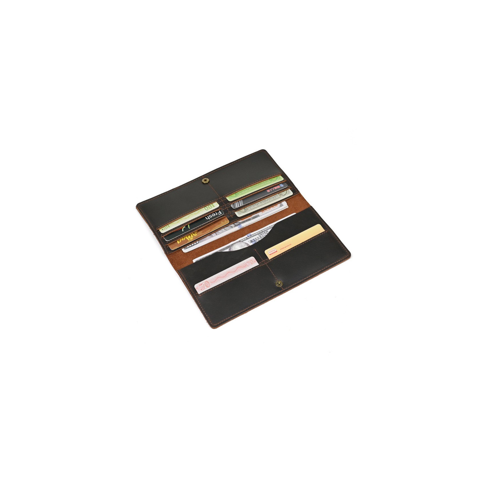 Стильний шкіряний гаманець Henry виготовлений з благородної шкіри Крейзі хорс, яка з часом набуває красивої вінтажної патини. Усередині — просторе відділення для купюр і чотири зручні слоти для карт. Глибокий темно-коричневий колір надає аксесуару солідності та стриманого шарму.