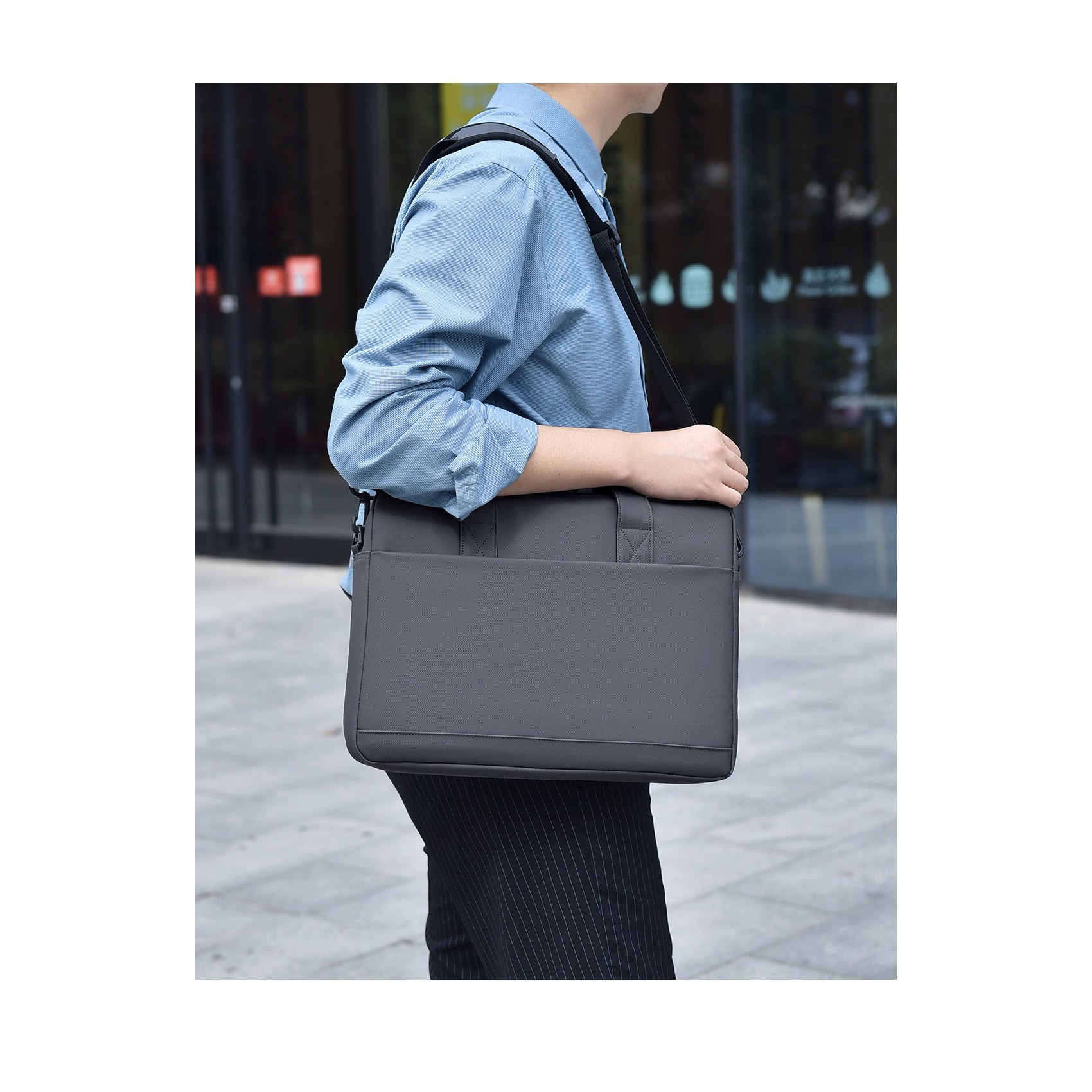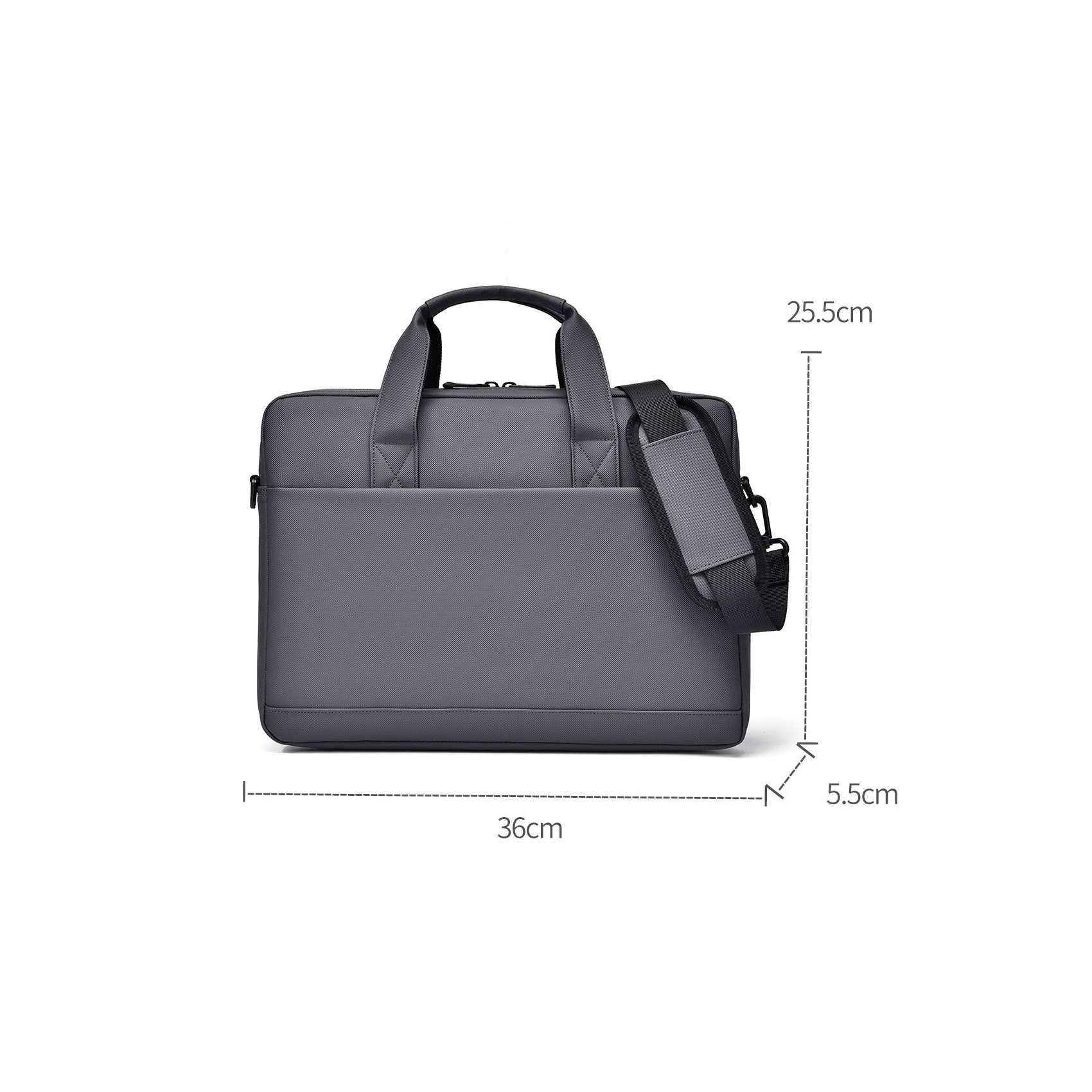Сумка для ноутбука Confident — ідеальний супутник для ділових зустрічей та подорожей. Виготовлена з міцного поєднання поліестеру й нейлону, вона надійно захищає ваш ноутбук із діагоналлю 15.6–16 дюймів. Зручне внутрішнє відділення фіксує техніку, а зовнішня кишеня на блискавці спереду дозволяє швидко дістати потрібні дрібниці.