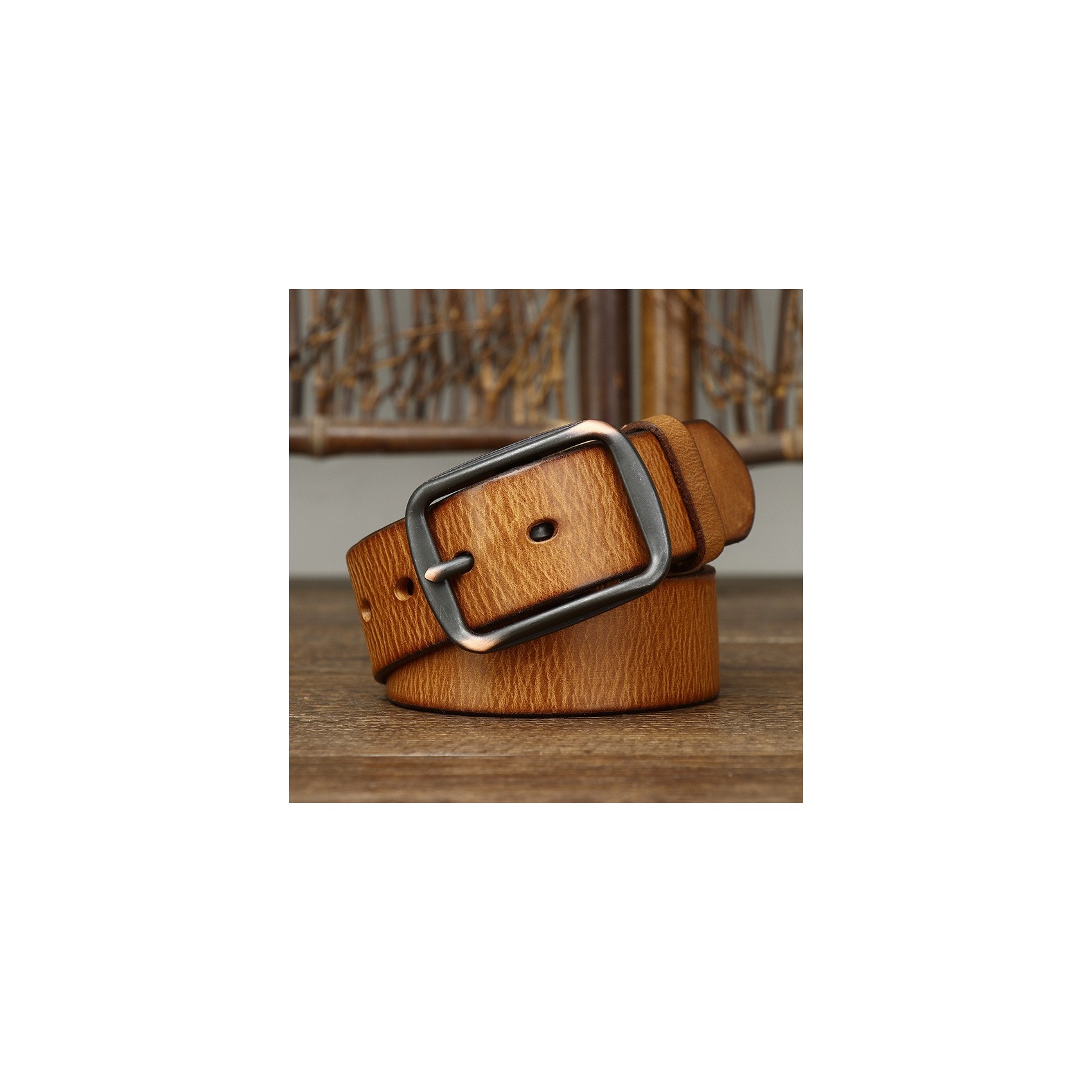 Цілісне шкіряне полотно надає ременю довговічності, а світло-коричневий відтінок робить його універсальним вибором для будь-якого гардероба. Завершує дизайн надійна металева застібка, яка не лише зручна у використанні, а й надає аксесуару виразного акценту.