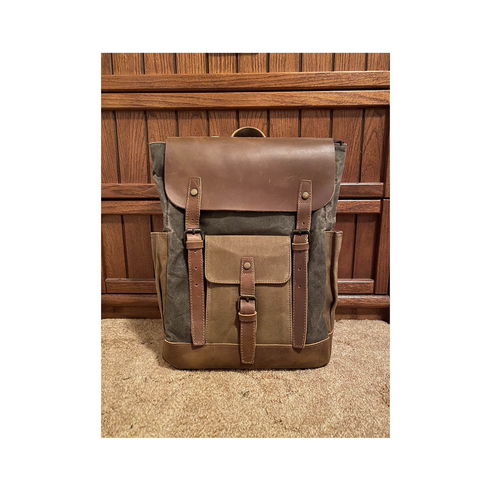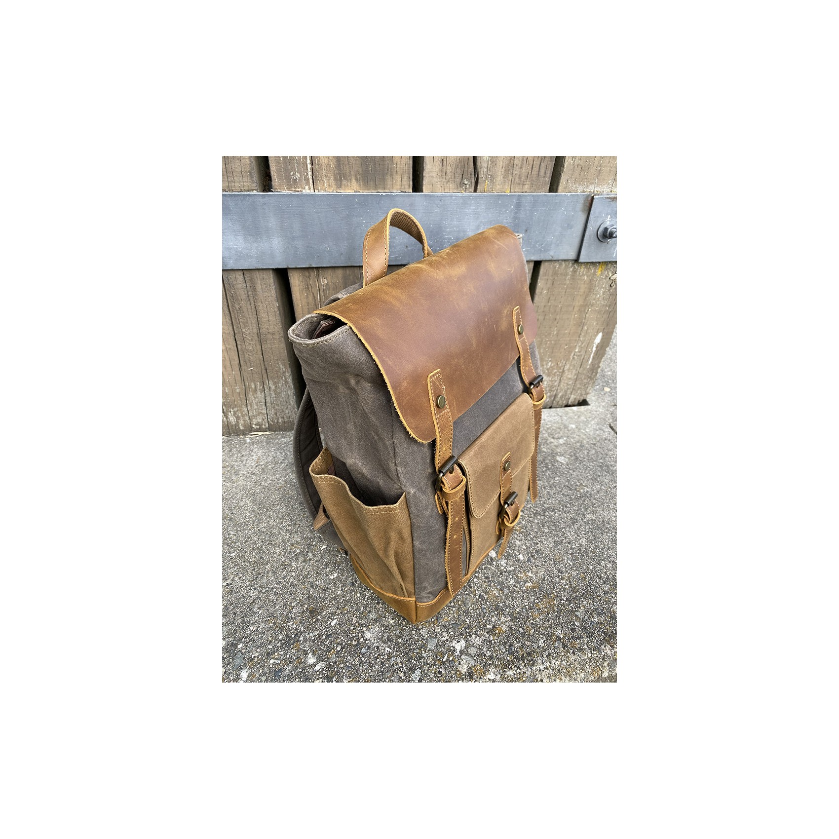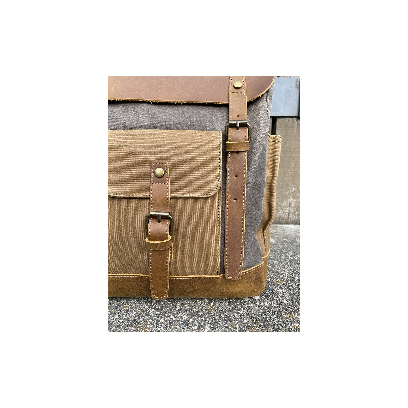 - Канвас із вставками з натуральної вінтажної шкіри крейзі хорс