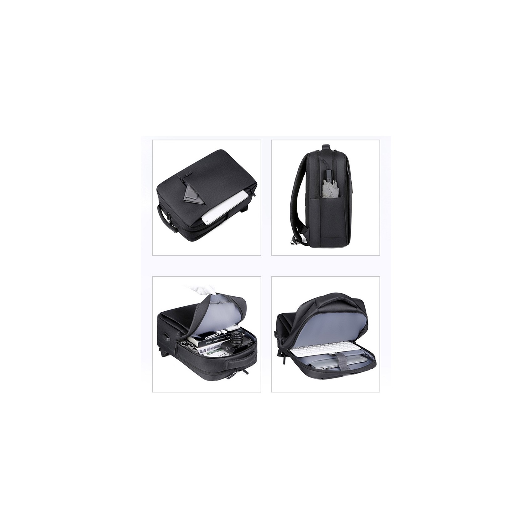 Зовні розташовано два місткі кишені на блискавці для швидкого доступу до дрібниць. Основні відділення закриваються на блискавку та вміщують усе необхідне — від ноутбука з діагоналлю до 16 дюймів до фото- та відеотехніки. Усередині передбачено окреме відділення для ноутбука та функціональні кишені для аксесуарів.