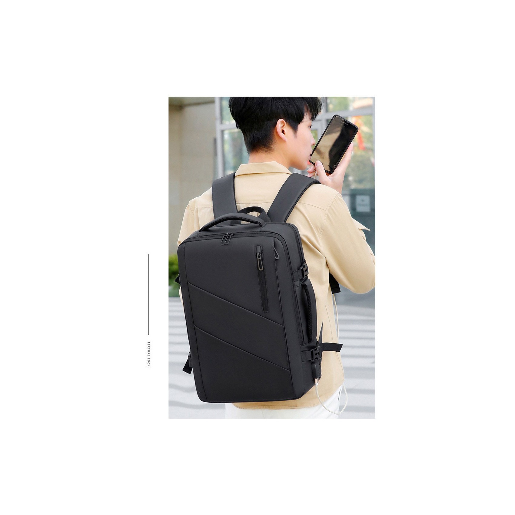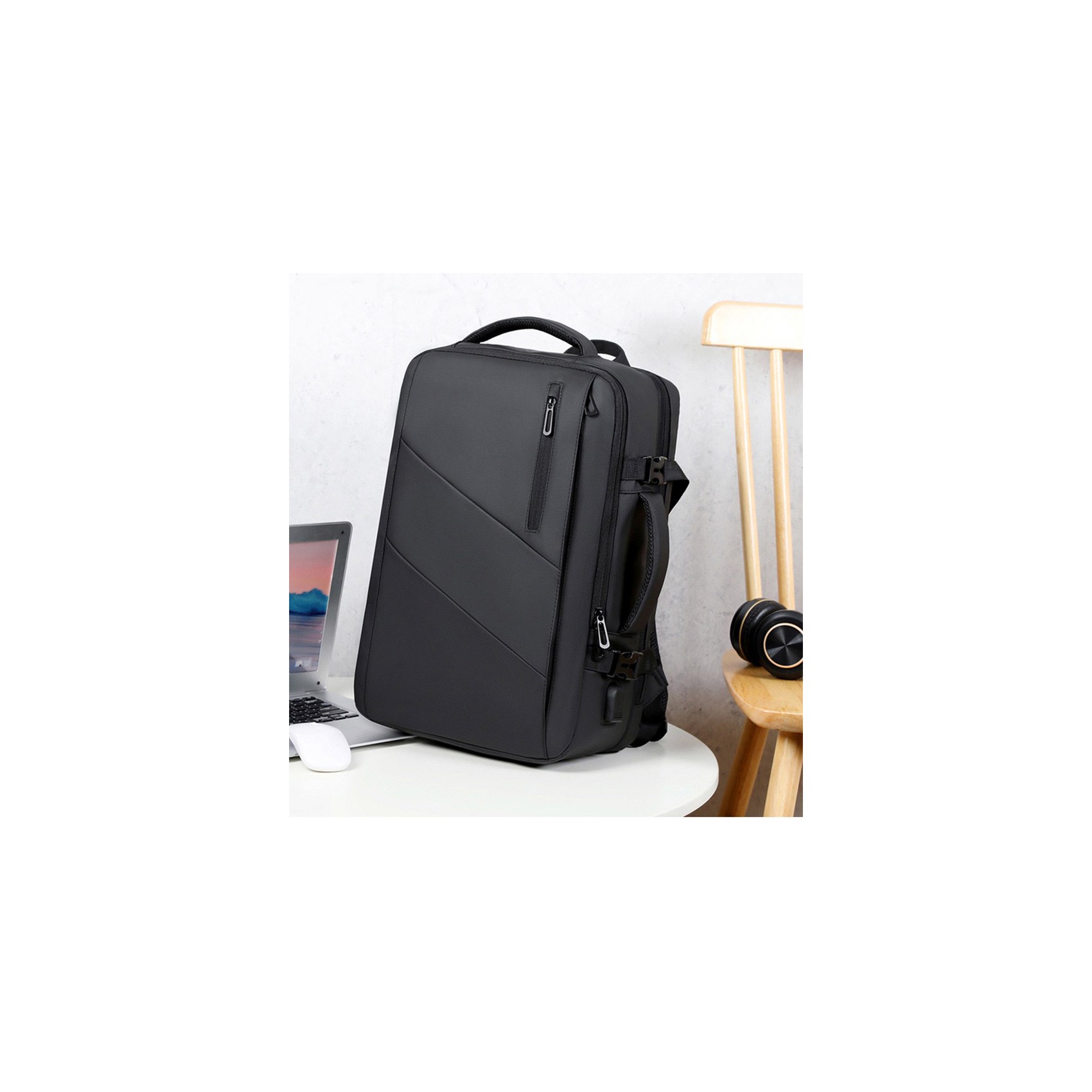 Для зручності є ручки зверху та збоку, а також еластична стрічка ззаду для фіксації на валізі — ідеальний варіант для подорожей. Практичний вихід під зарядний пристрій робить рюкзак ще більш сучасним. Quentin — надійний супутник у місті, на роботі та в дорозі.