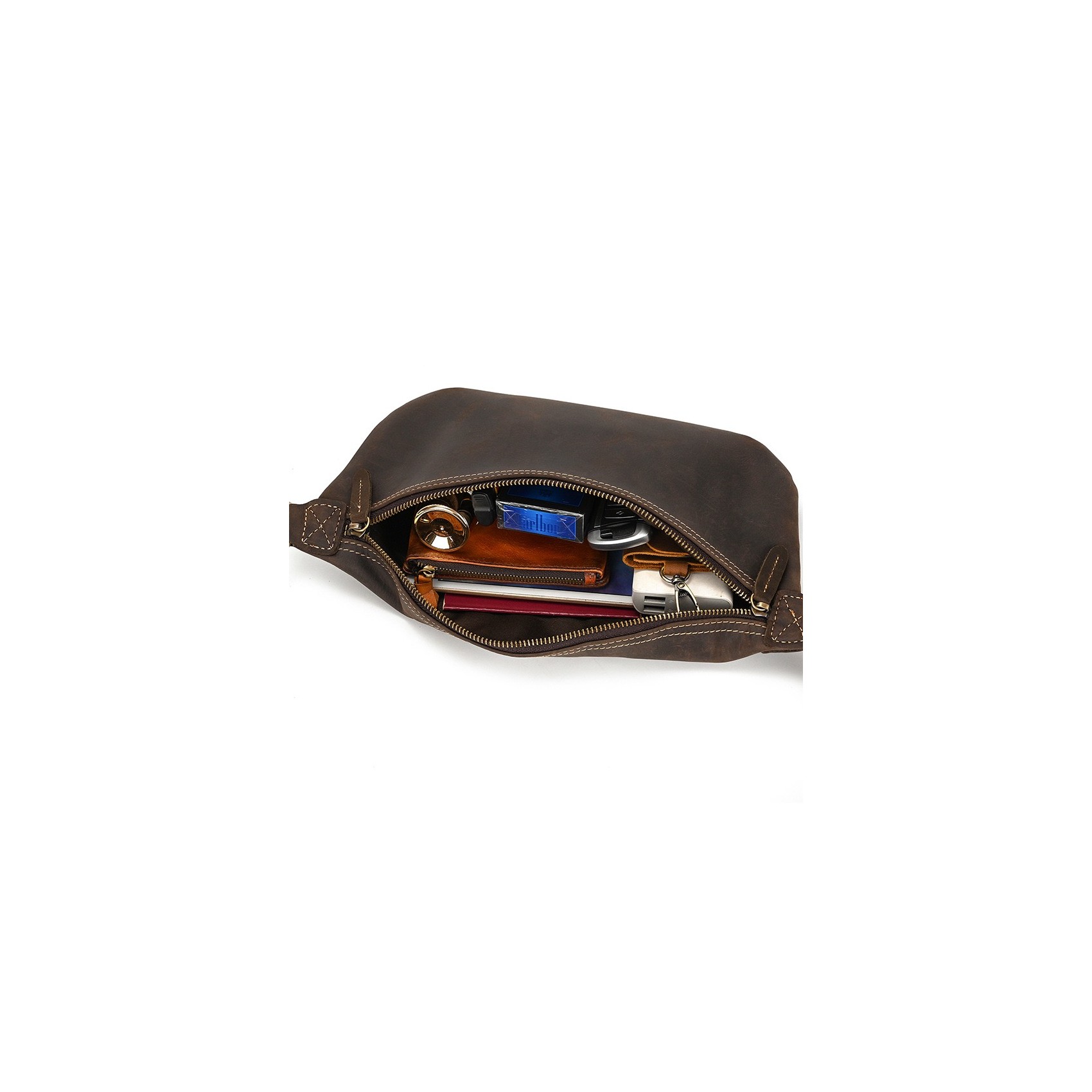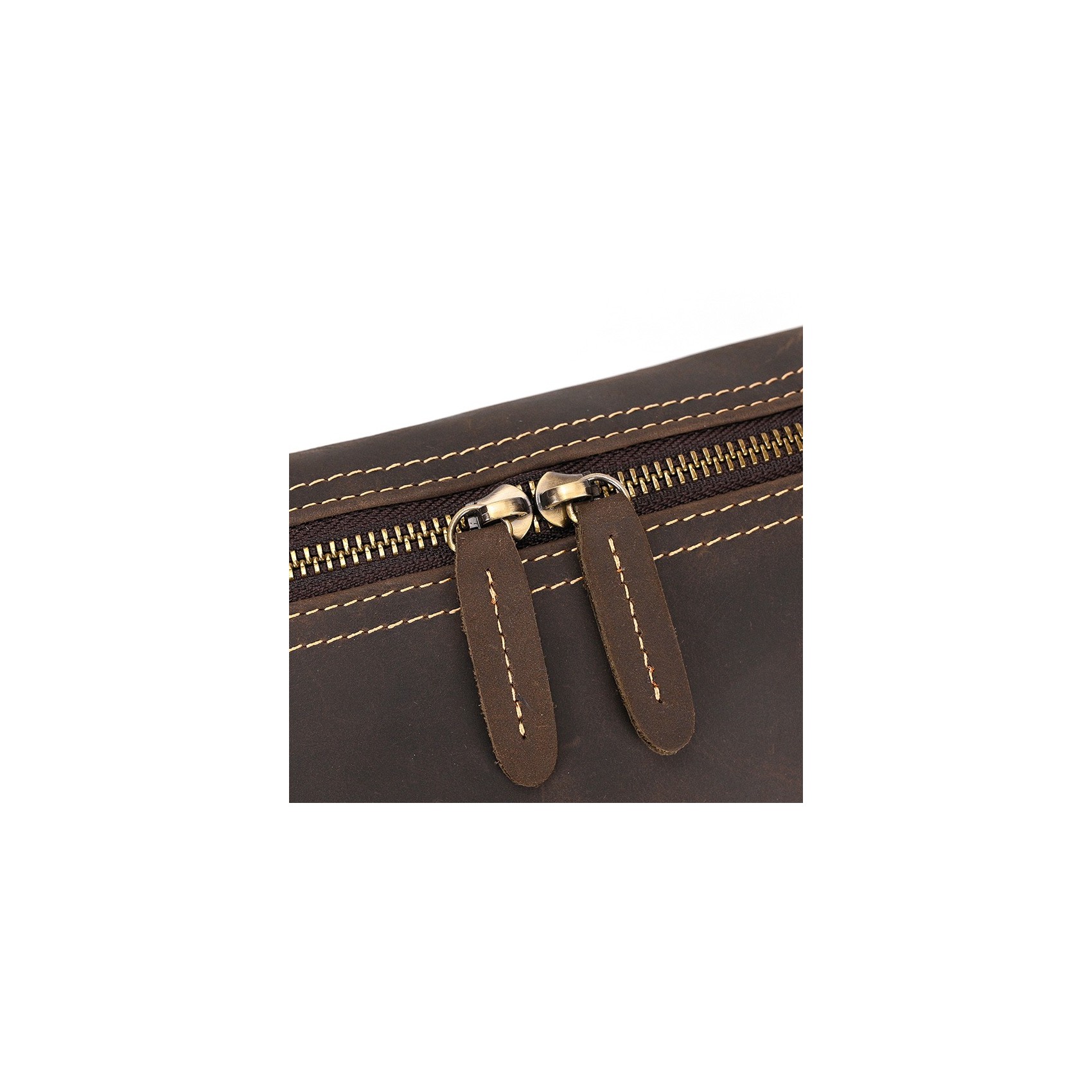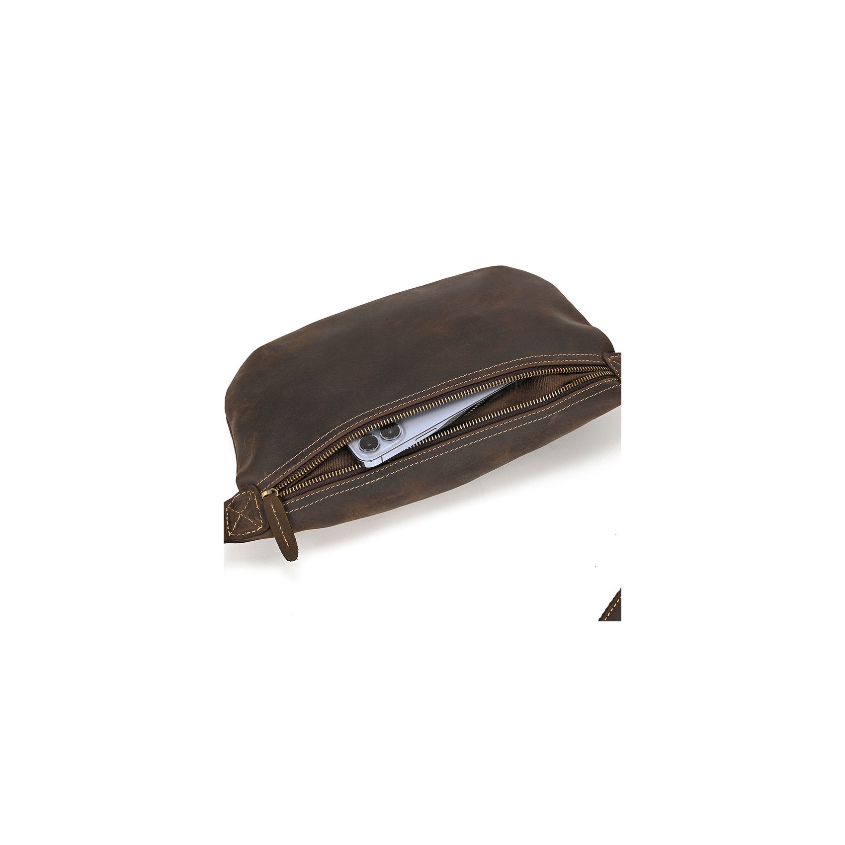 Бананка Barnard — це втілення елегантності та практичності в одному аксесуарі. Глибокий темно-коричневий відтінок натуральної вінтажної шкіри надає їй особливого шарму, а з часом матеріал набуває ще більш виразного характеру. Компактна, але містка, вона оснащена основним відділенням на блискавці, внутрішньою кишенею на блискавці та зручним відсіком для дрібниць.