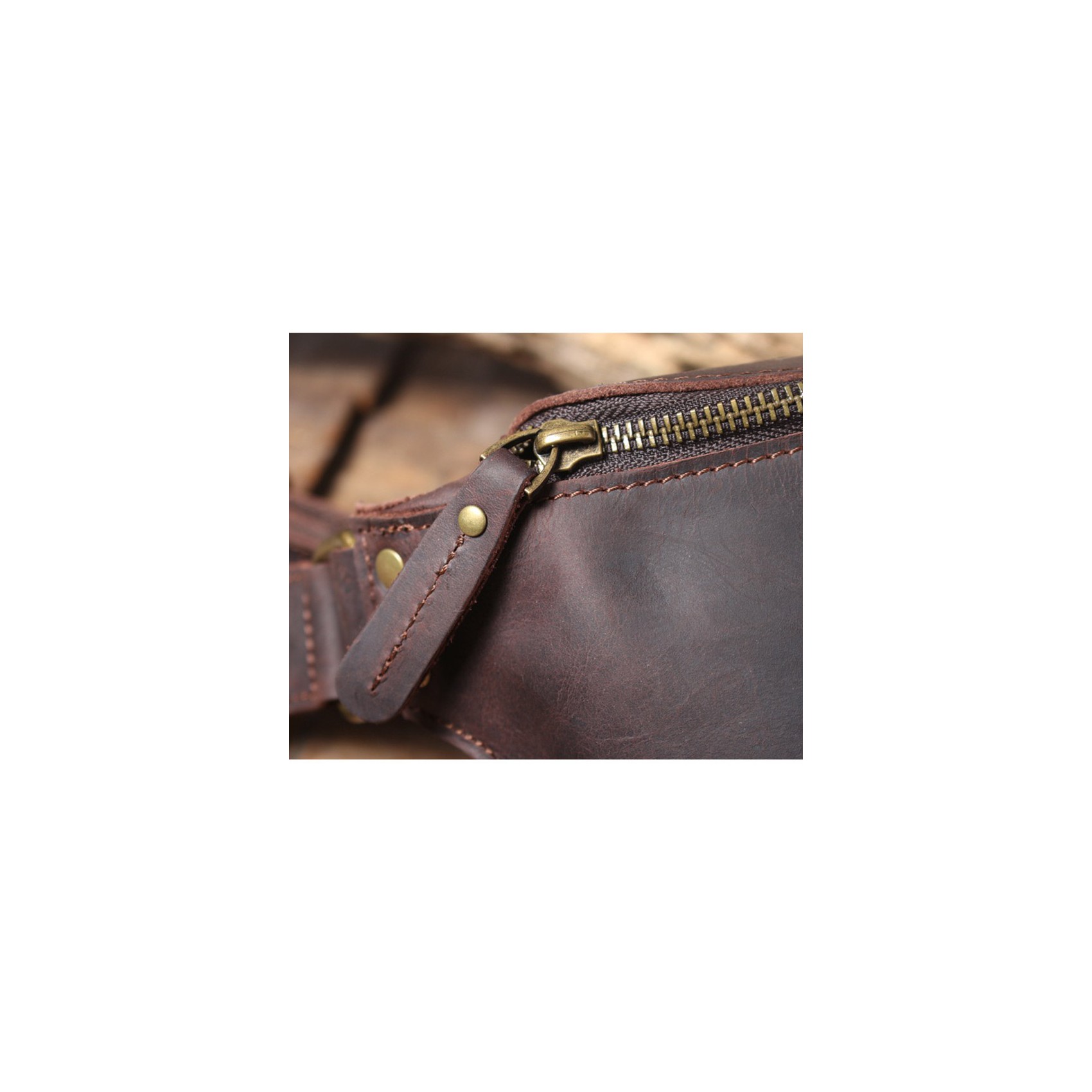 Сумка-бананка на пояс Hector — це втілення стилю та елегантності в темно-коричневому відтінку. Виготовлена з високоякісної натуральної шкіри, вона не лише виглядає розкішно, але й обіцяє довговічність у використанні. Основне відділення на блискавці надійно зберігає ваші речі, а внутрішні кишені — один на блискавці та кишенька для карток — допоможуть тримати всі необхідні дрібниці в порядку. Якісна фурнітура надає виробу додатковий шарм, підкреслюючи його стильний та оригінальний дизайн. Сумка Hector стане вашим незмінним супутником, додаючи родзинку до будь-якого образу.
