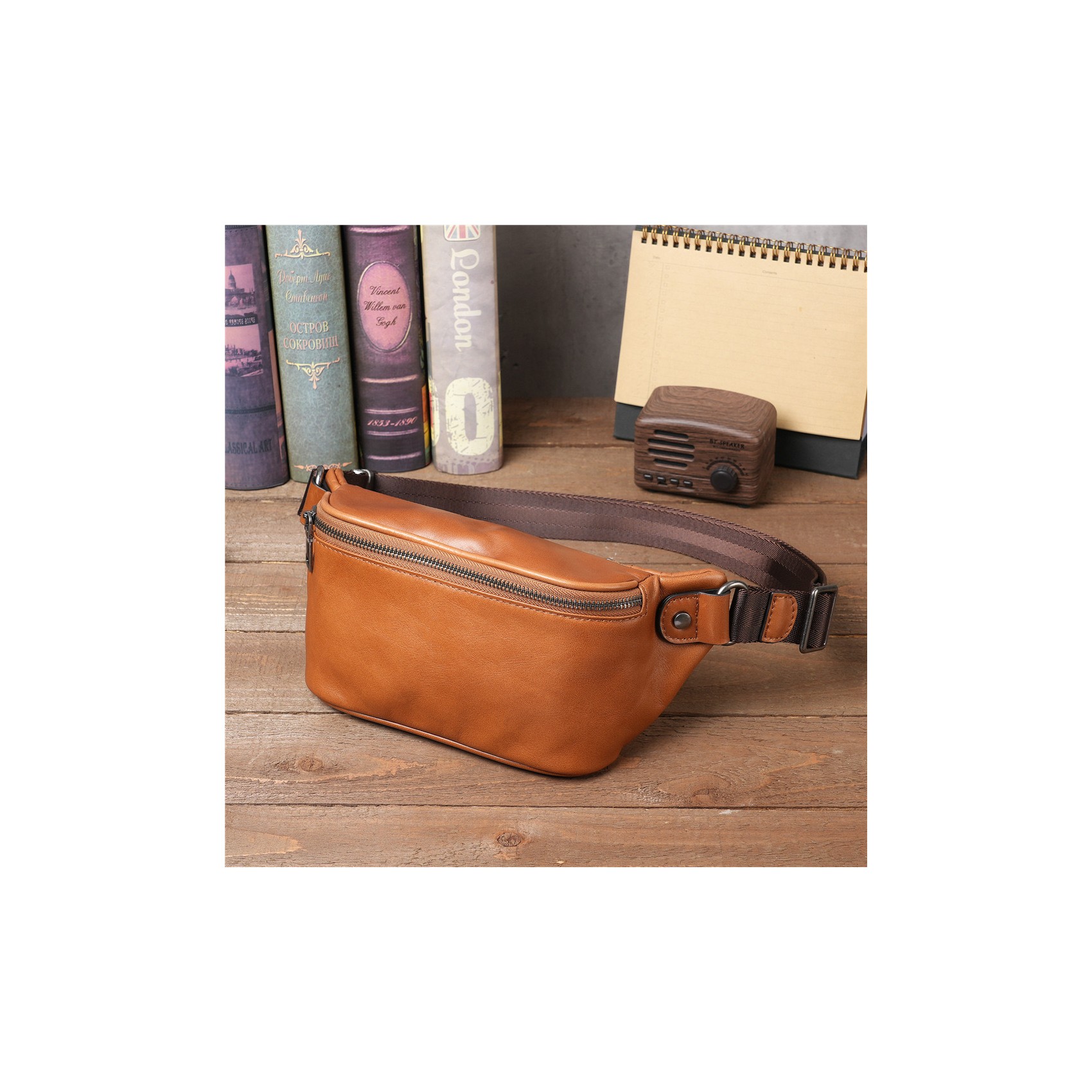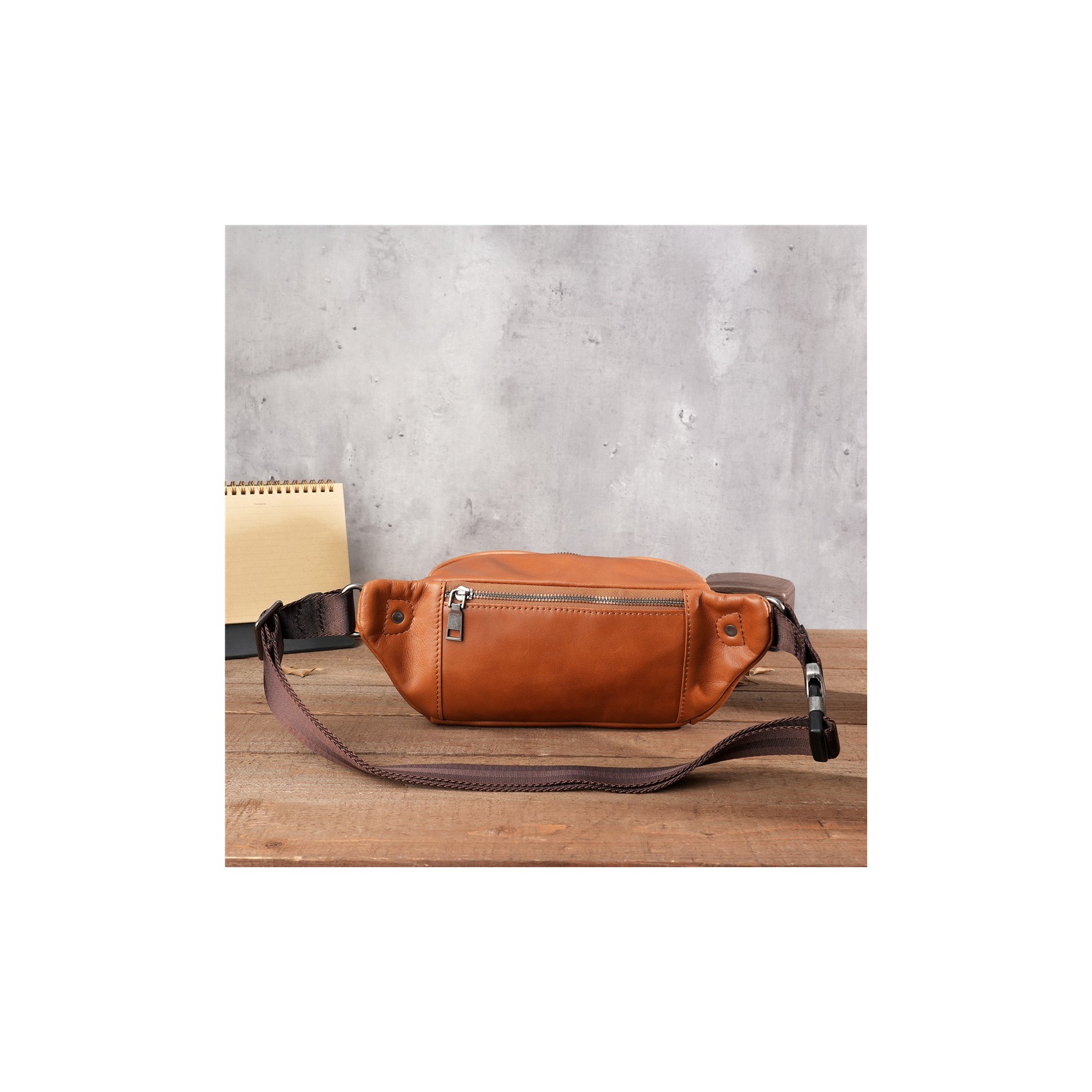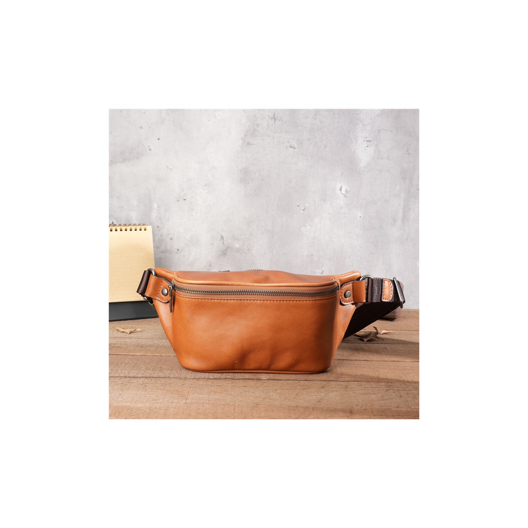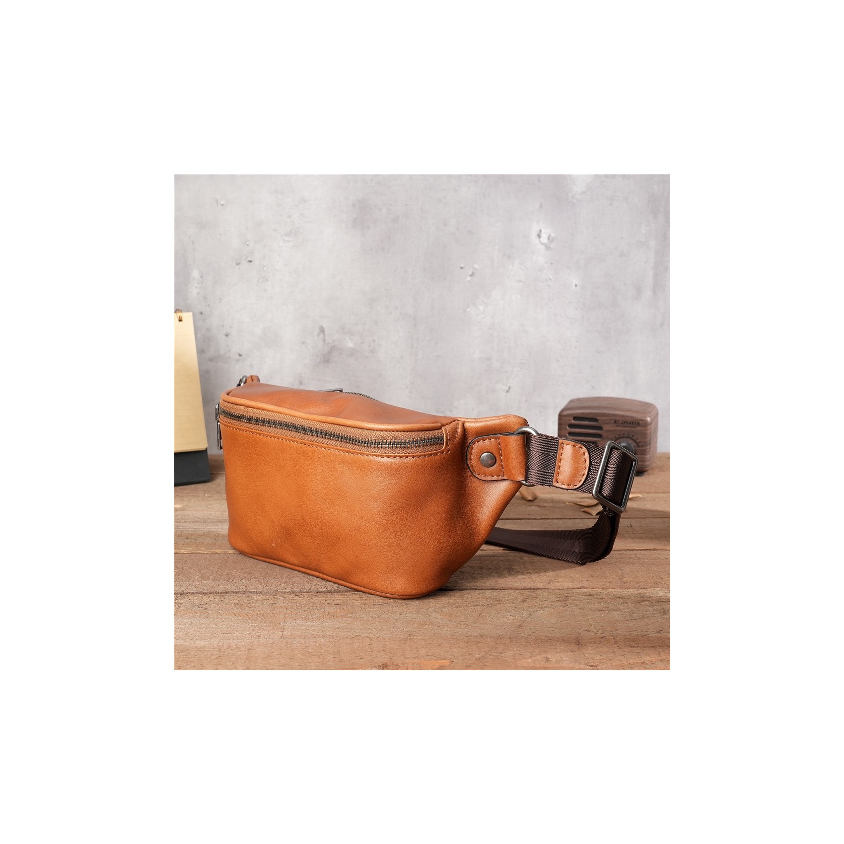 Лаконічна й елегантна, бананка Walter — це втілення стилю та практичності. Виконана з натуральної шкіри світло-коричневого відтінку, вона виглядає вишукано й гідно витримує випробування часом. Основне відділення на надійній блискавці забезпечує зручний доступ до ваших речей, а внутрішня кишеня на блискавці допомагає організувати дрібниці.