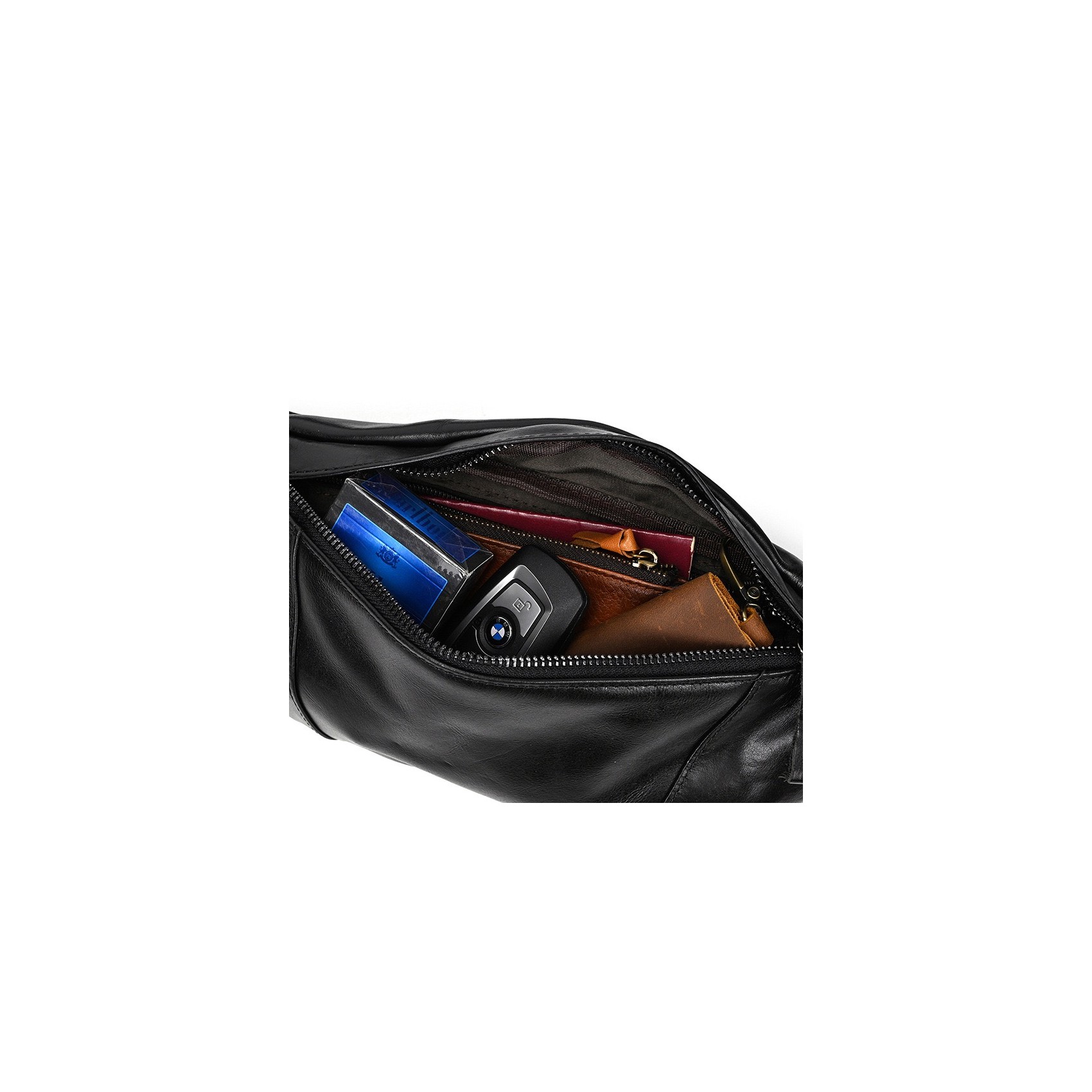 Практичність поєднується зі стилем у бананці Watford — ідеальному аксесуарі для тих, хто цінує зручність і елегантність. Виконана з натуральної шкіри насиченого чорного кольору, вона виглядає вишукано й стильно, доповнюючи як повсякденні, так і більш строгі образи.