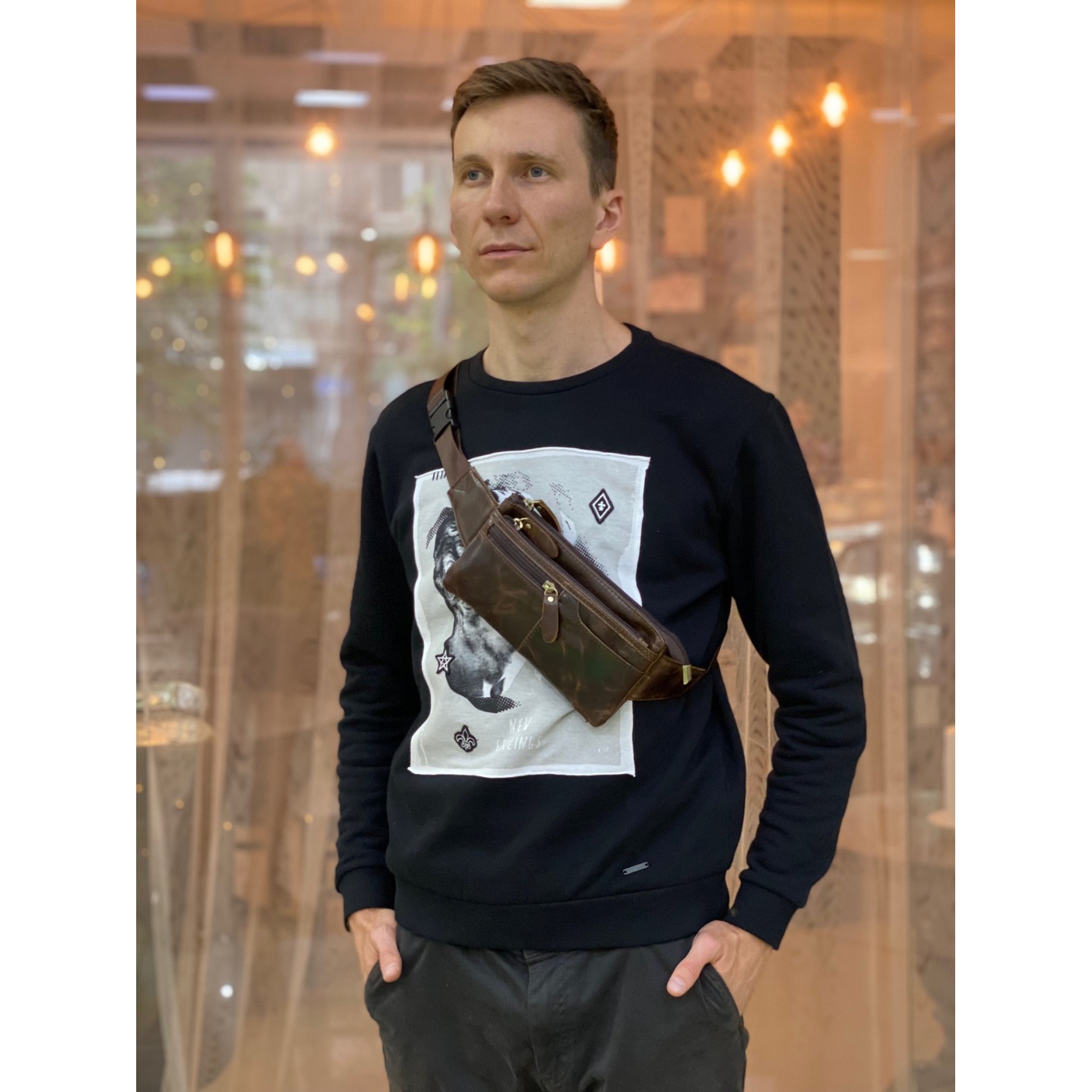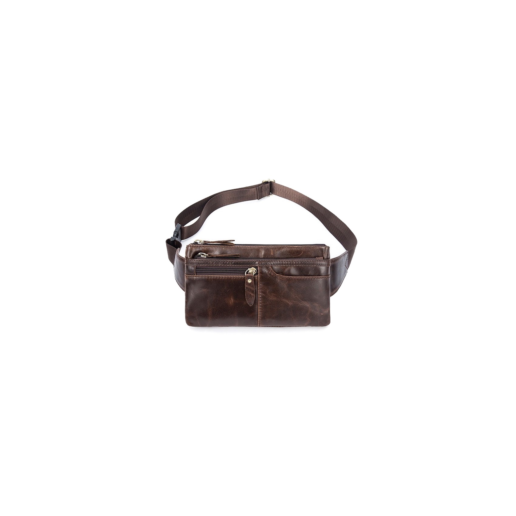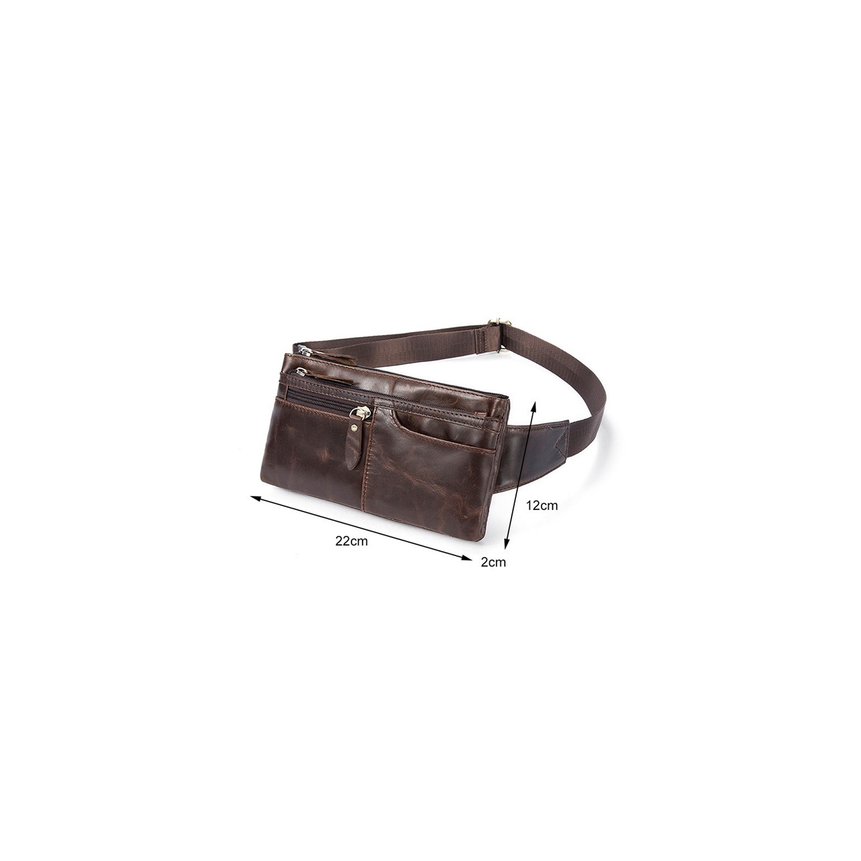 Стильна та функціональна поясна сумка бананка Harvey у темно-коричневому кольорі виготовлена з міцної шкіри, яка надає їй елегантного вигляду та забезпечує довговічність.