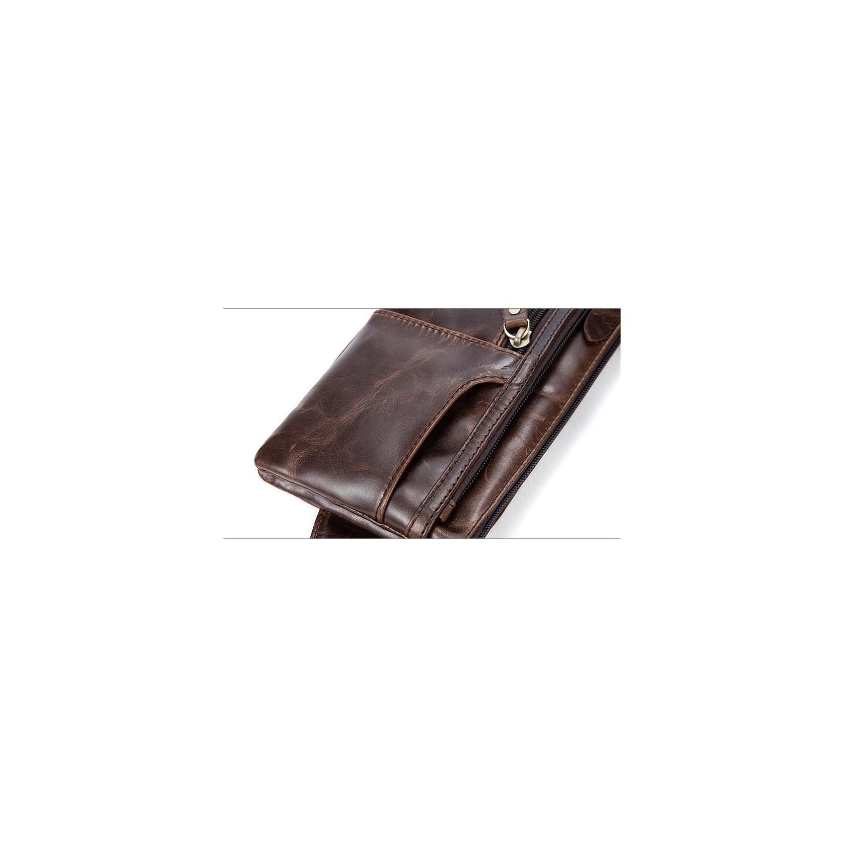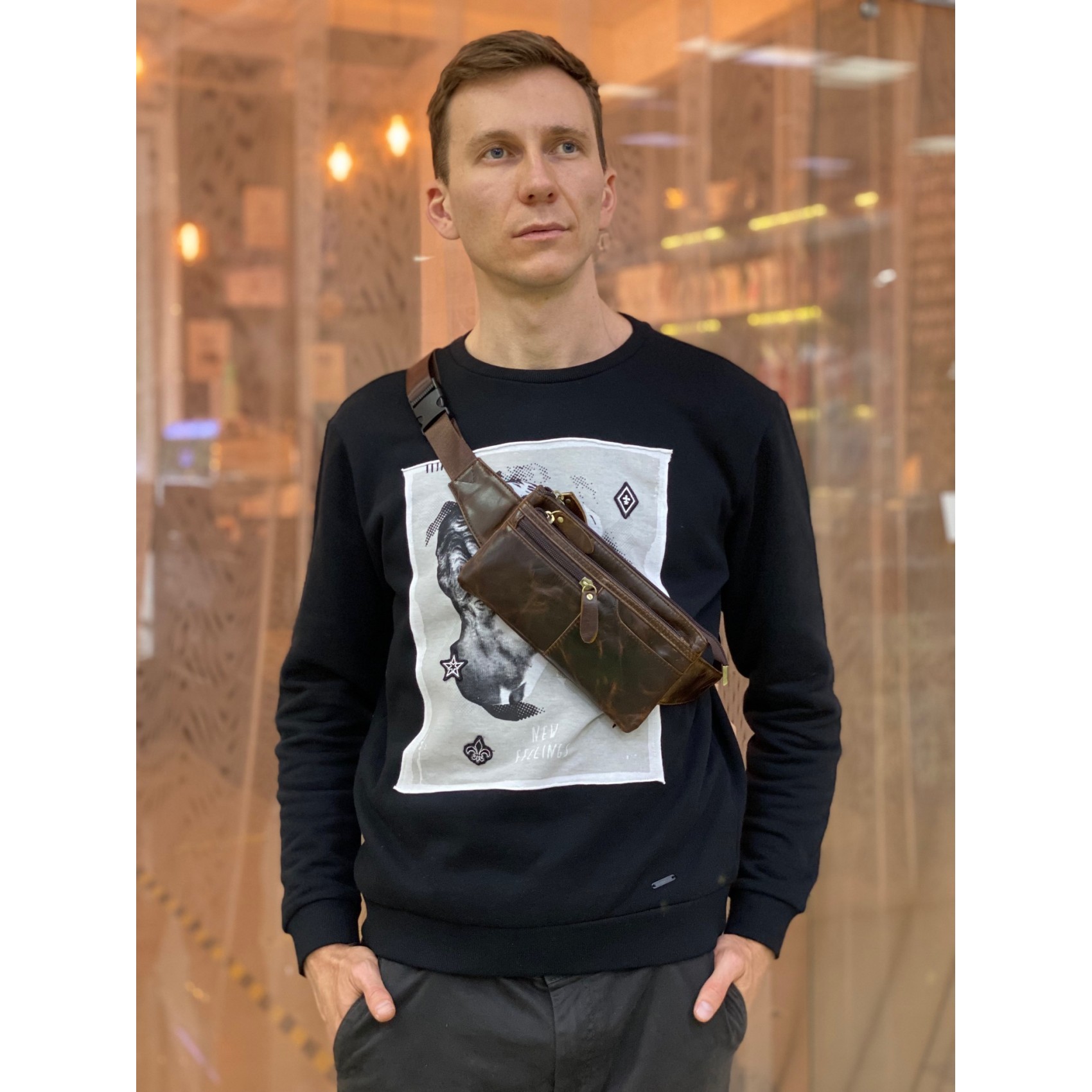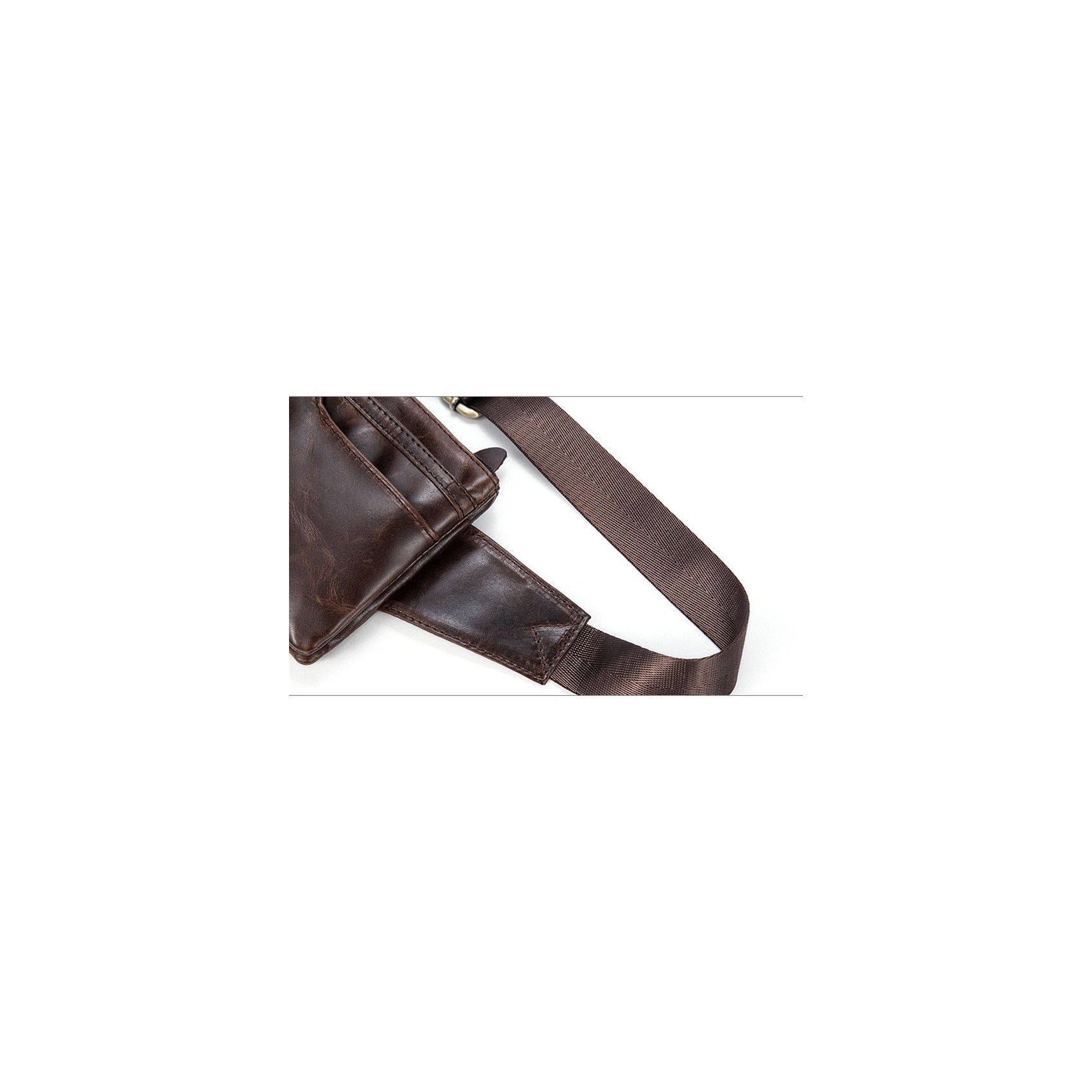 Стильна та функціональна поясна сумка бананка Harvey у темно-коричневому кольорі виготовлена з міцної шкіри, яка надає їй елегантного вигляду та забезпечує довговічність.