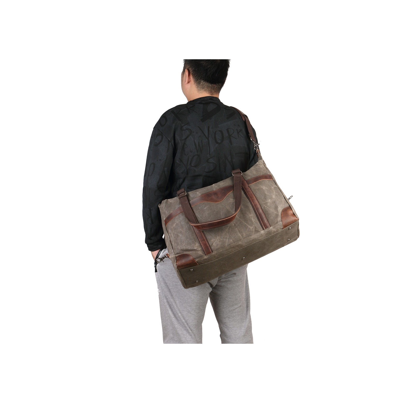 Міцний матеріал канвас комбінований з натуральною вінтажною шкірою