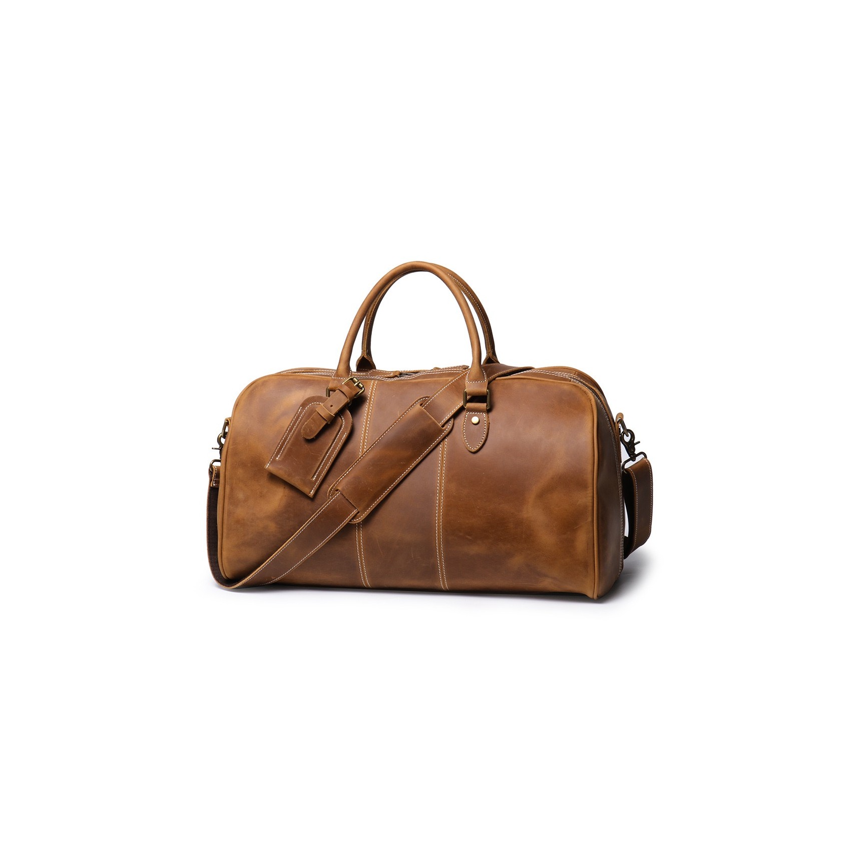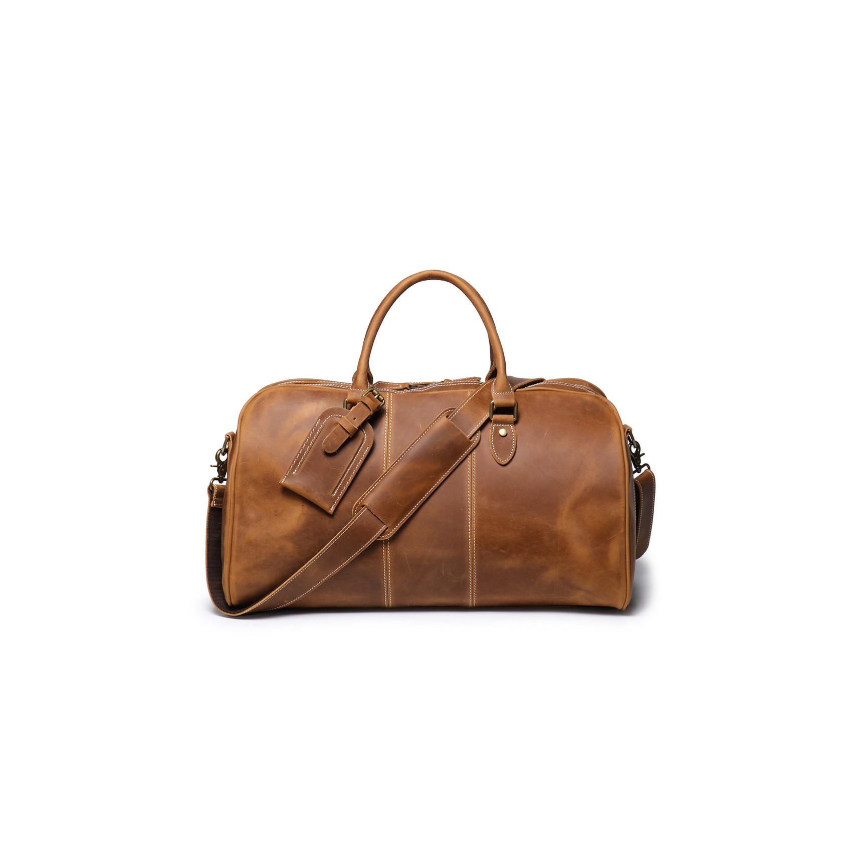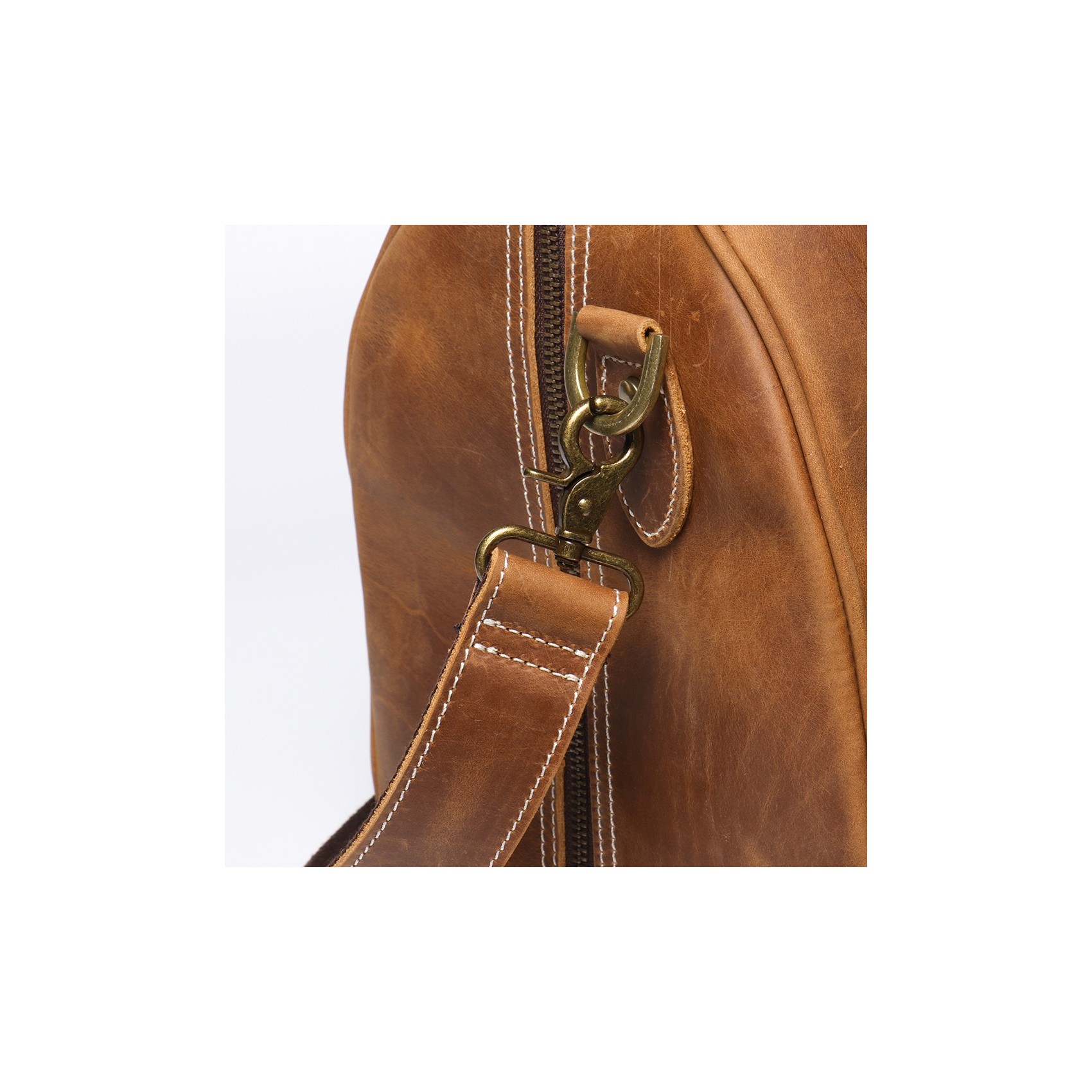 Ідеальний супутник для ділових поїздок і вікендів, чоловіча шкіряна дорожня сумка Clayton поєднує в собі стиль, надійність і практичність. Виконана з щільної вінтажної натуральної шкіри світло-коричневого відтінку, вона з часом набуває благородної патини, підкреслюючи ваш бездоганний смак.