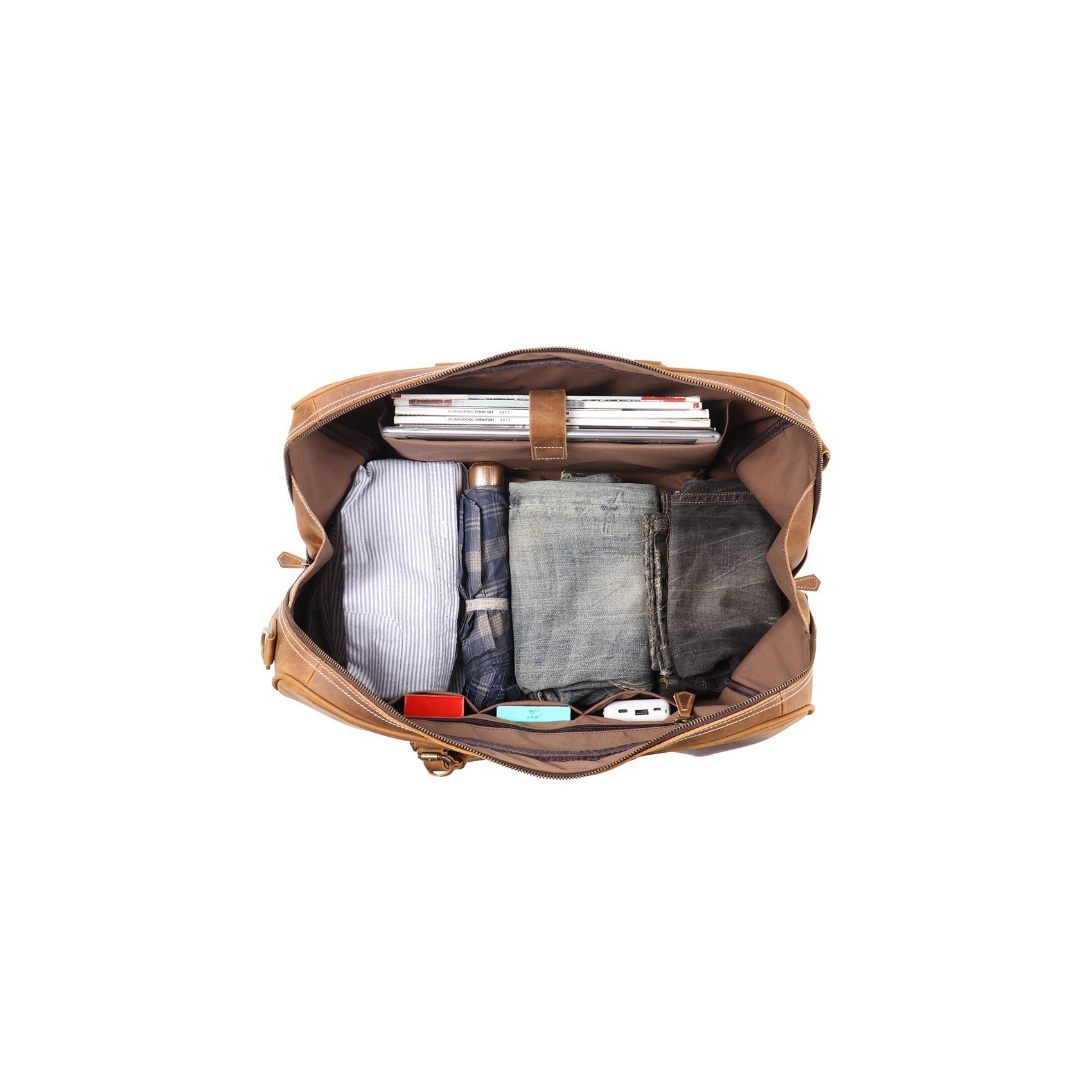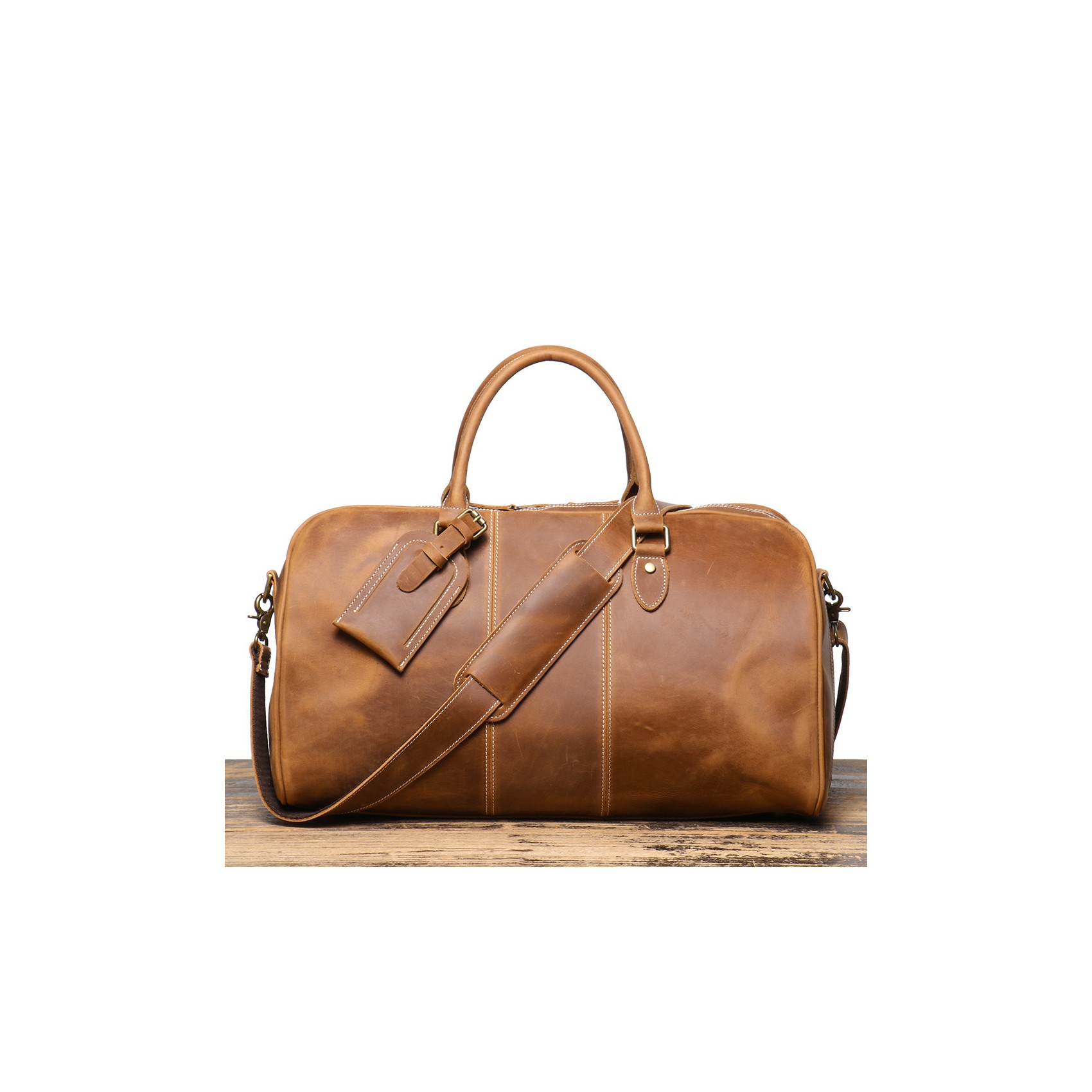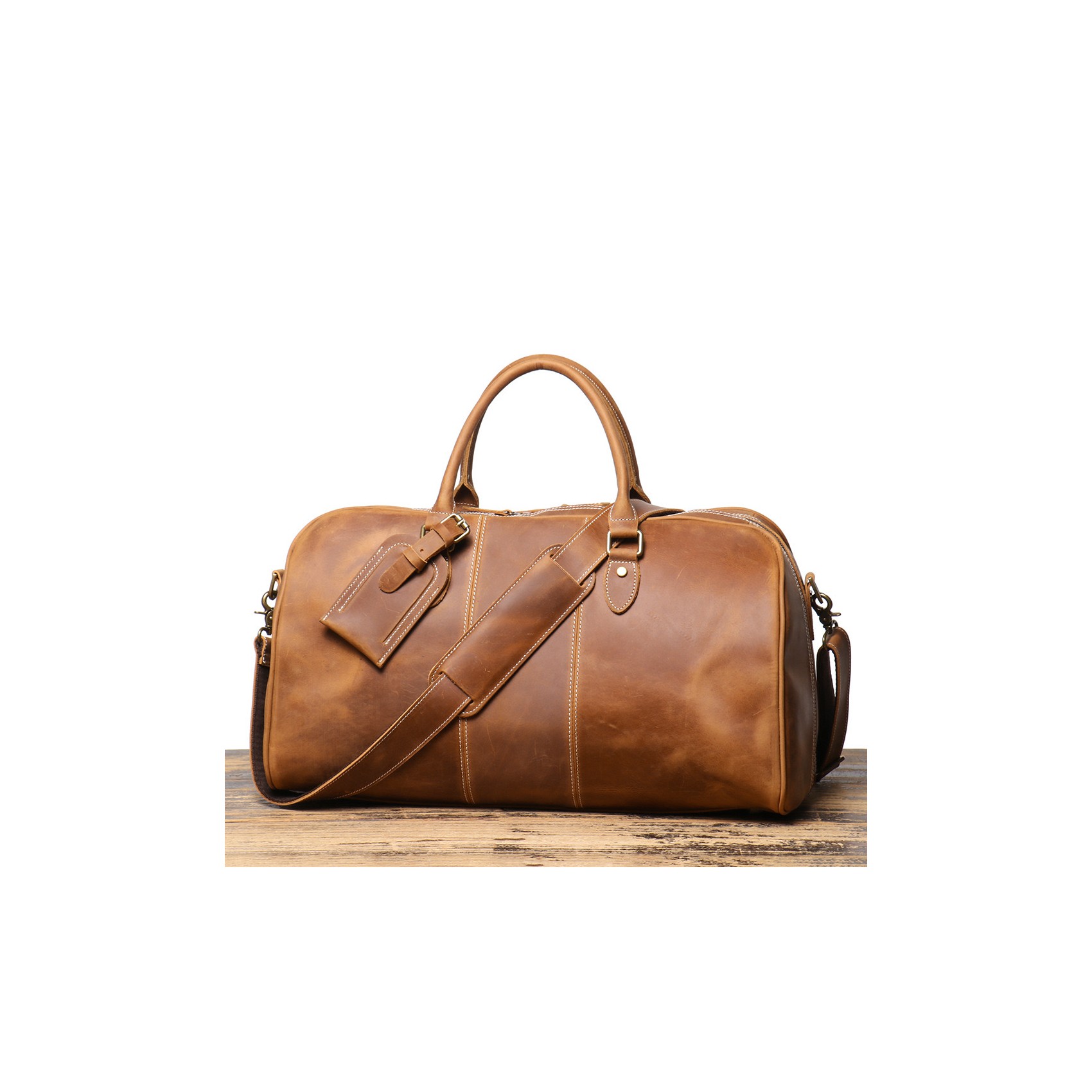 Ідеальний супутник для ділових поїздок і вікендів, чоловіча шкіряна дорожня сумка Clayton поєднує в собі стиль, надійність і практичність. Виконана з щільної вінтажної натуральної шкіри світло-коричневого відтінку, вона з часом набуває благородної патини, підкреслюючи ваш бездоганний смак.