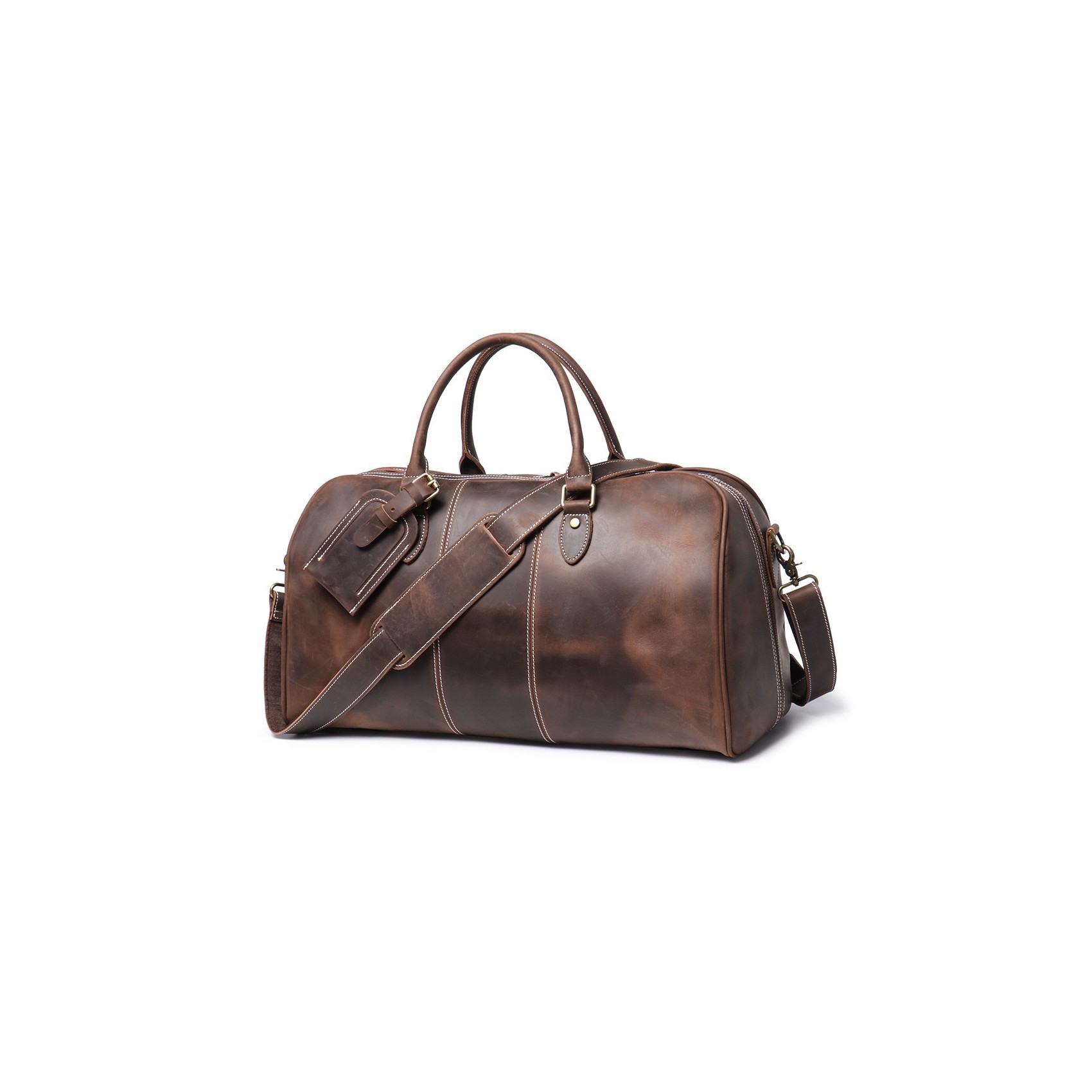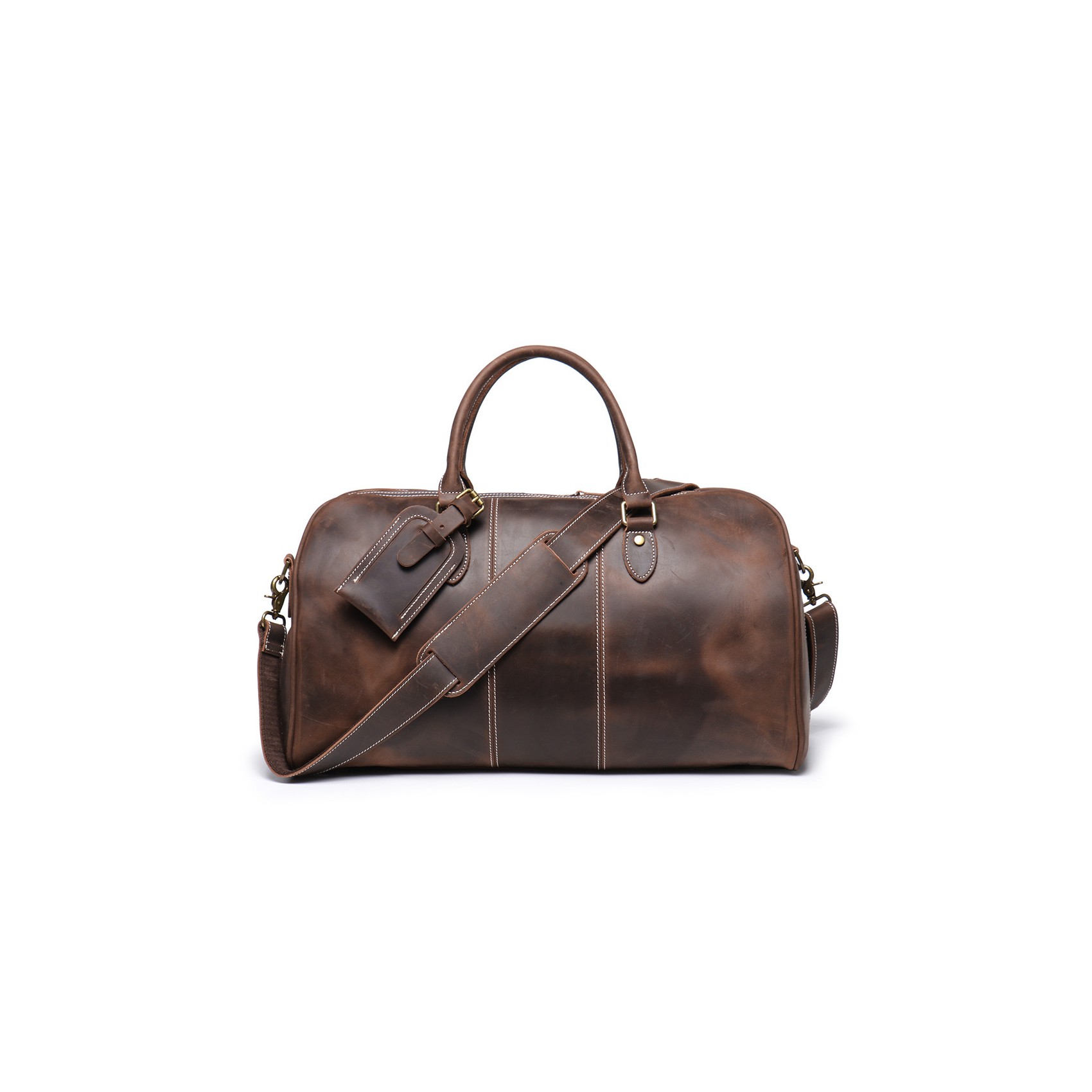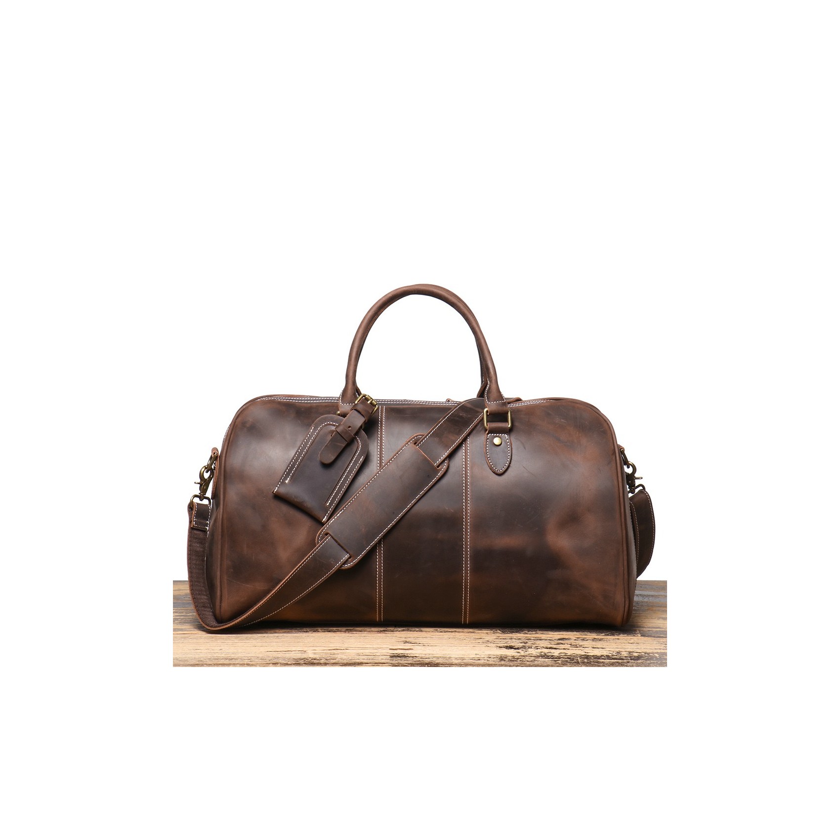 Ідеальний супутник для ділових поїздок і вікендів, чоловіча шкіряна дорожня сумка Clayton поєднує в собі стиль, надійність і практичність. Виконана з щільної вінтажної натуральної шкіри темно-коричневого відтінку, вона з часом набуває благородної патини, підкреслюючи ваш бездоганний смак.