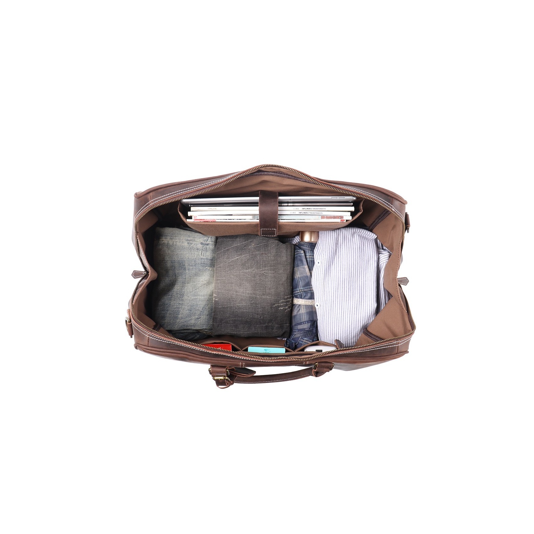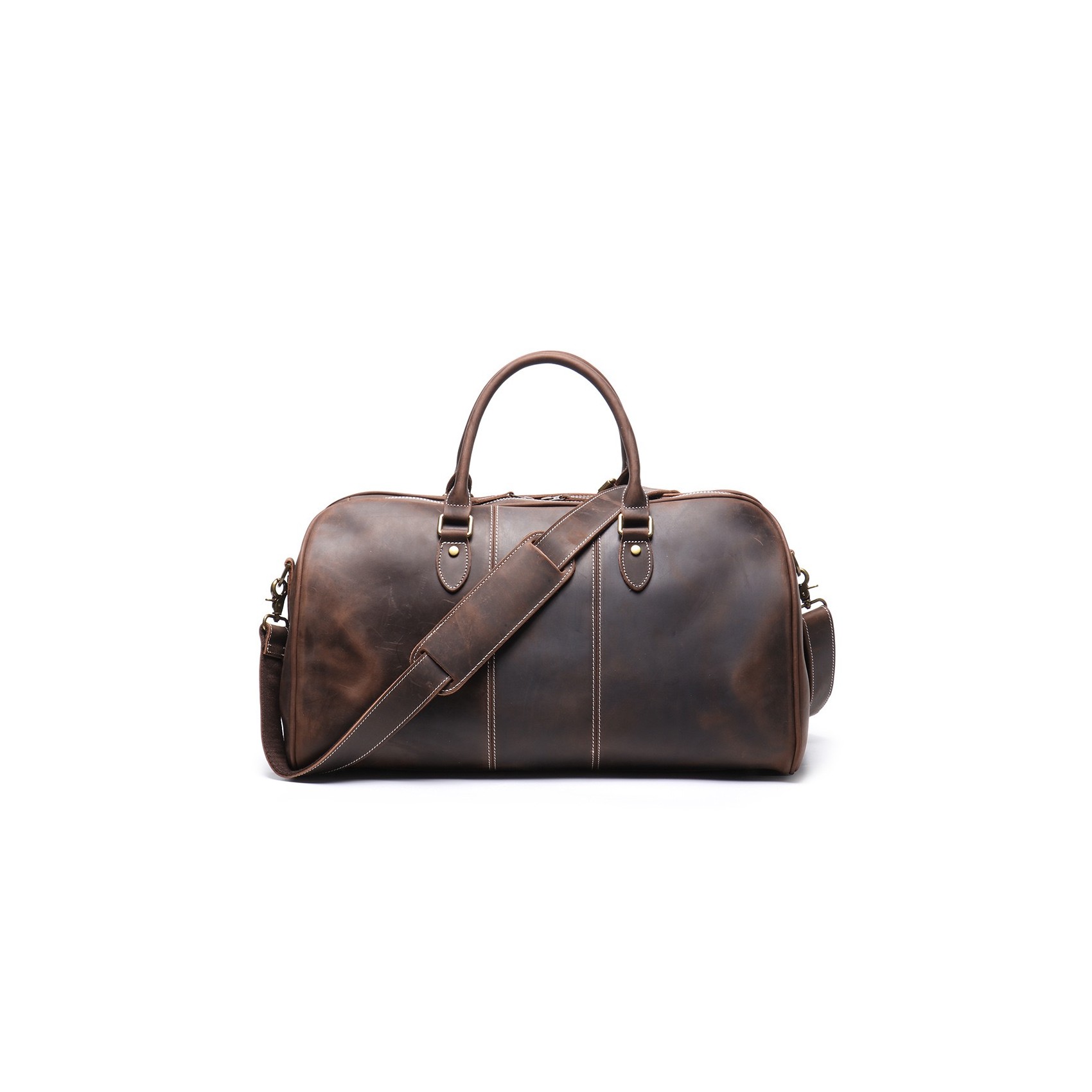 Міцні шкіряні ручки зручно лежать у руці, а знімний плечовий ремінь регулюється по довжині, забезпечуючи комфорт навіть у тривалих подорожах. Металева фурнітура YKK (Японія) гарантує довговічність і плавність роботи кожної деталі.