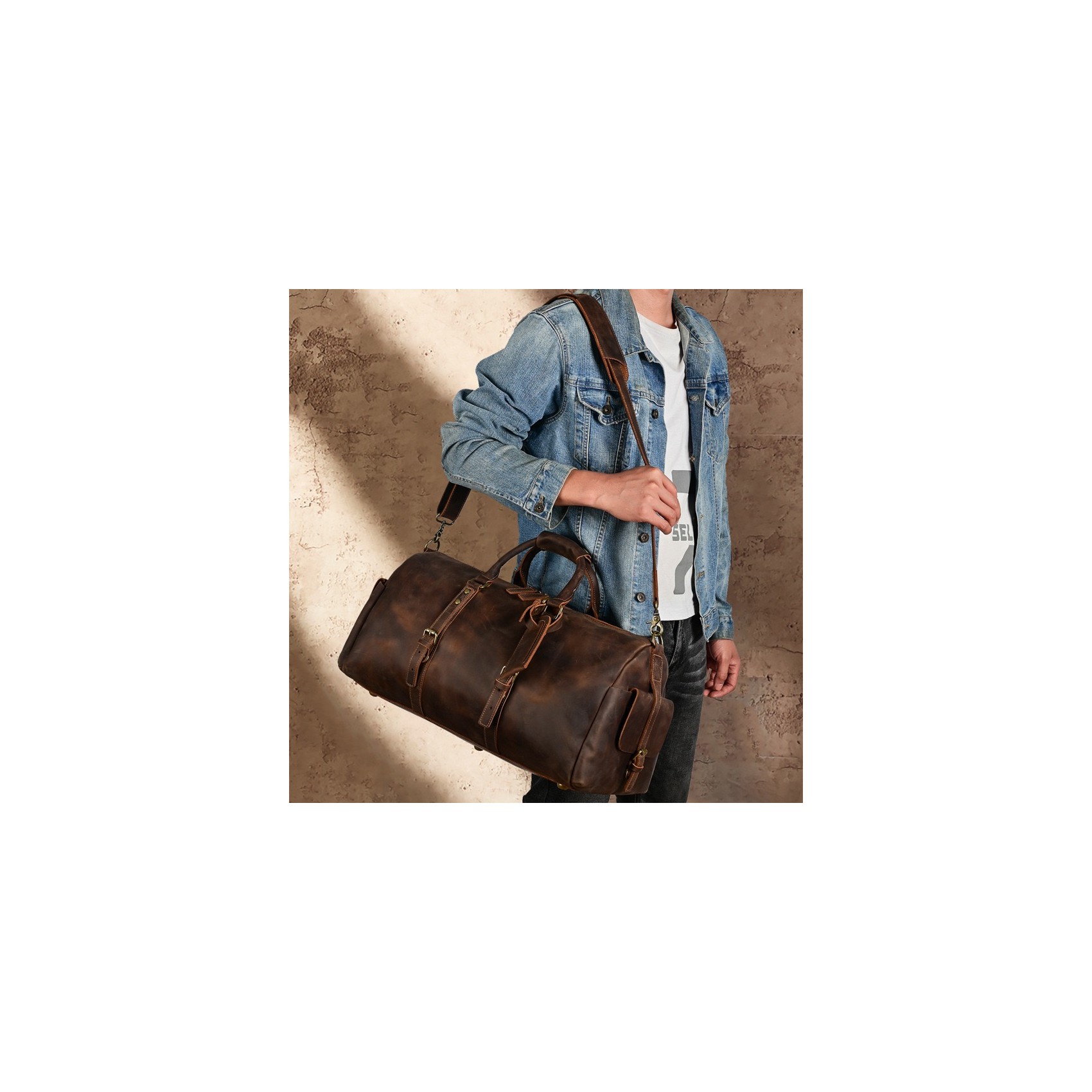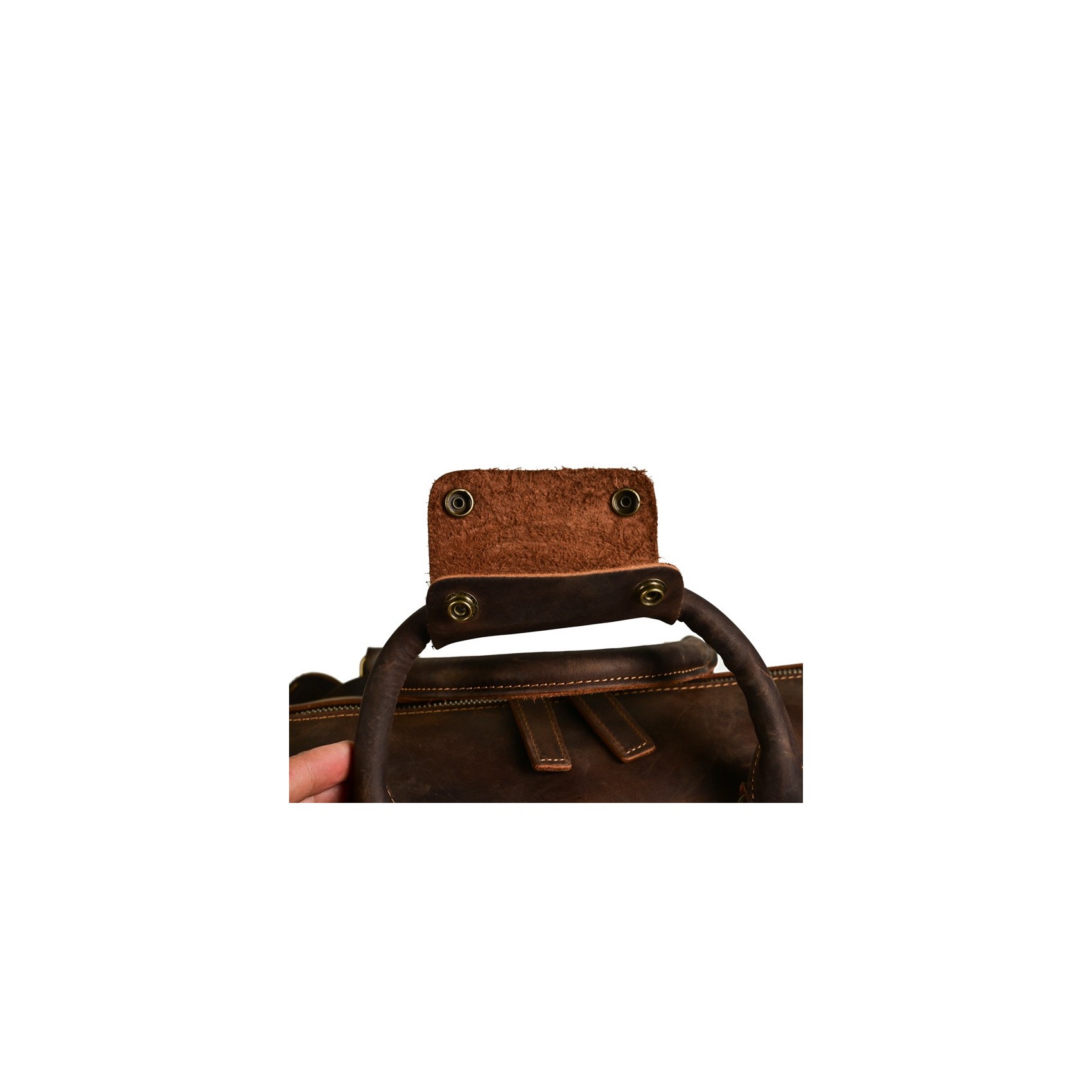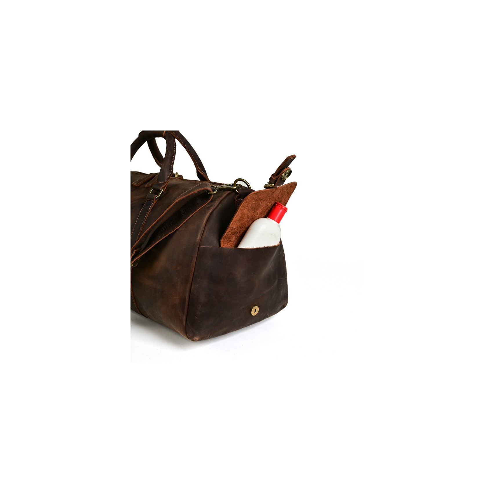 Елегантна та практична, чоловіча шкіряна дорожня сумка Lydford створена для стильних мандрівників, які цінують надійність і естетику. Виконана з щільної натуральної шкіри вінтажного типу, вона вражає глибоким темно-коричневим кольором і благородною фактурою.