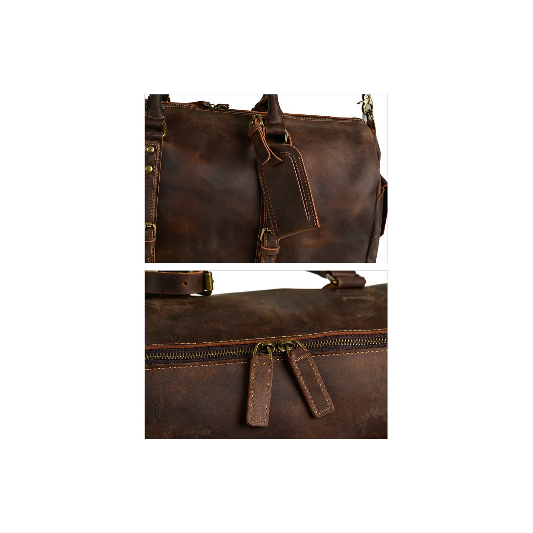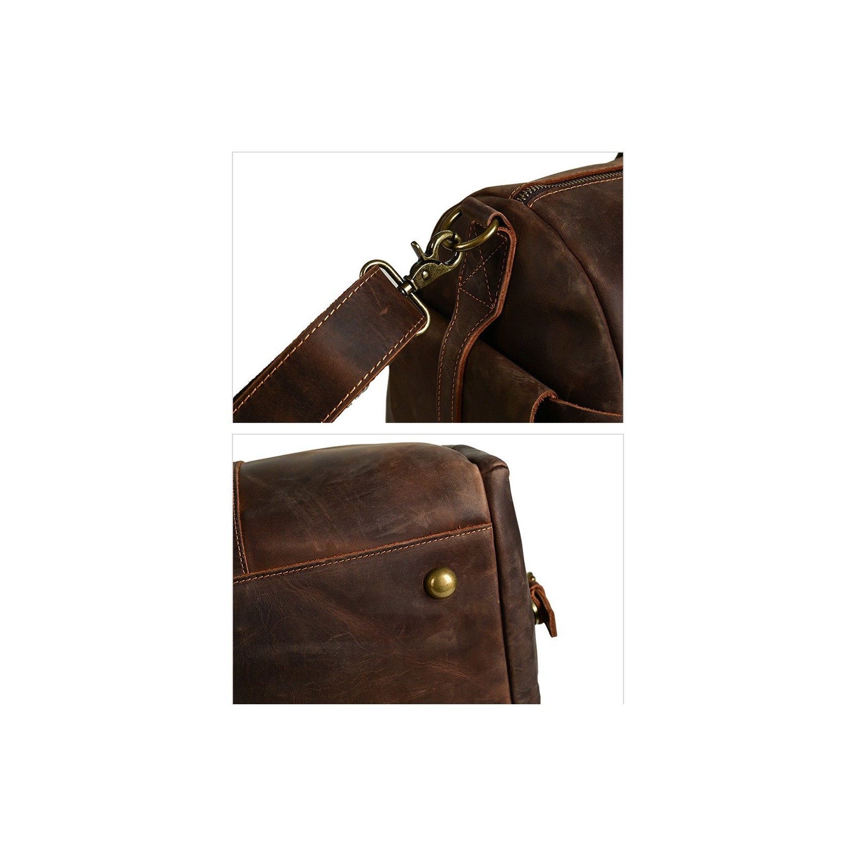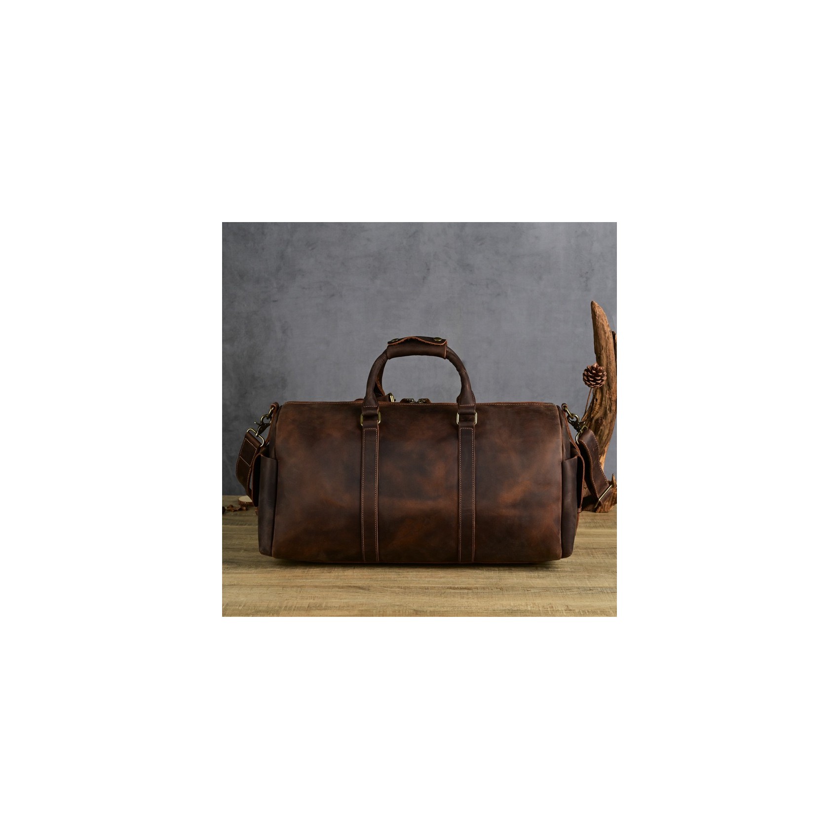 Елегантна та практична, чоловіча шкіряна дорожня сумка Lydford створена для стильних мандрівників, які цінують надійність і естетику. Виконана з щільної натуральної шкіри вінтажного типу, вона вражає глибоким темно-коричневим кольором і благородною фактурою.