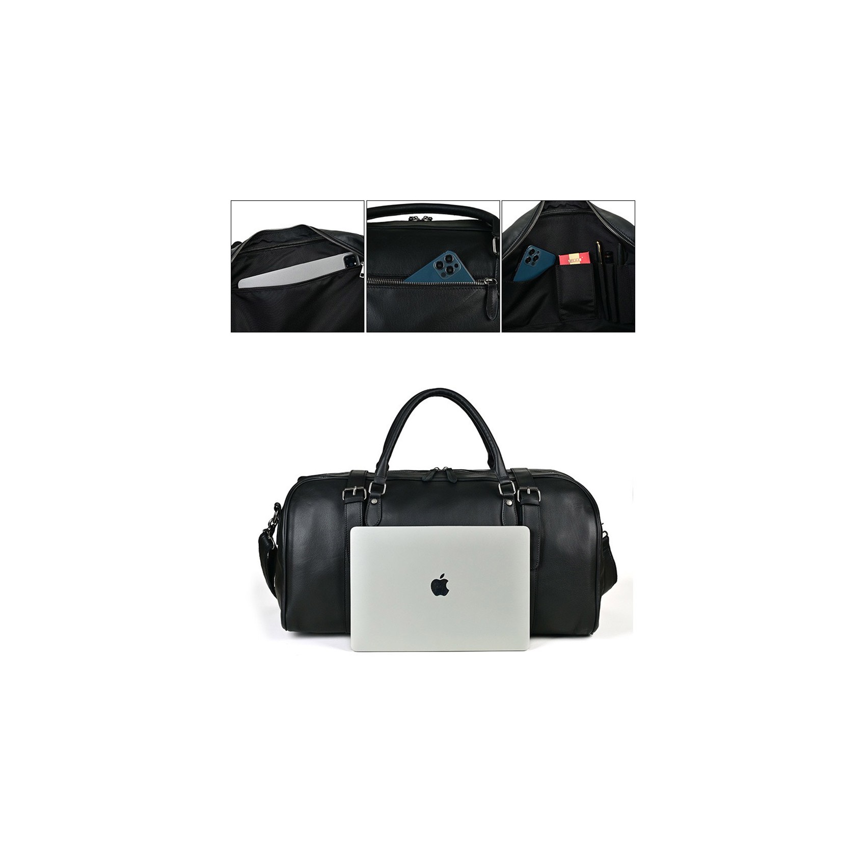 Додаткова кишеня на блискавці з тильного боку дає швидкий доступ до найважливіших предметів. Сумку зручно носити як у руках, так і на плечі завдяки знімному довгому ременю. Класичний чорний колір робить її універсальною та доречною в будь-якій ситуації – від ділового відрядження до вікенду за містом.