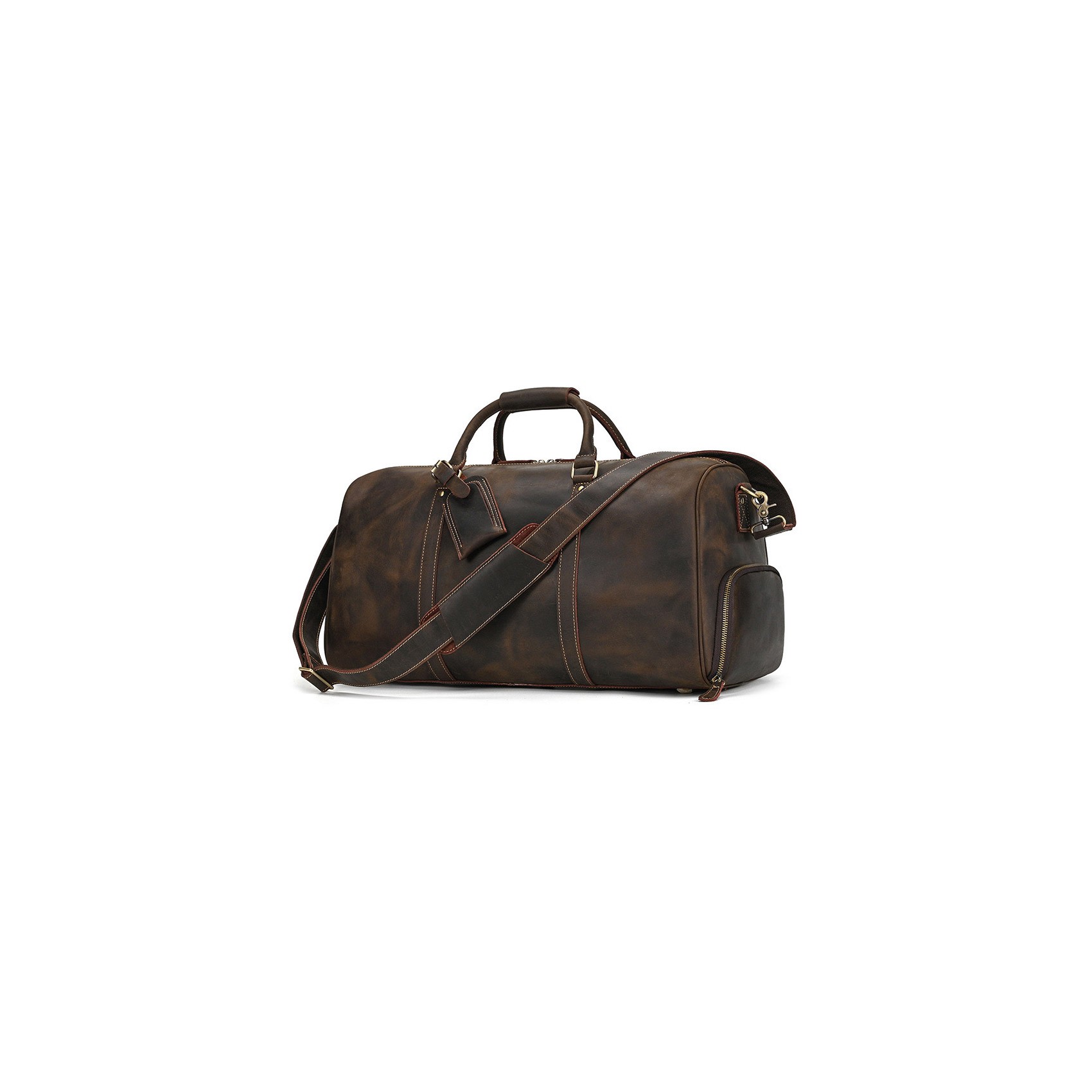 Чоловіча шкіряна дорожня сумка Wilfred поєднує практичність і стильний вінтажний характер. Просторе основне відділення на блискавці доповнене двома внутрішніми кишенями для дрібниць, а збоку передбачено окреме місце для взуття — зручно та гігієнічно в дорозі.
