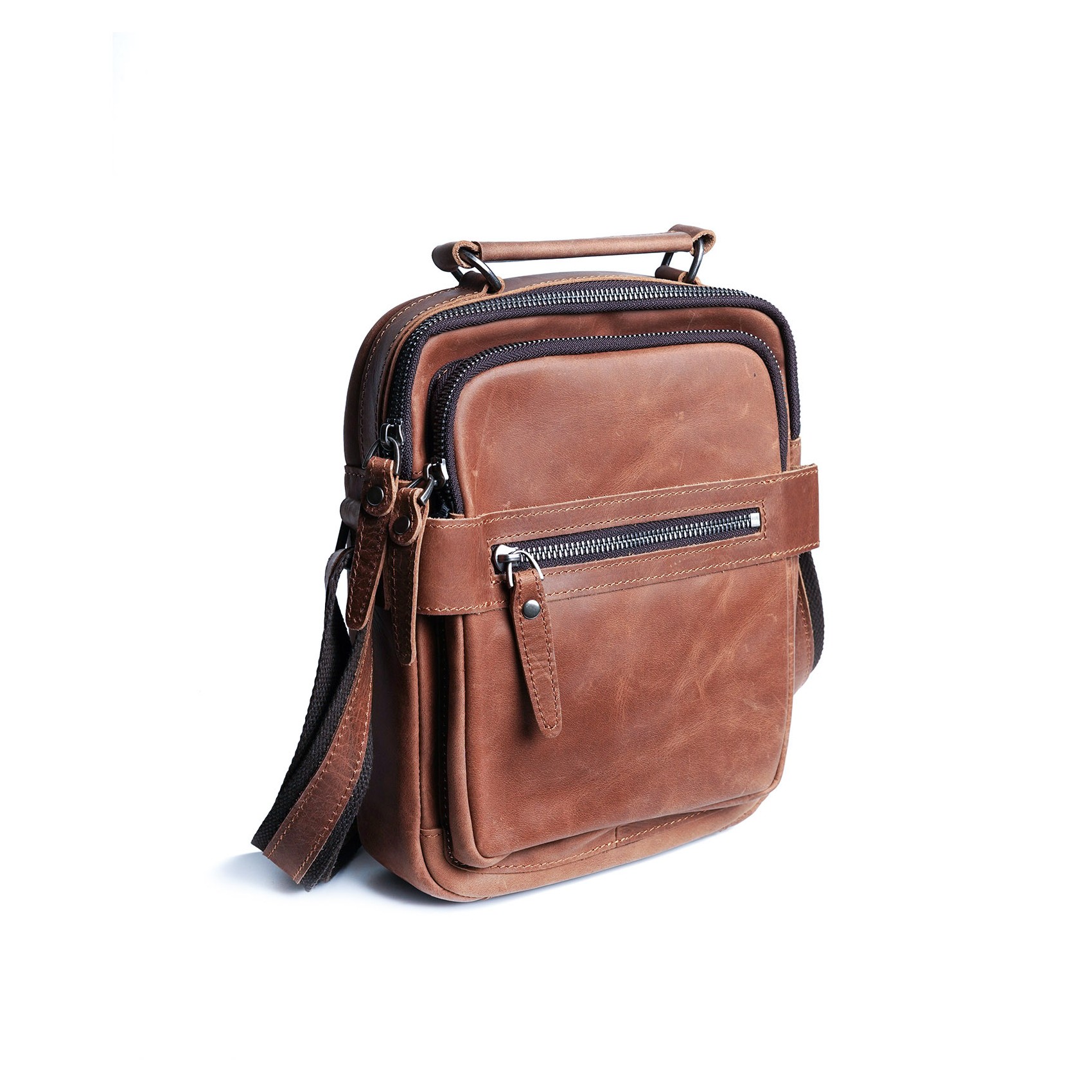 Чоловіча шкіряна сумка Edmund через плече світло-коричнева
