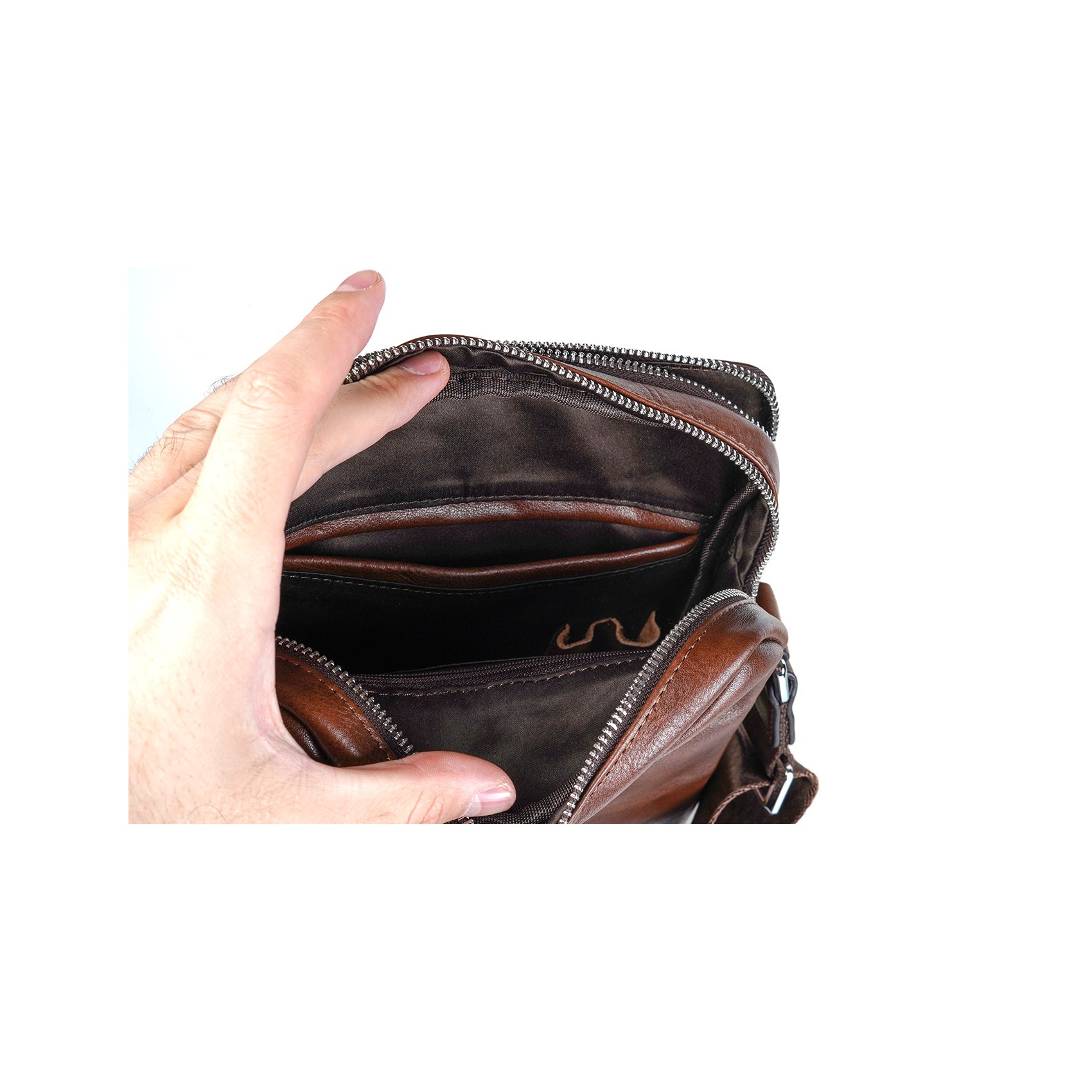 Чоловіча шкіряна сумка Gregory через плече коричнева