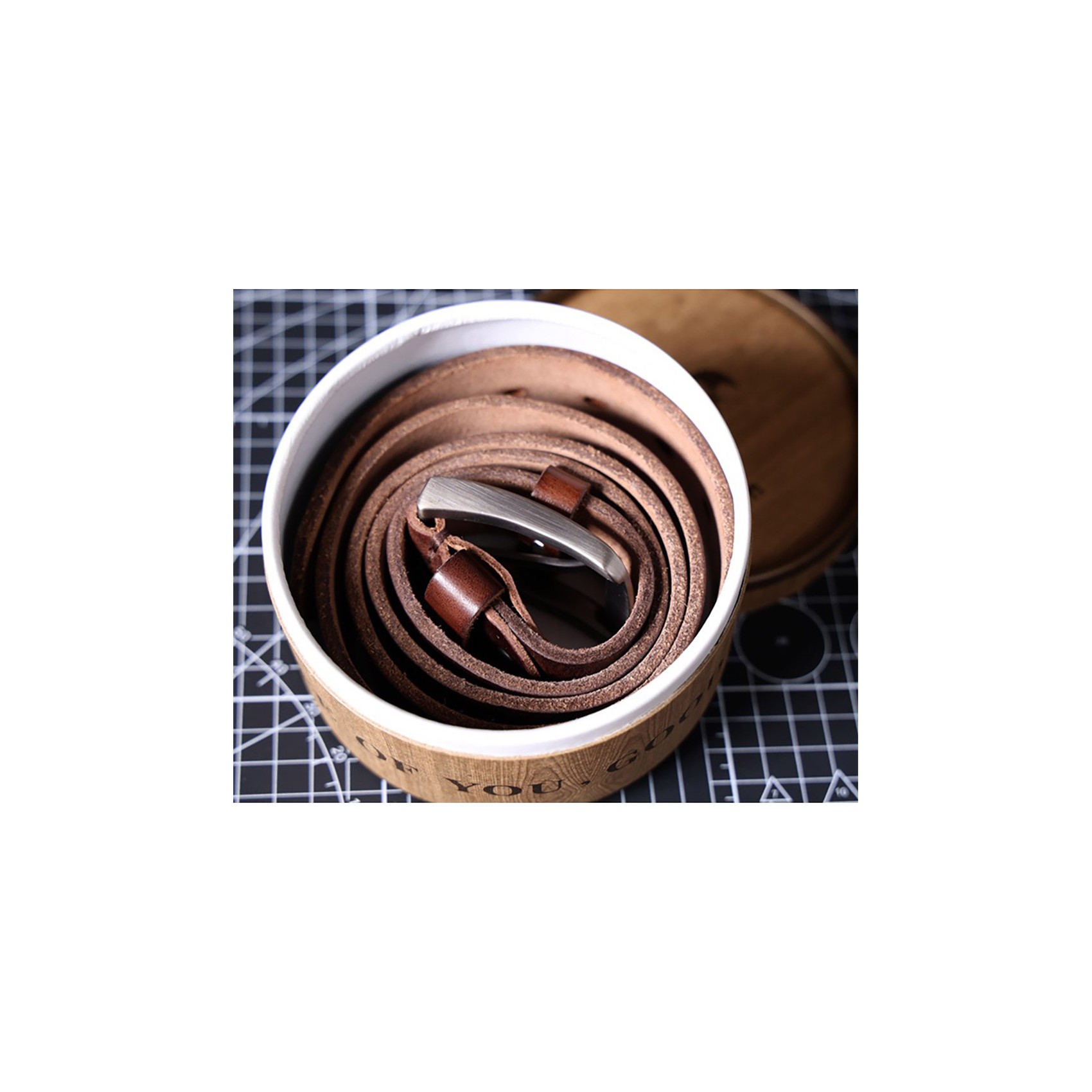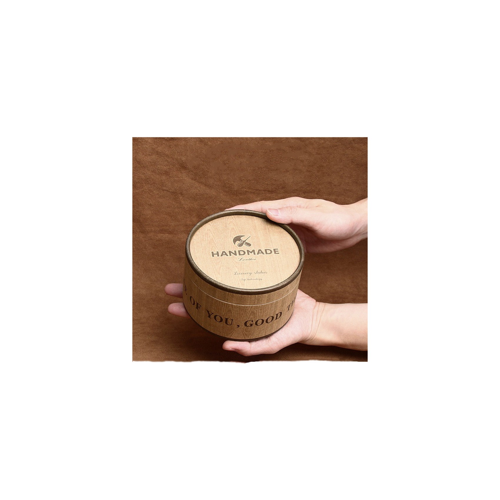 Елегантна кругла коробка з щільного картону надає подарунку завершеного та вишуканого вигляду. Матова поверхня з акуратною формою робить упаковку універсальною — ідеально підходить як для чоловічих, так і для жіночих ременів. Завдяки міцному матеріалу коробка надійно захищає вміст, залишаючись при цьому легкою та охайною. Упаковка не потребує додаткових стрічок чи прикрас — виглядає стильно сама по собі. Відмінний вибір, якщо ви хочете підкреслити якість і увагу до деталей.