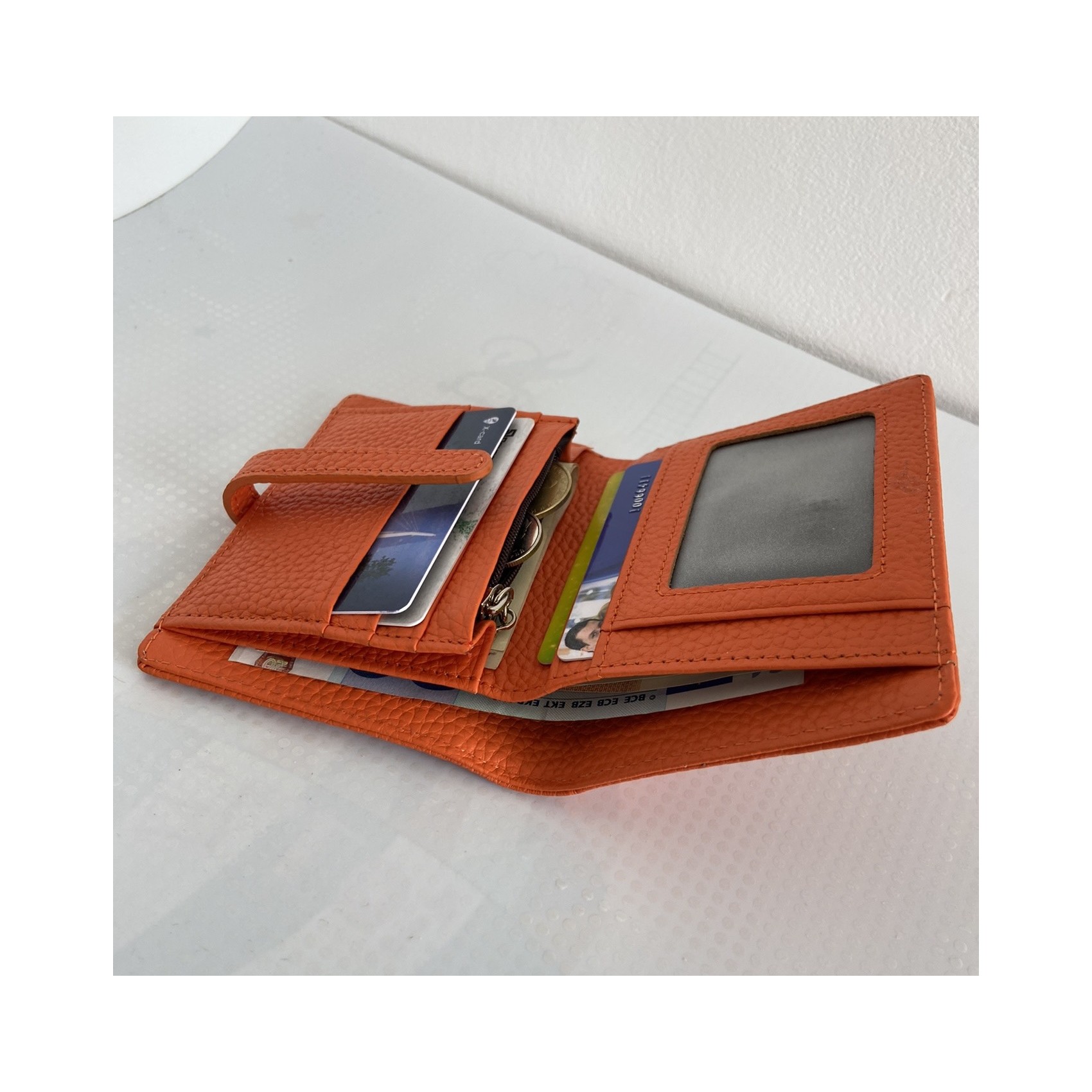 Зустрічайте жіночий гаманець Annie в прекрасному помаранчевому відтінку. Його компактний розмір ідеально підходить для жінок, які віддають перевагу невеликим аксесуарам, але при цьому не бажають жертвувати функціональністю. Виконаний з м'якої шкіри, він ніжно торкається ваших рук, додаючи відчуття розкоші до вашого повсякденного стилю.