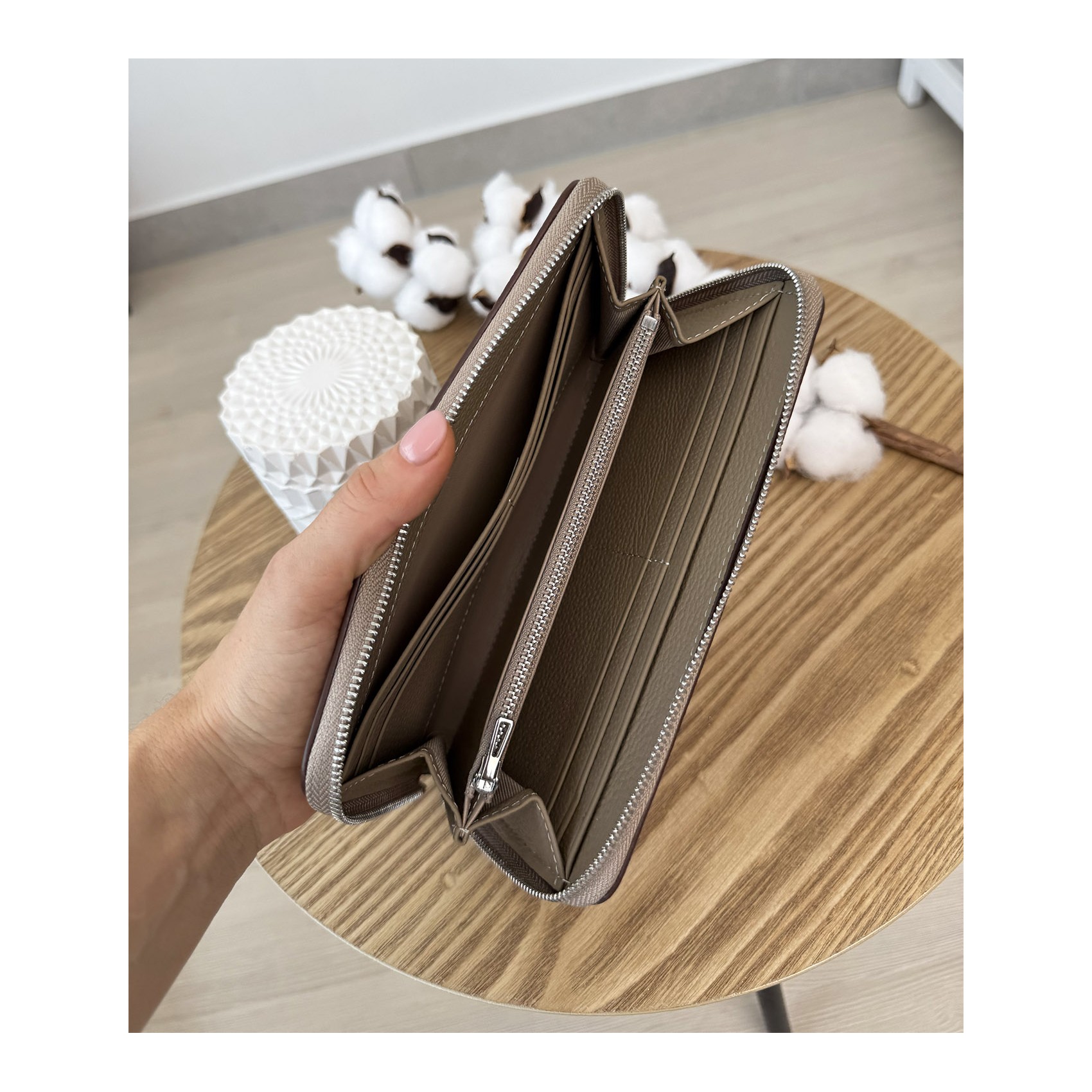 Функціональність продумана до дрібниць: два просторі відділення ідеально підходять для купюр або навіть смартфона, а ще два додаткові кишені допоможуть організувати готівку. Вісім слотів для карт дозволять тримати всі необхідні пластикові картки під рукою, а монетниця на блискавці надійно збереже дріб’язок. Зручна застібка-блискавка забезпечує швидкий і легкий доступ до вмісту. Candice — це поєднання вишуканості, практичності та бездоганної якості.