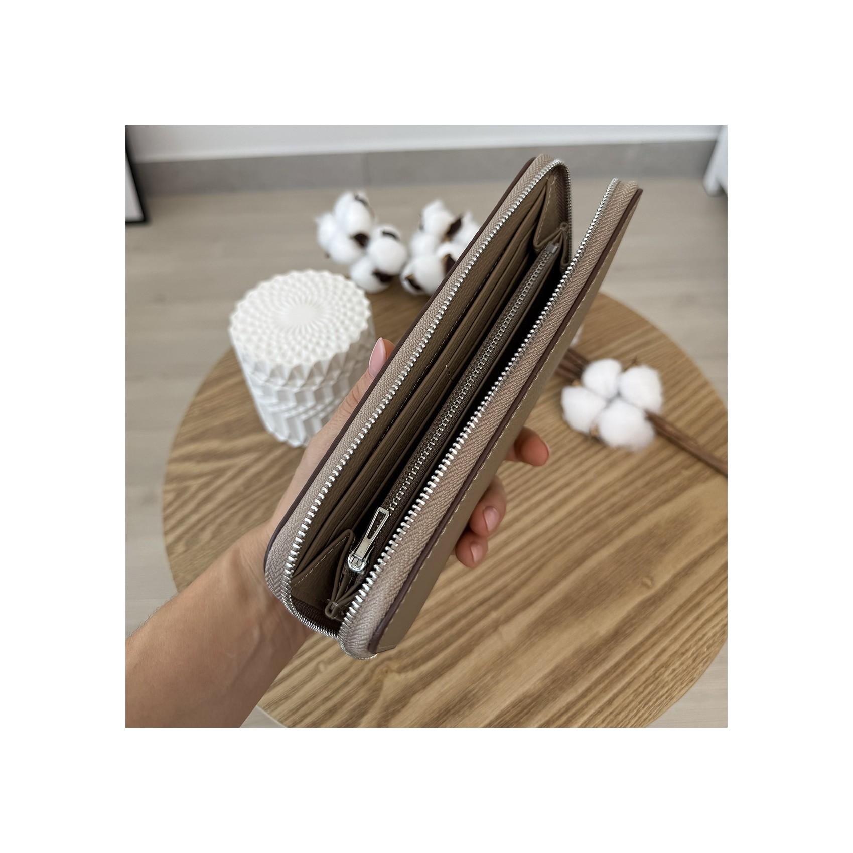 Елегантний і місткий, жіночий шкіряний гаманець Candice створений для тих, хто цінує стиль і зручність. Виконаний у класичному бежевому кольорі, він гармонійно доповнить будь-який образ — від повсякденного до ділового.