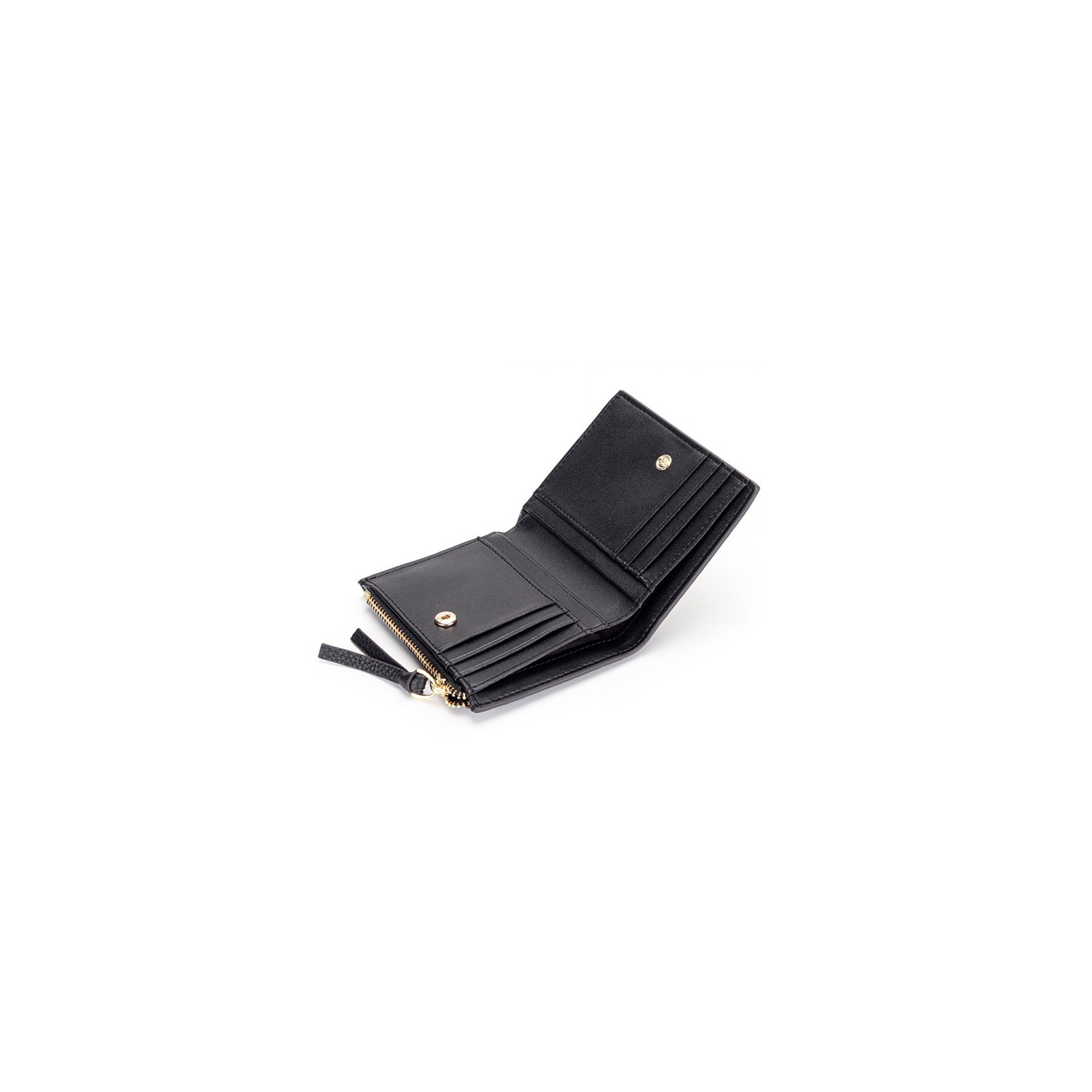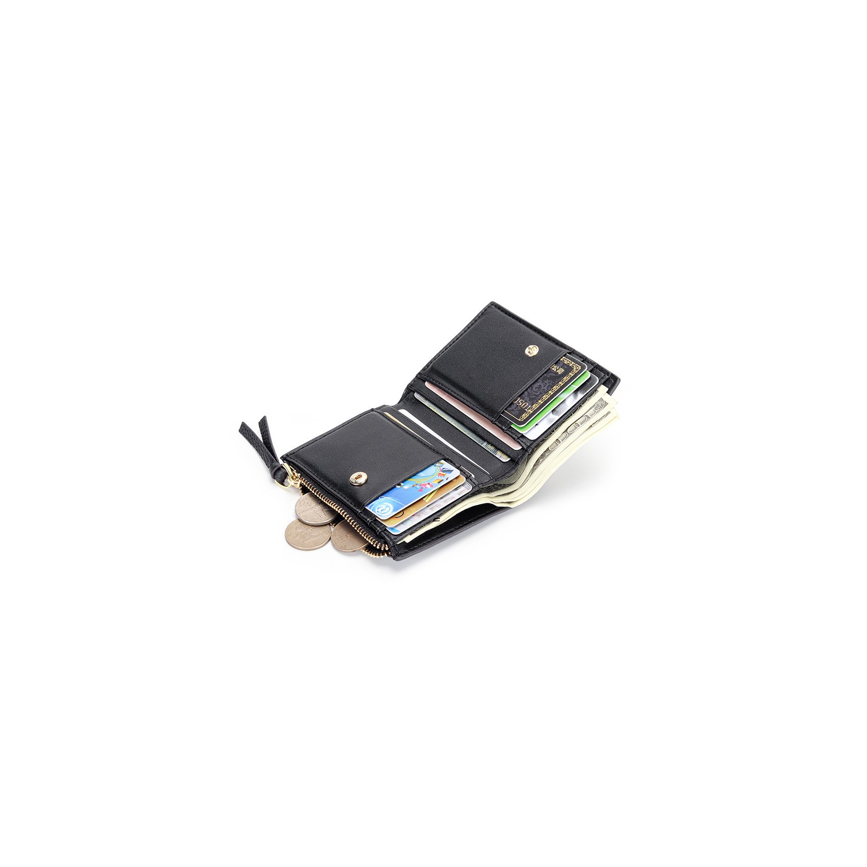Гаманець закривається на акуратну кнопку по центру, забезпечуючи надійність і легкість у використанні. Всередині передбачено все для зручної організації: відділення для купюр, відділення на блискавці для монет і цілих 10 слотів для карток. Такий аксесуар стане стильним акцентом вашого образу та надійним помічником у повсякденному житті.