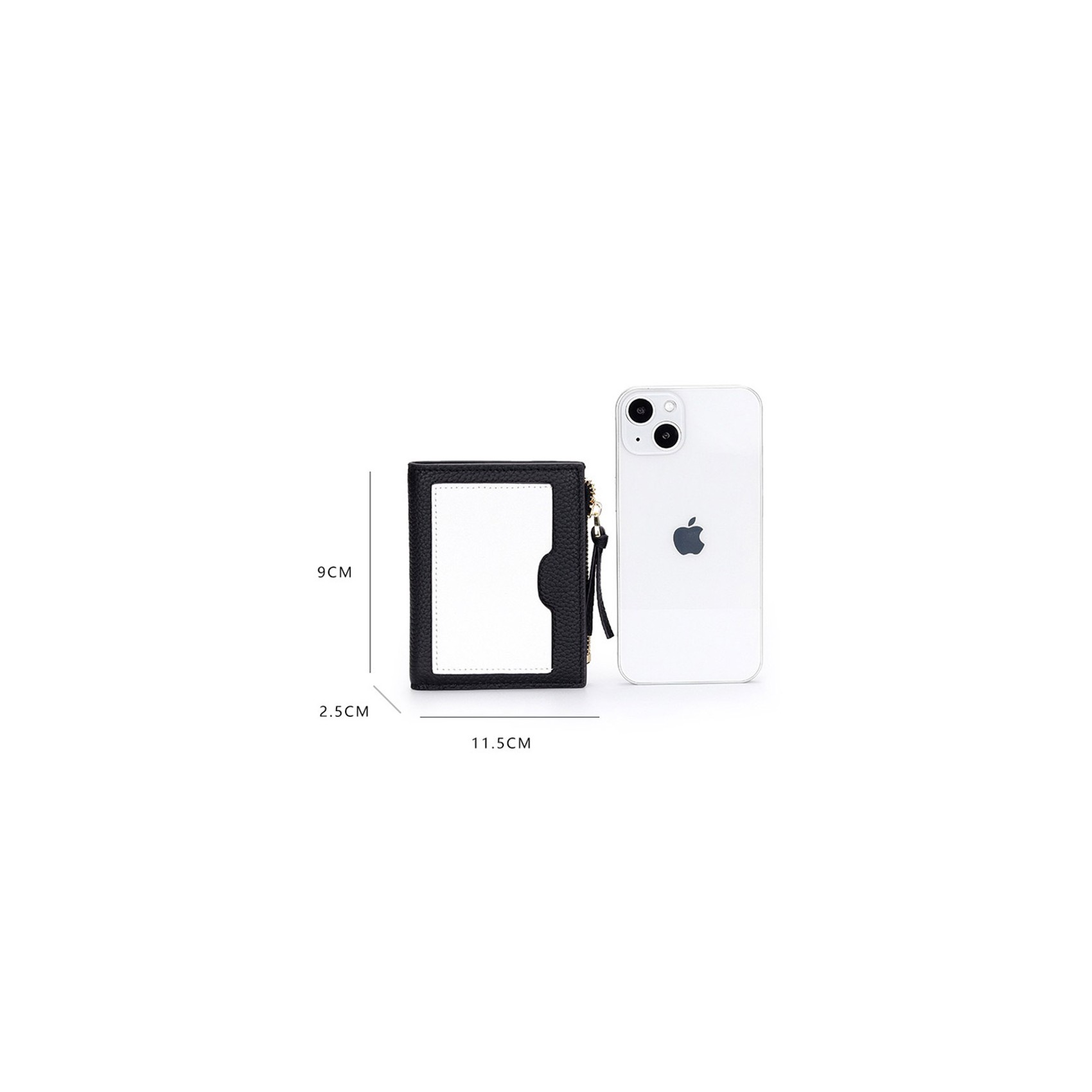 Елегантний і практичний жіночий гаманець Justine — це поєднання класики та сучасного комфорту. Виконаний із якісної шкіри, він привертає увагу стильним чорно-білим дизайном. Контрастна передня кишеня білого кольору не лише доповнює образ, а й слугує зручним місцем для найнеобхідніших дрібниць.