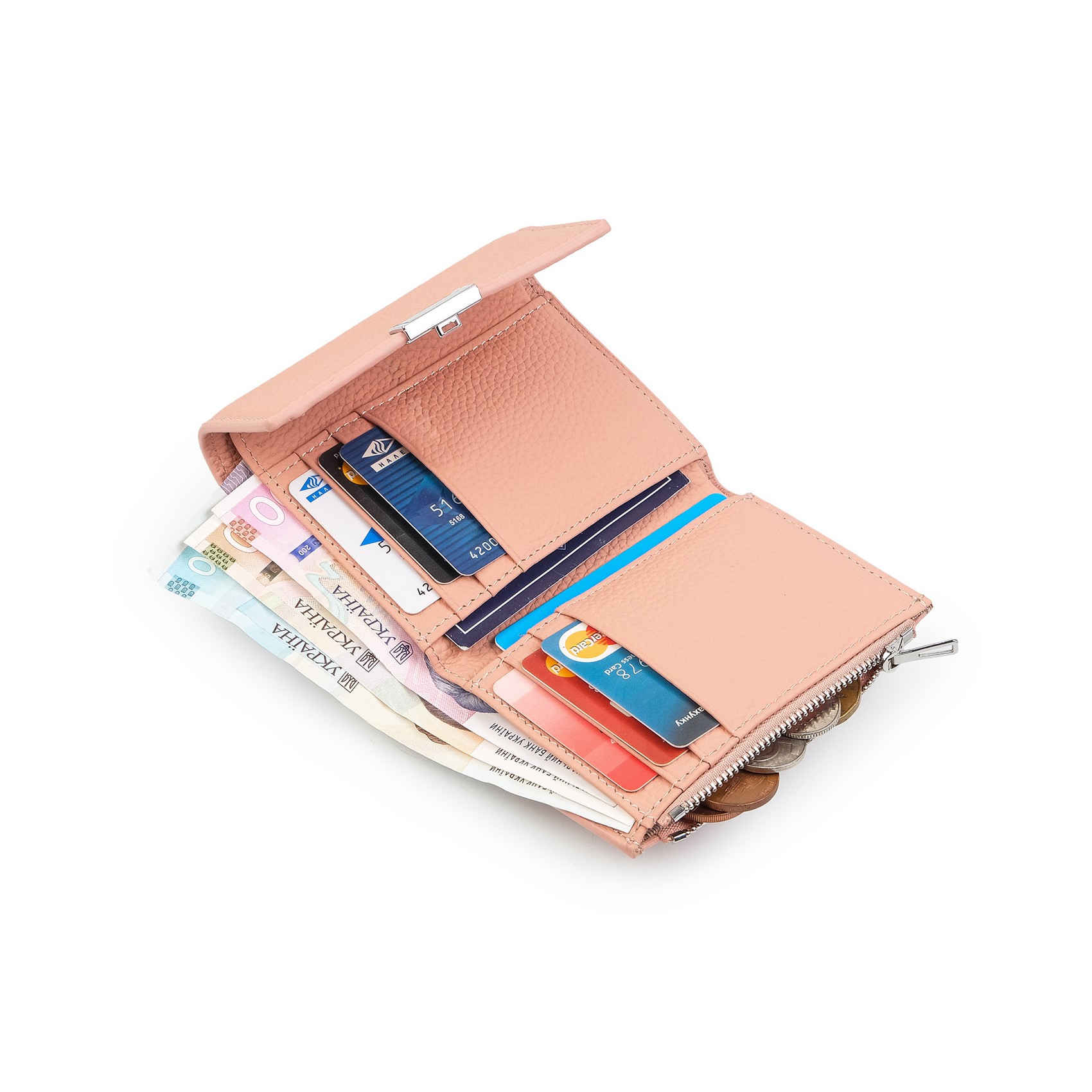 Цей елегантний гаманець Monique створений для тих, хто цінує стиль і практичність у кожній деталі. Його компактний розмір робить його ідеальним супутником як для щоденних образів, так і для особливих подій. М’яка натуральна шкіра дарує приємні тактильні відчуття та надає аксесуару вишуканого вигляду. Ніжно рожевий колір — універсальна класика, що завжди залишається актуальною.