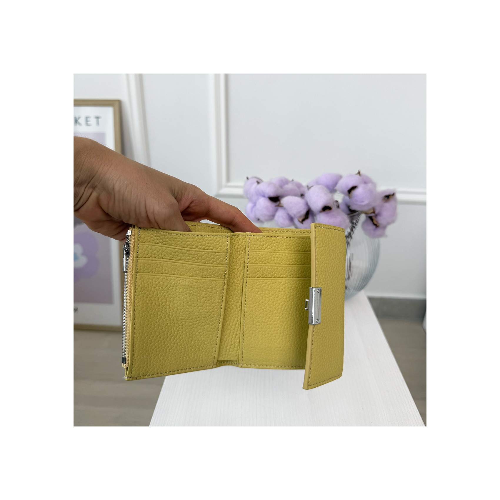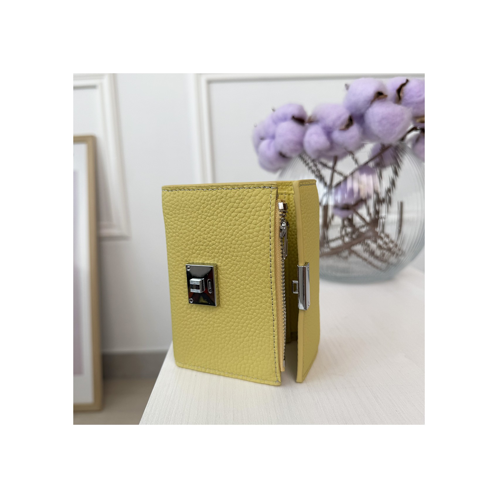 Цей елегантний гаманець Monique створений для тих, хто цінує стиль і практичність у кожній деталі. Його компактний розмір робить його ідеальним супутником як для щоденних образів, так і для особливих подій. М’яка натуральна шкіра дарує приємні тактильні відчуття та надає аксесуару вишуканого вигляду. Жовтий колір — універсальна класика, що завжди залишається актуальною.