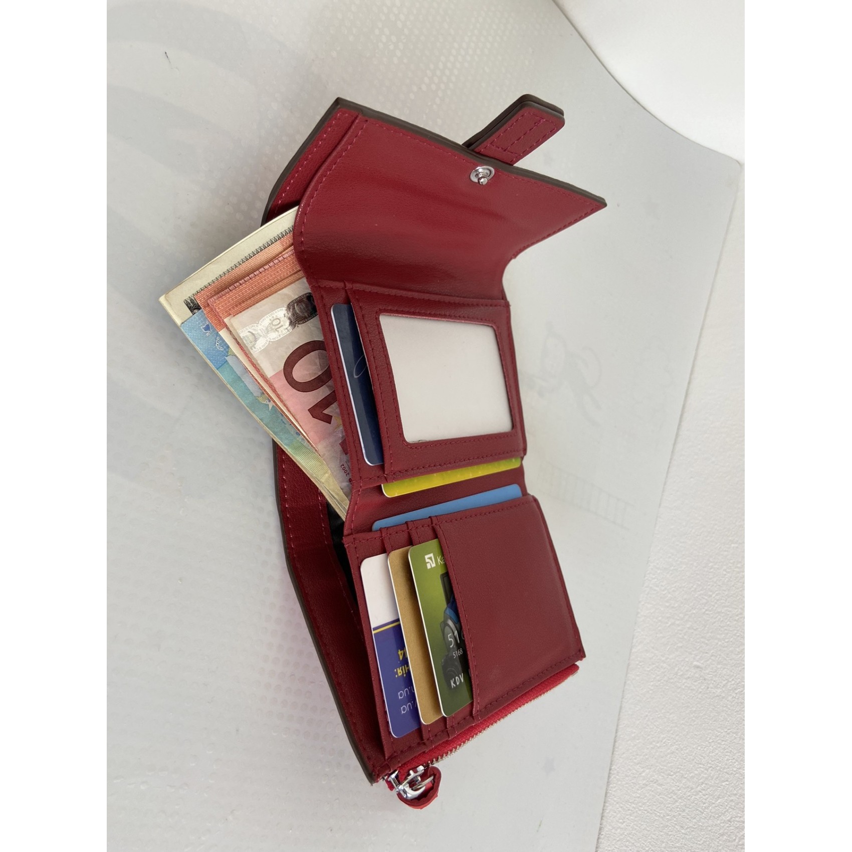Закривається на кнопку, забезпечуючи безпеку збереження ваших цінностей. Його червоний зовнішній вигляд надає нотки стильності, а внутрішнє бордове відділення створює приємний контраст та додає витонченості. У гаманці є відділення для банкнот, що дозволяє організувати ваші гроші. Відділення для монет на блискавці забезпечує збереження дрібниць та запобігає їх втраті. Додатково є 5 відділень для карток, щоб ви могли зручно розмістити свої пластикові карти, а прозоре відділення для ID забезпечує легкий доступ до вашого посвідчення особи.